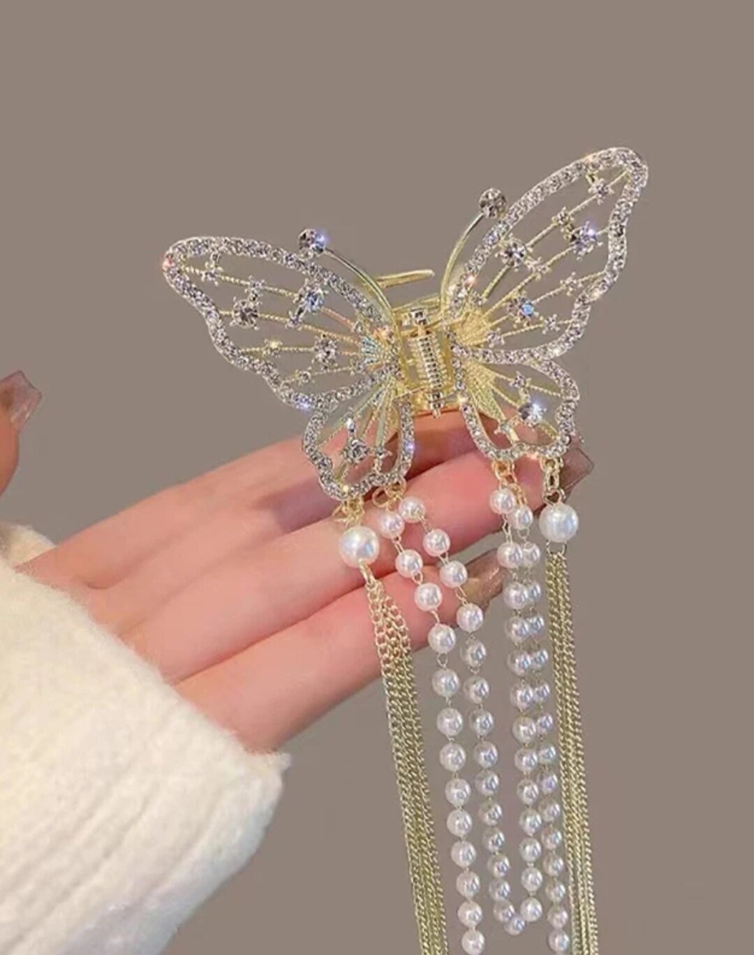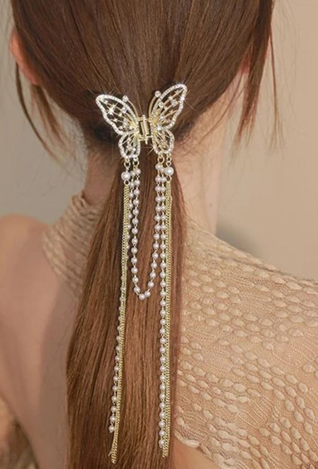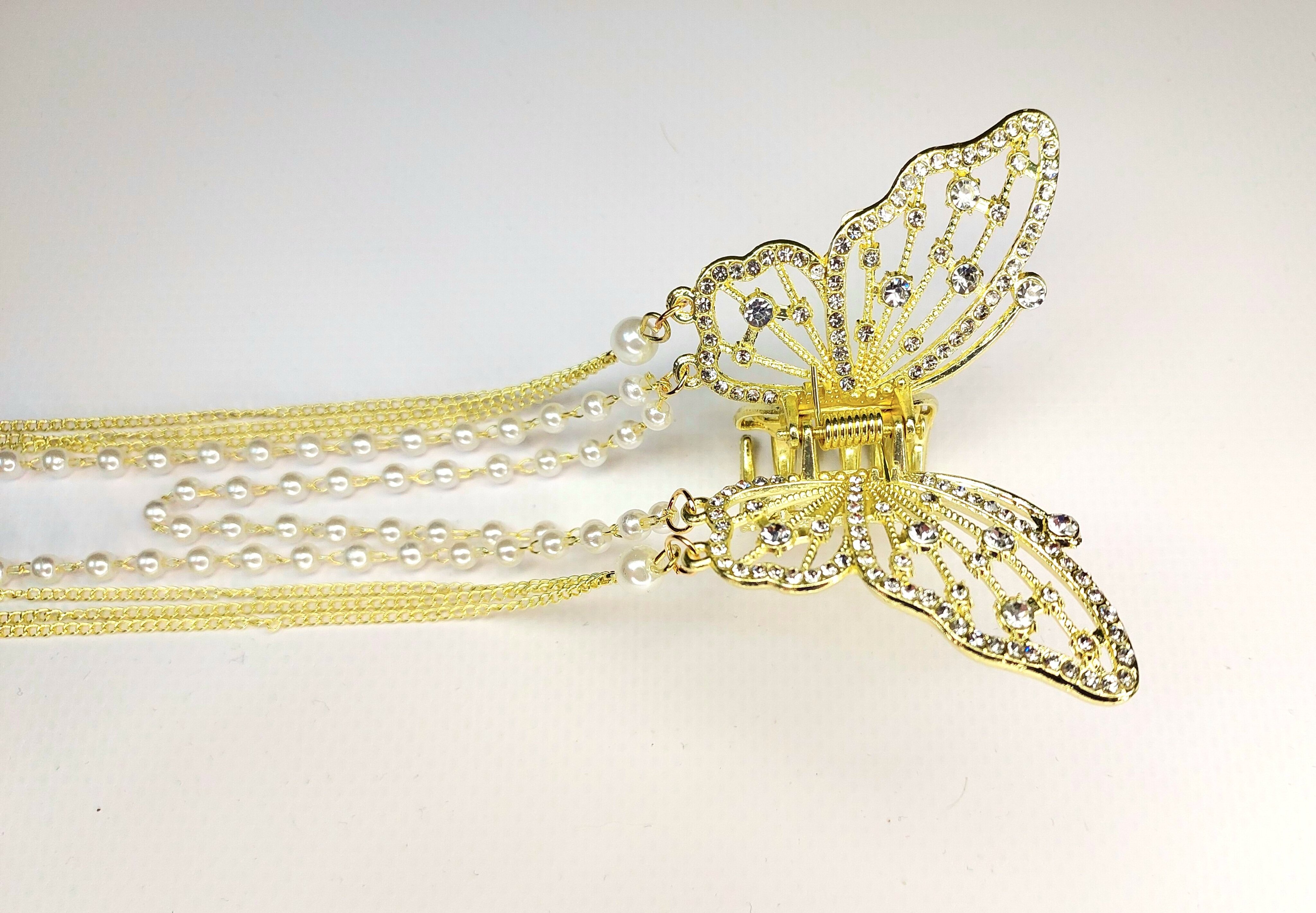 Блестящий краб-бабочка для волос с кисточками со стразами и жемчугом (имитация) . Золото станет прекрасным подарком для коллеги по работе, подруги или девушки.