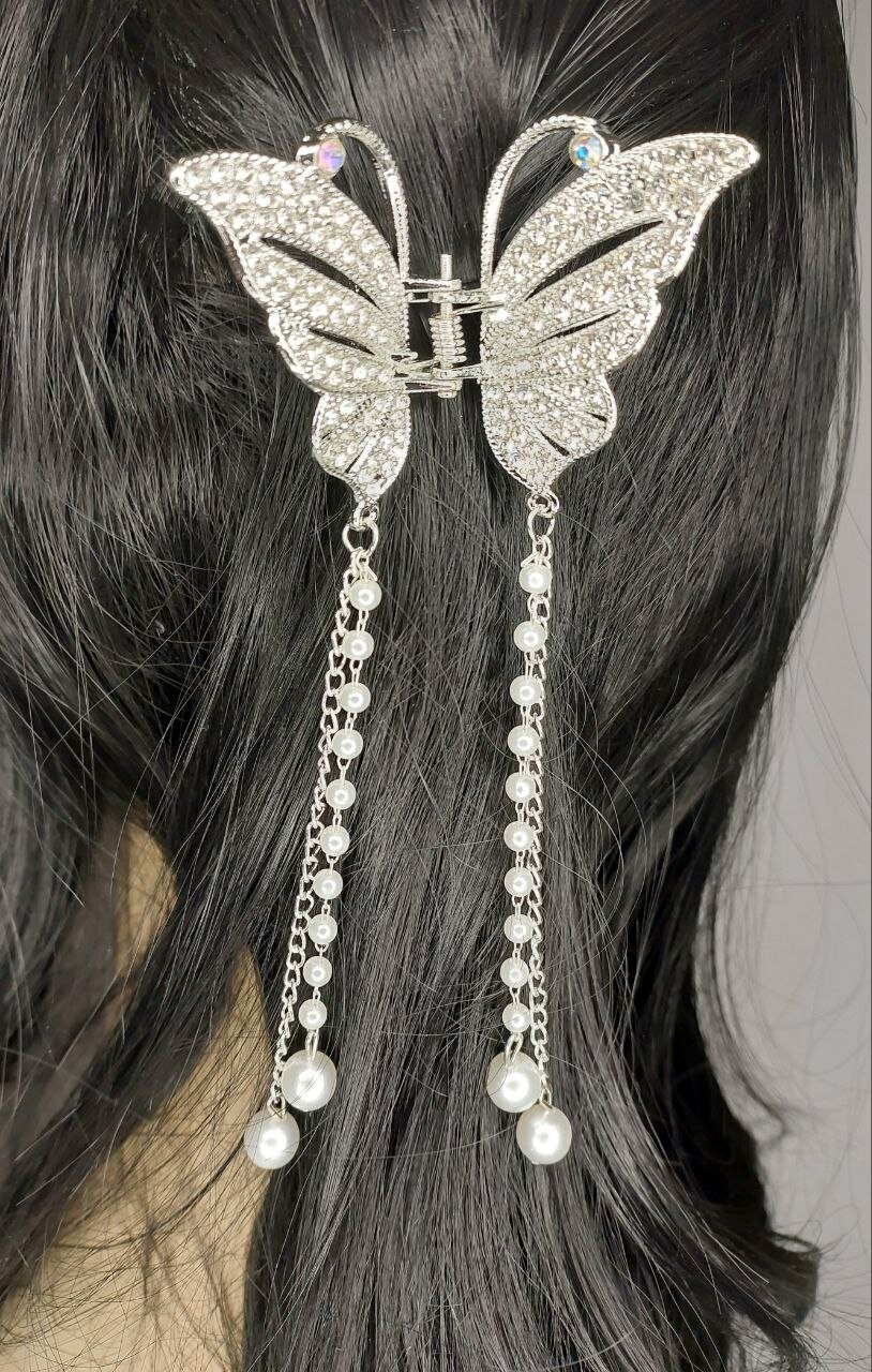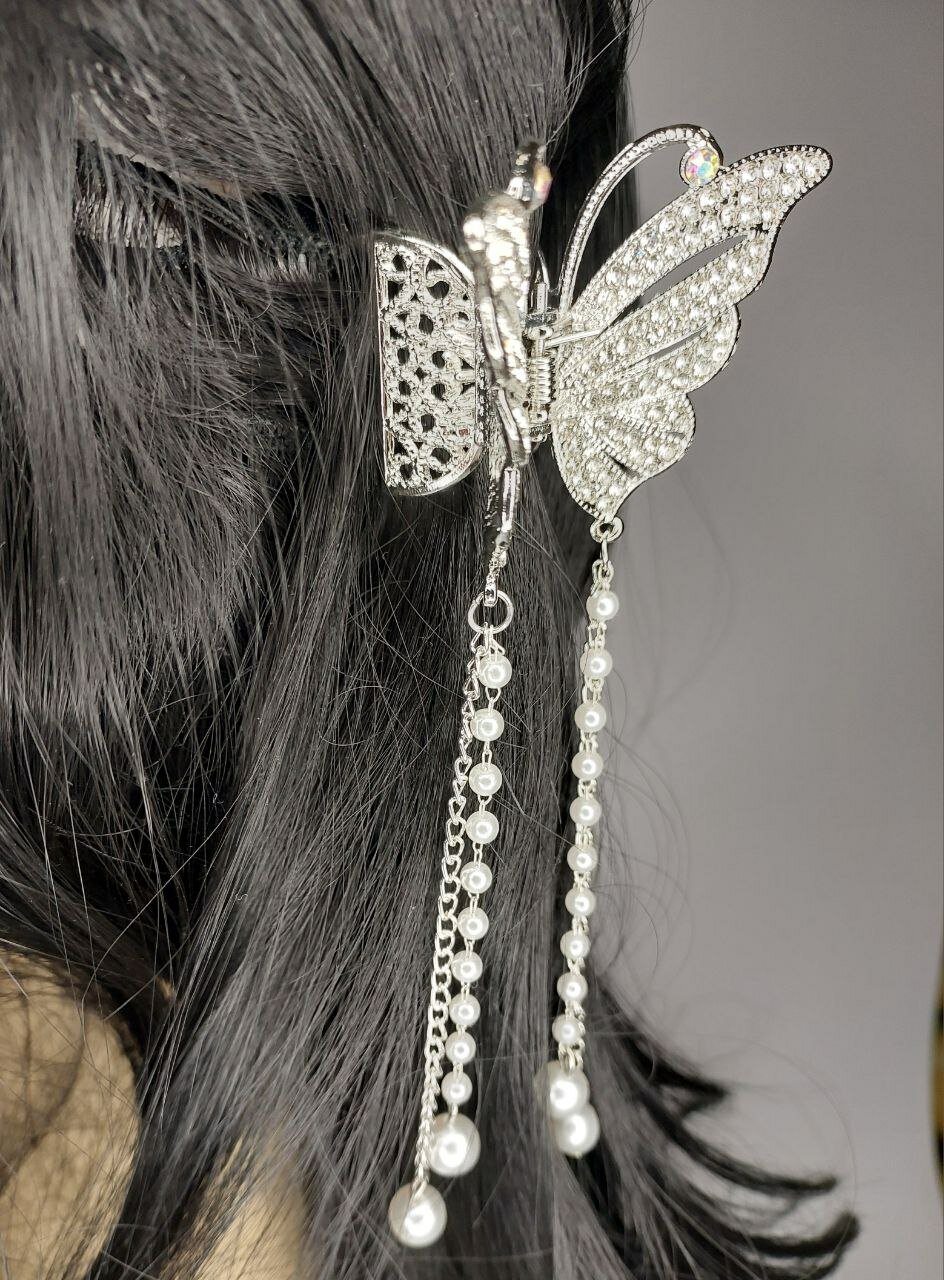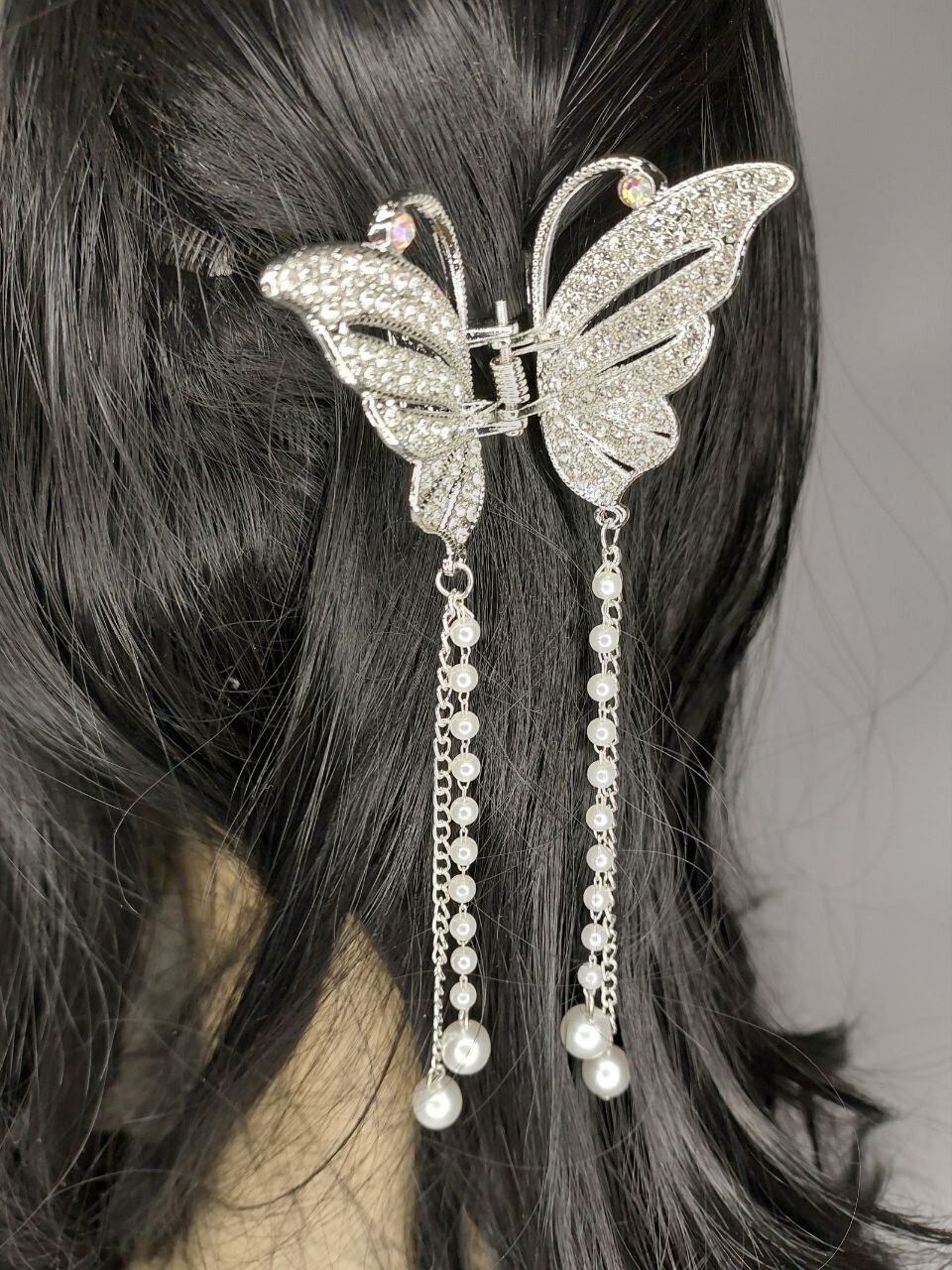 Представляем вашему блестящий краб-бабочка для волос с кисточками из жемчужин (имитация). Этот стильный аксессуар станет незаменимым помощником в создании неповторимых причесок и придаст образу изысканность и элегантность.