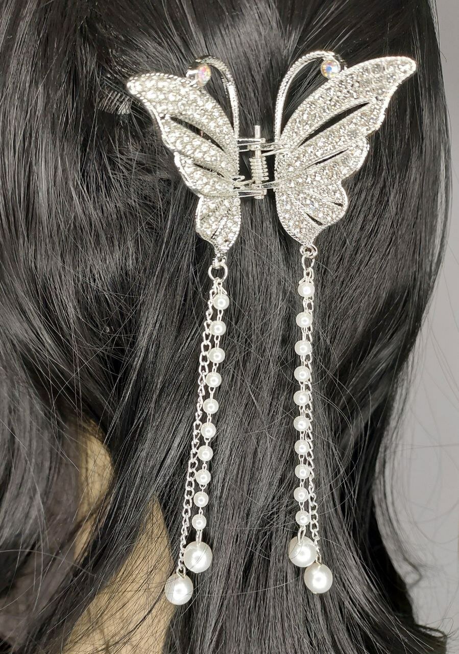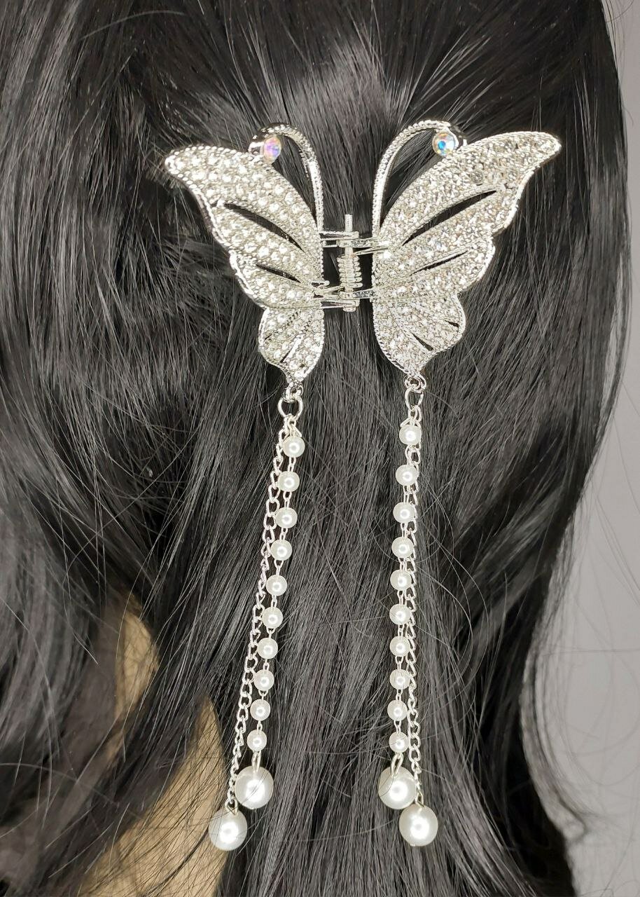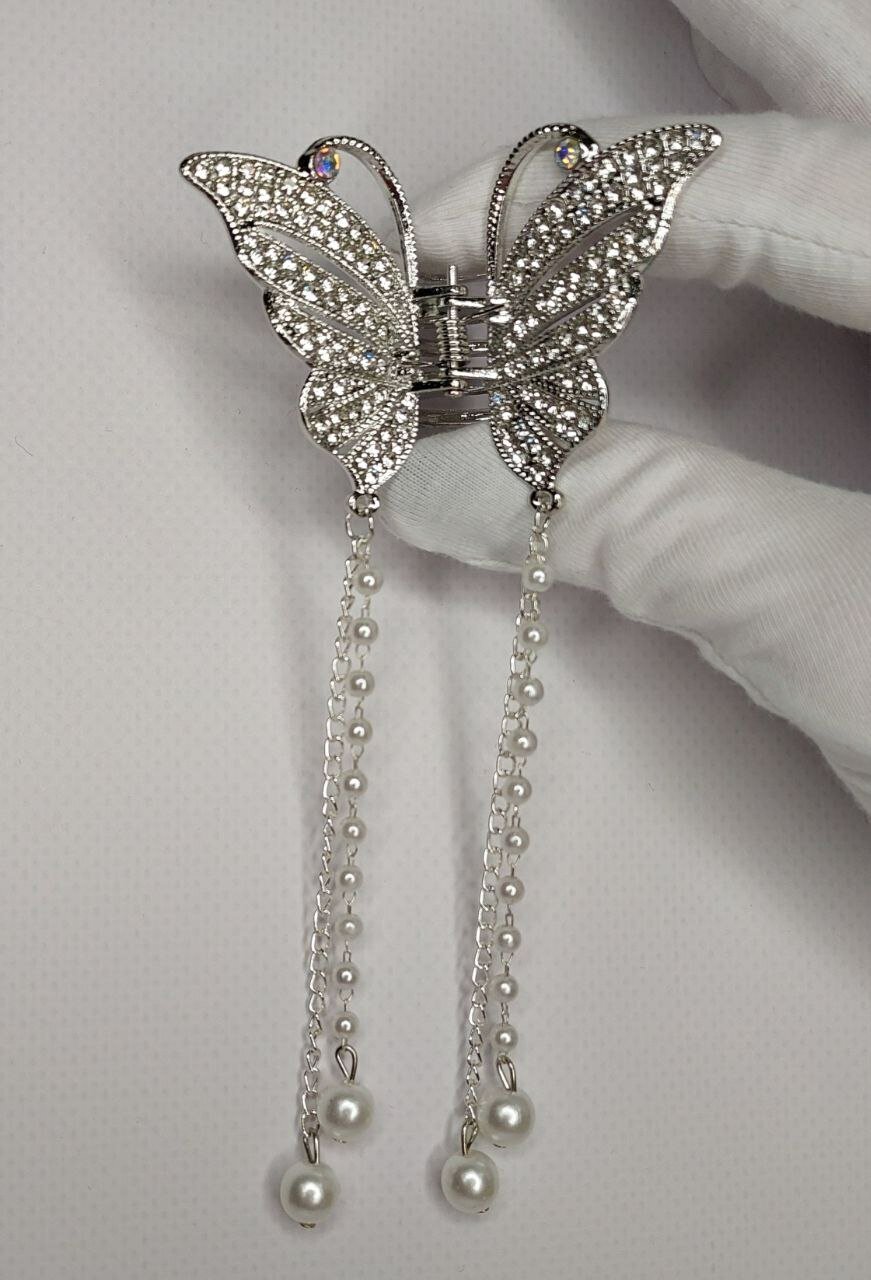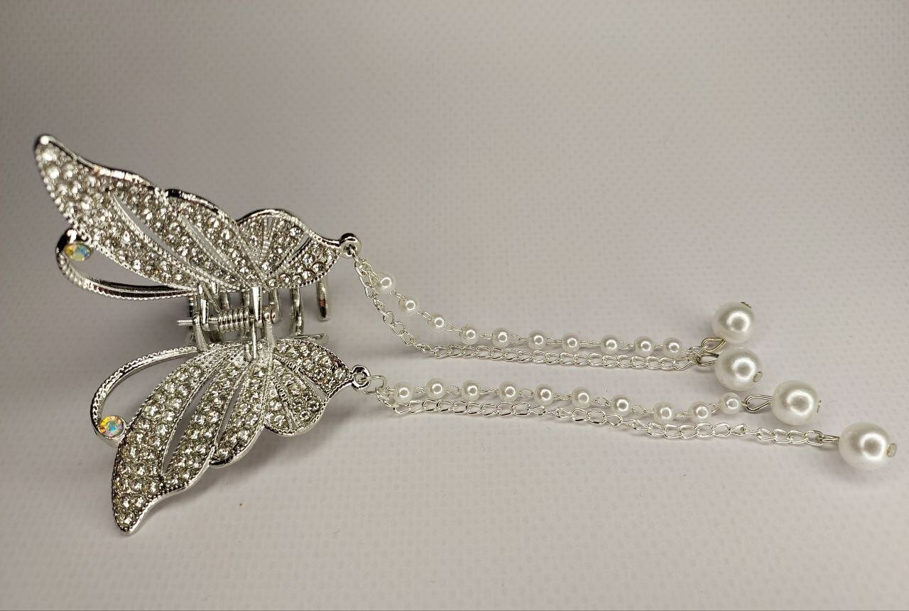 Краб-бабочка украшена стразами, которые придают аксессуару роскошный вид. Цвет заколки - серебристый, что делает ее подходящей для любого стиля и цвета одежды.