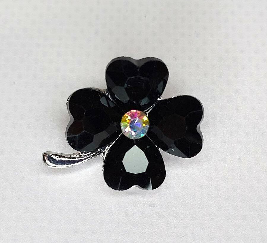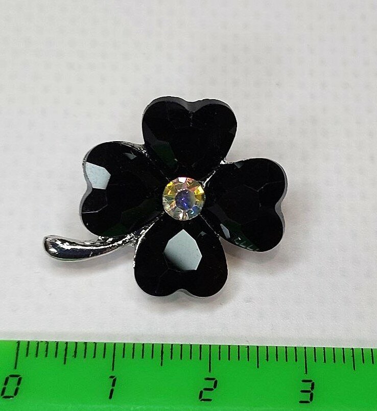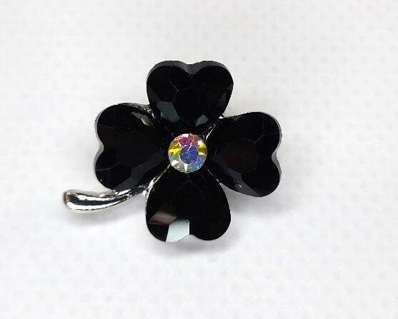Брошь. Брошка. Клевер-четырехлистник — символ удачи. Цвет черный