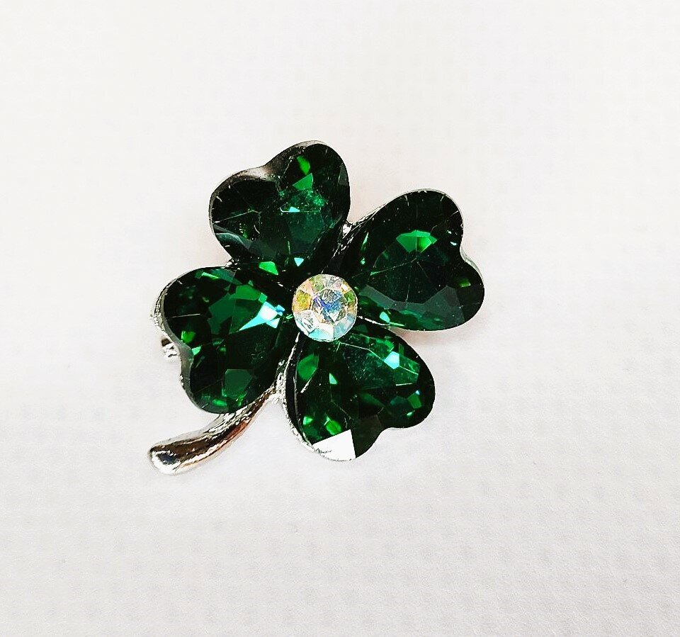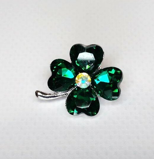 Брошь Клевер-четырехлистник, символ приносит счастье и благополучие своему владельцу.