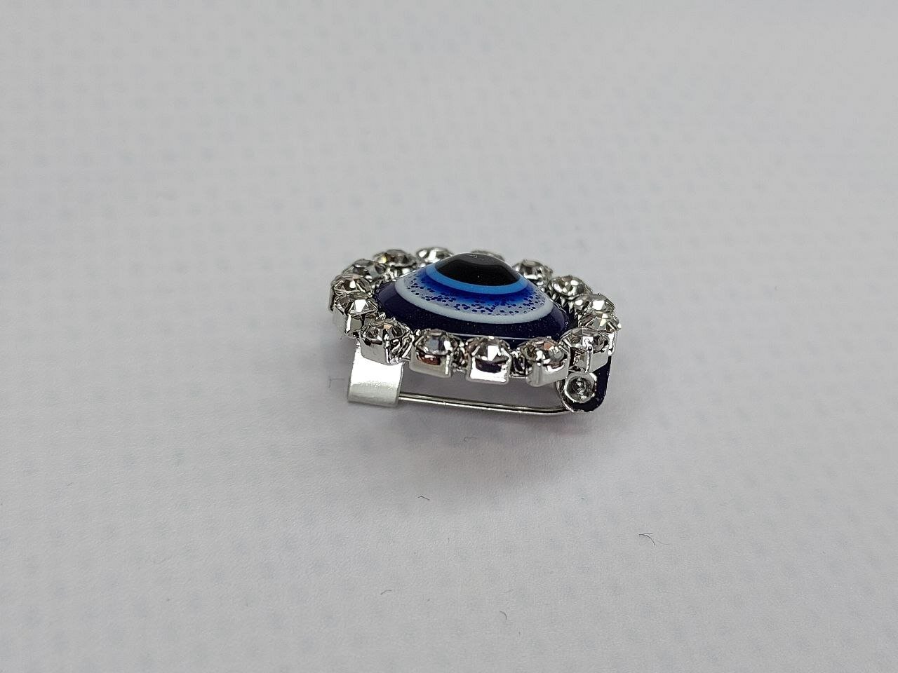 Брошь "Глаз Фатимы" выполнена в классическом серебряном цвете, который подойдет к любому образу и стилю одежды.