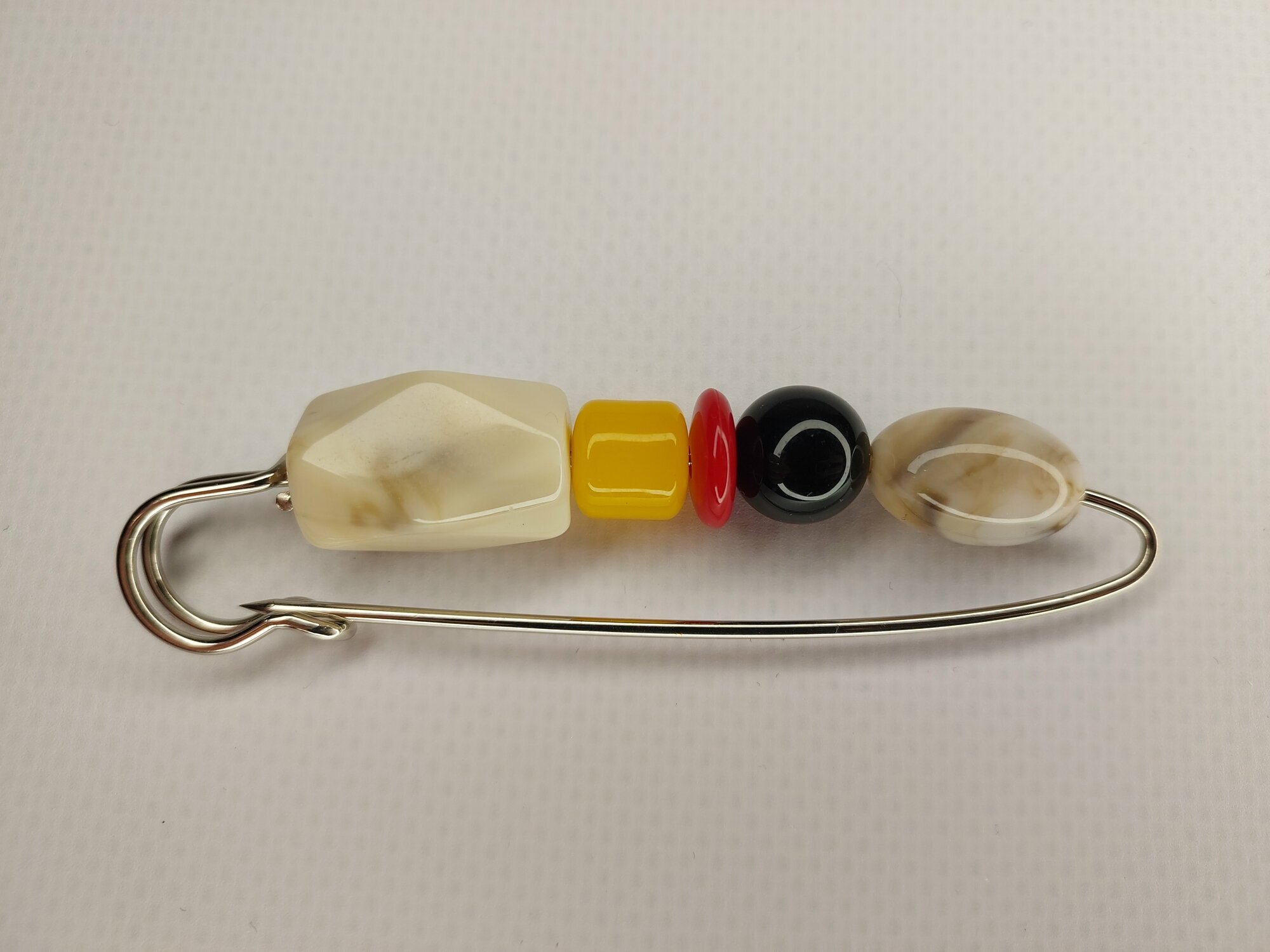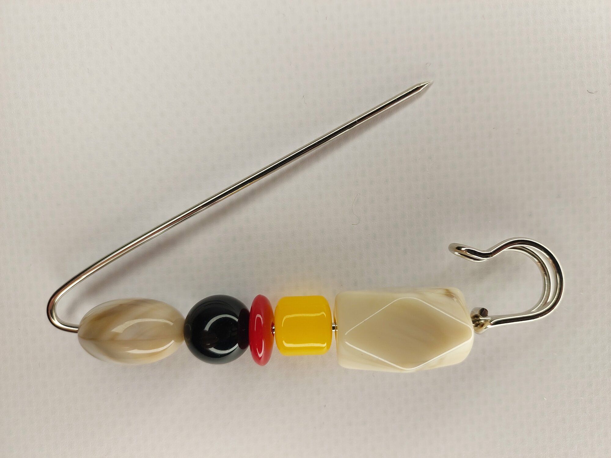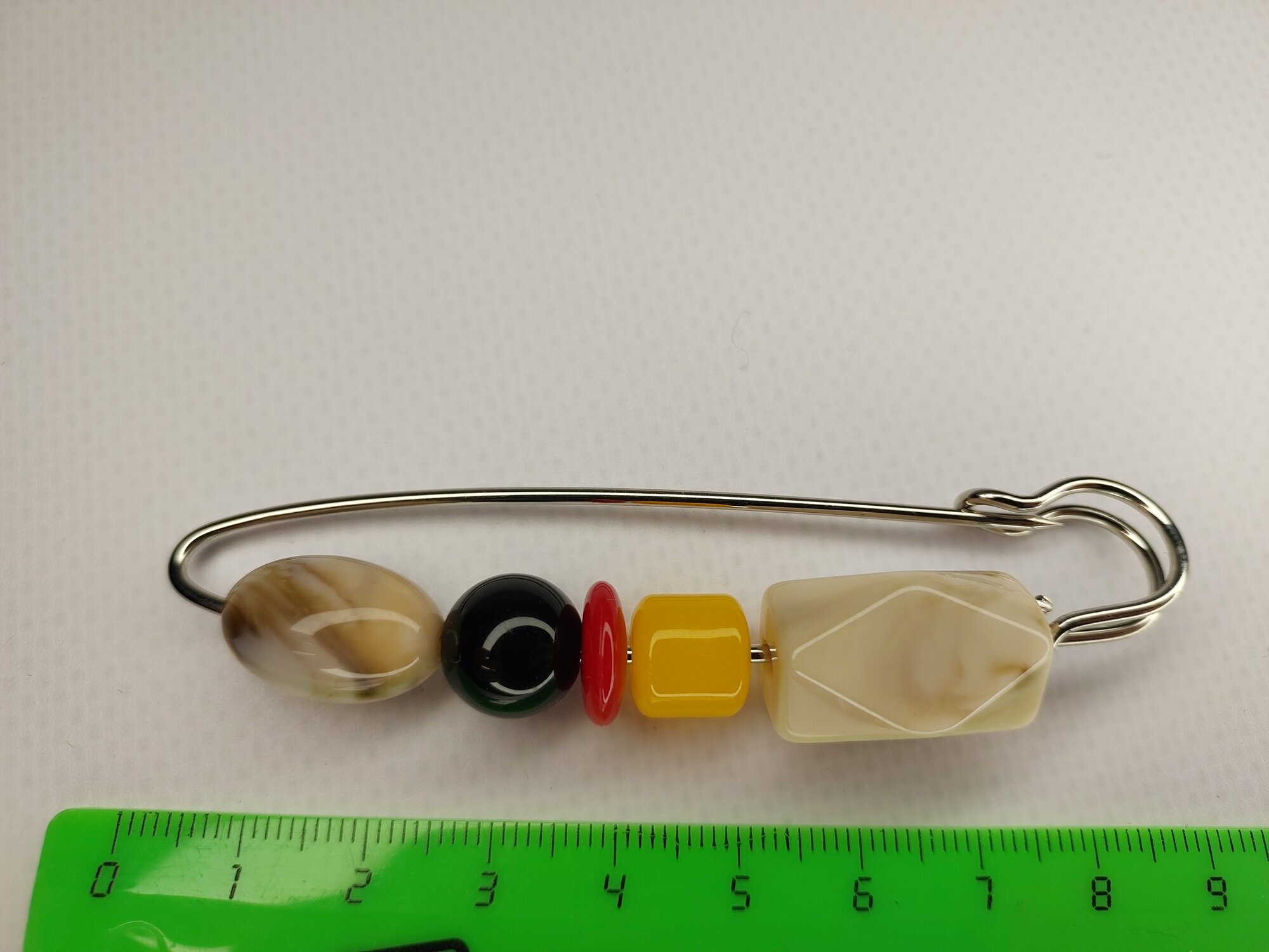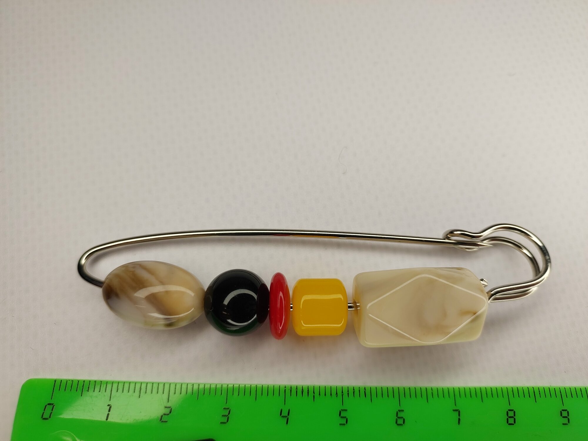 Брошь-булавка оснащена булавкой-замком, что обеспечивает надежное крепление и удобство использования.