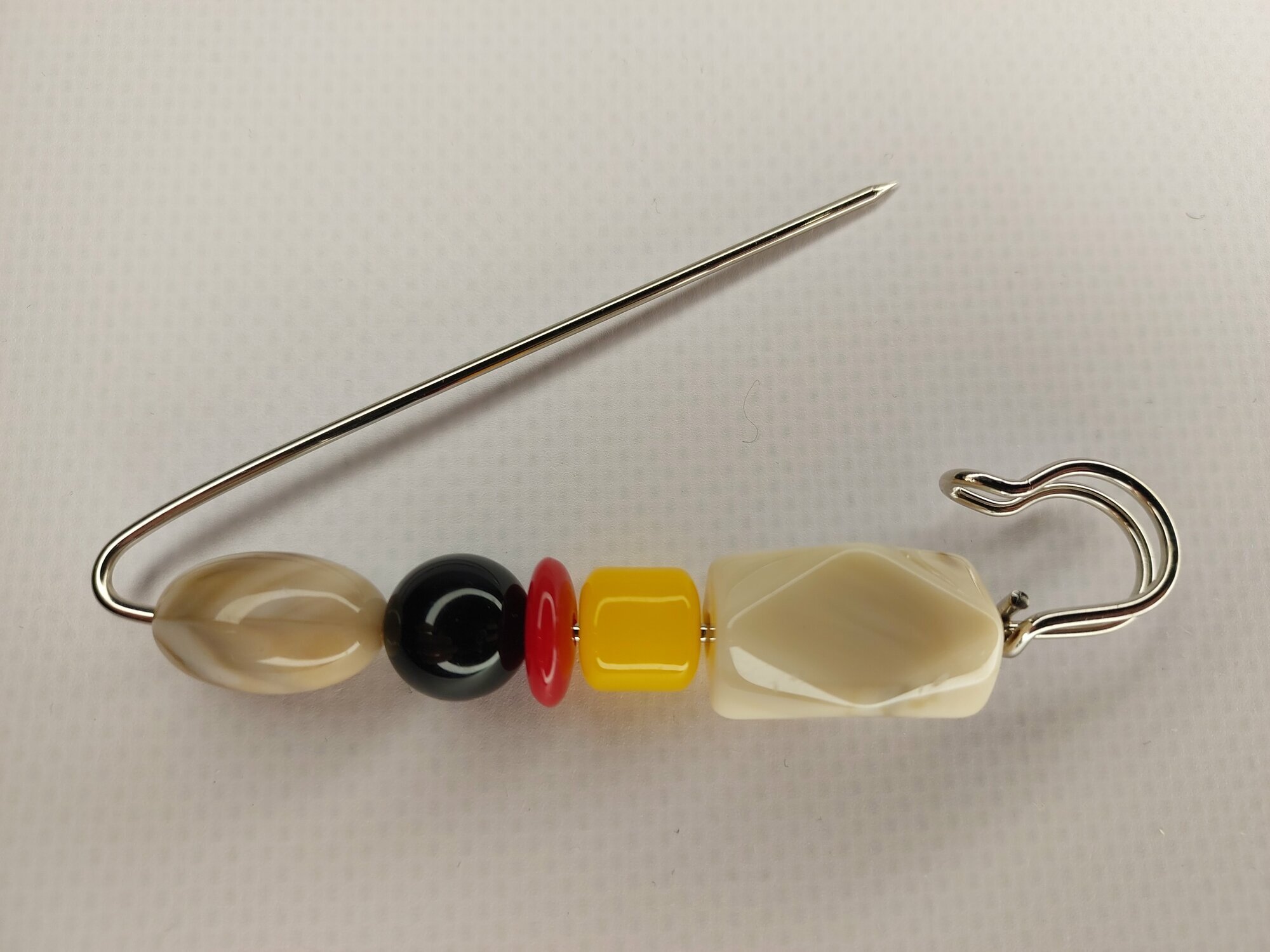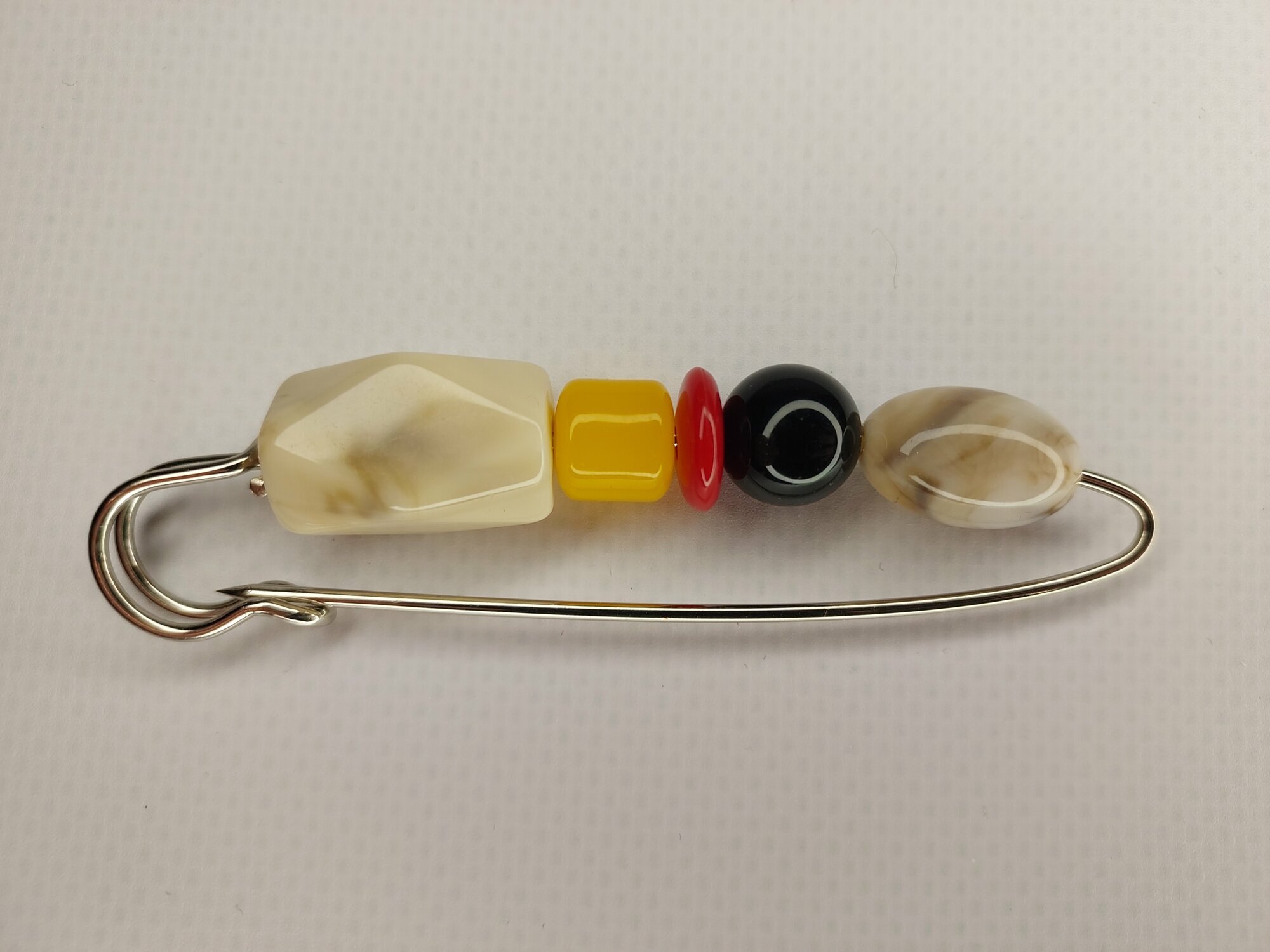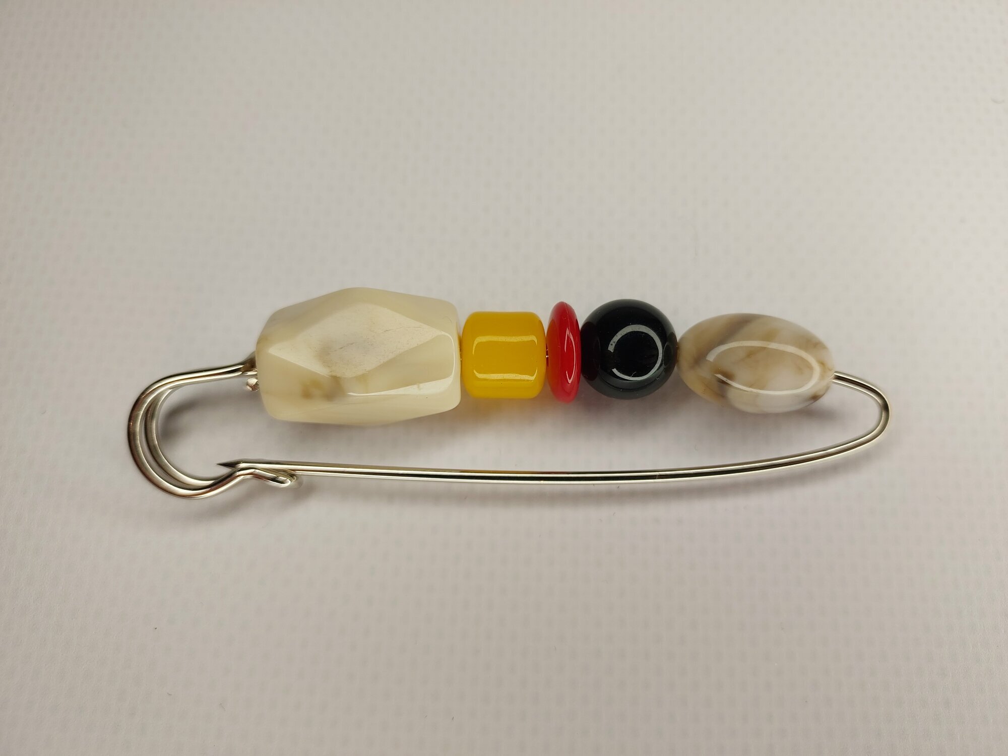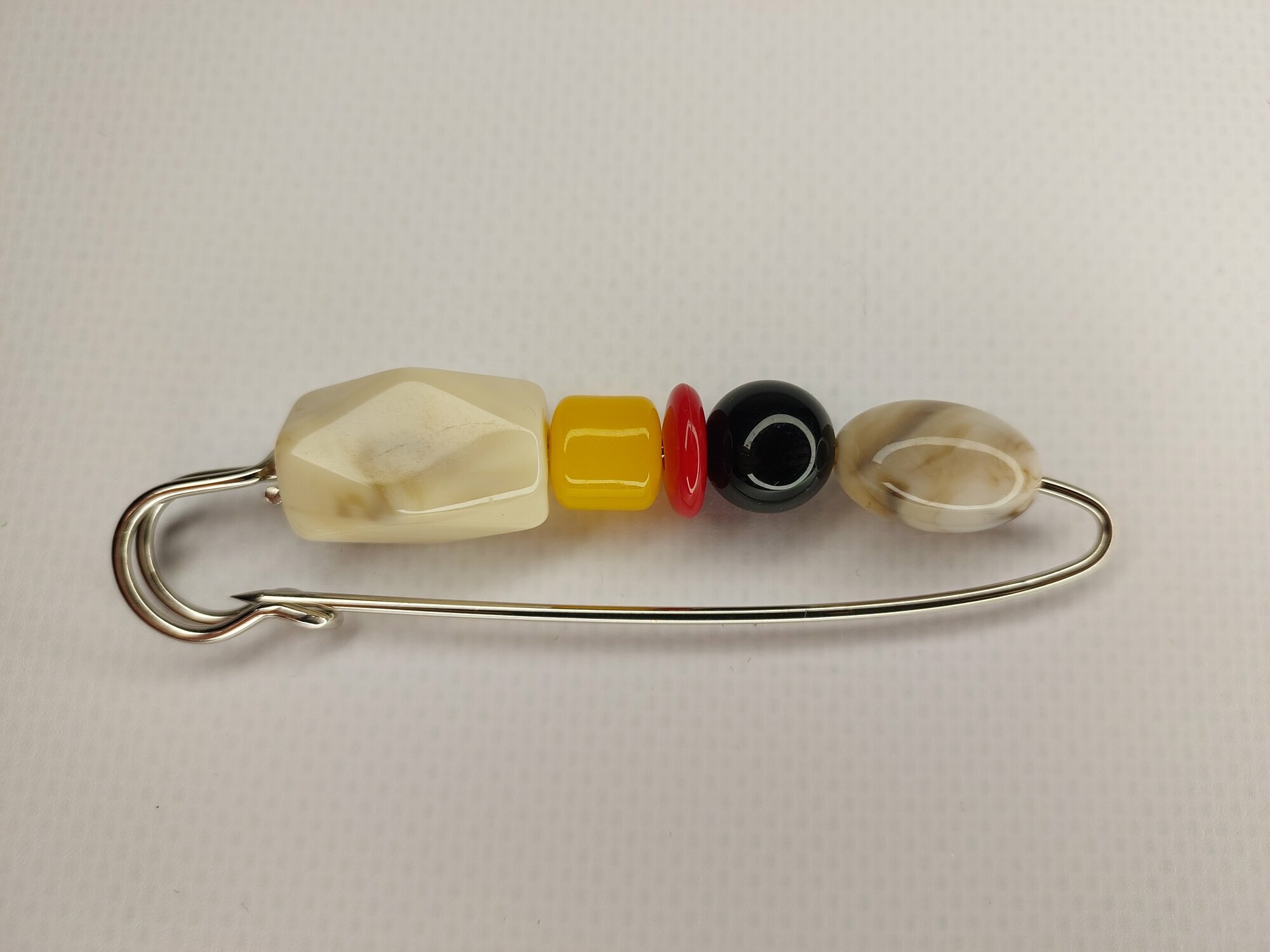Брошь-булавка оснащена булавкой-замком, что обеспечивает надежное крепление и удобство использования.