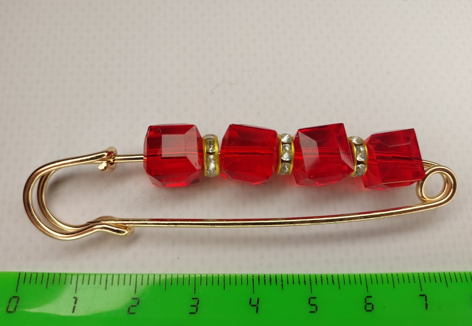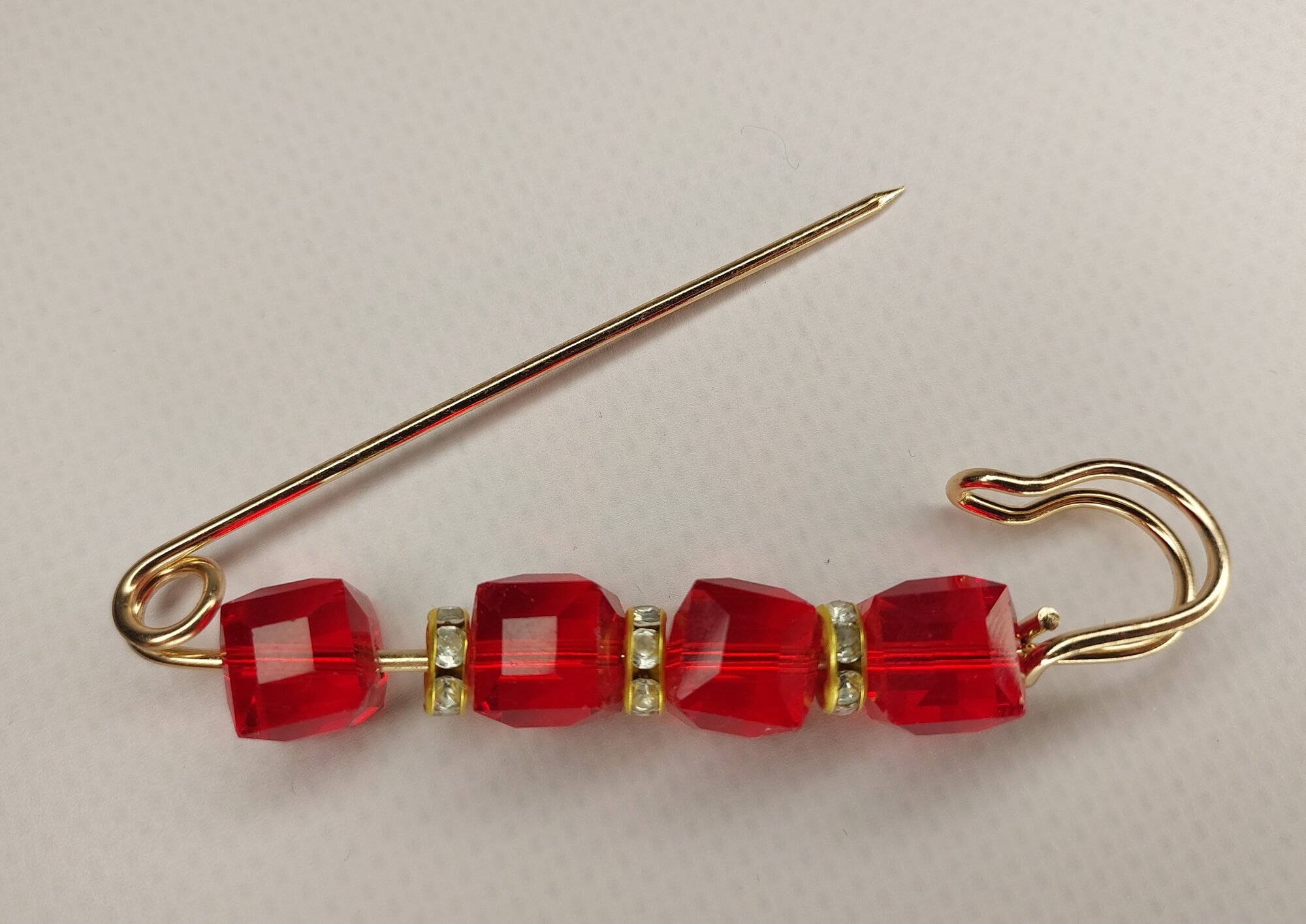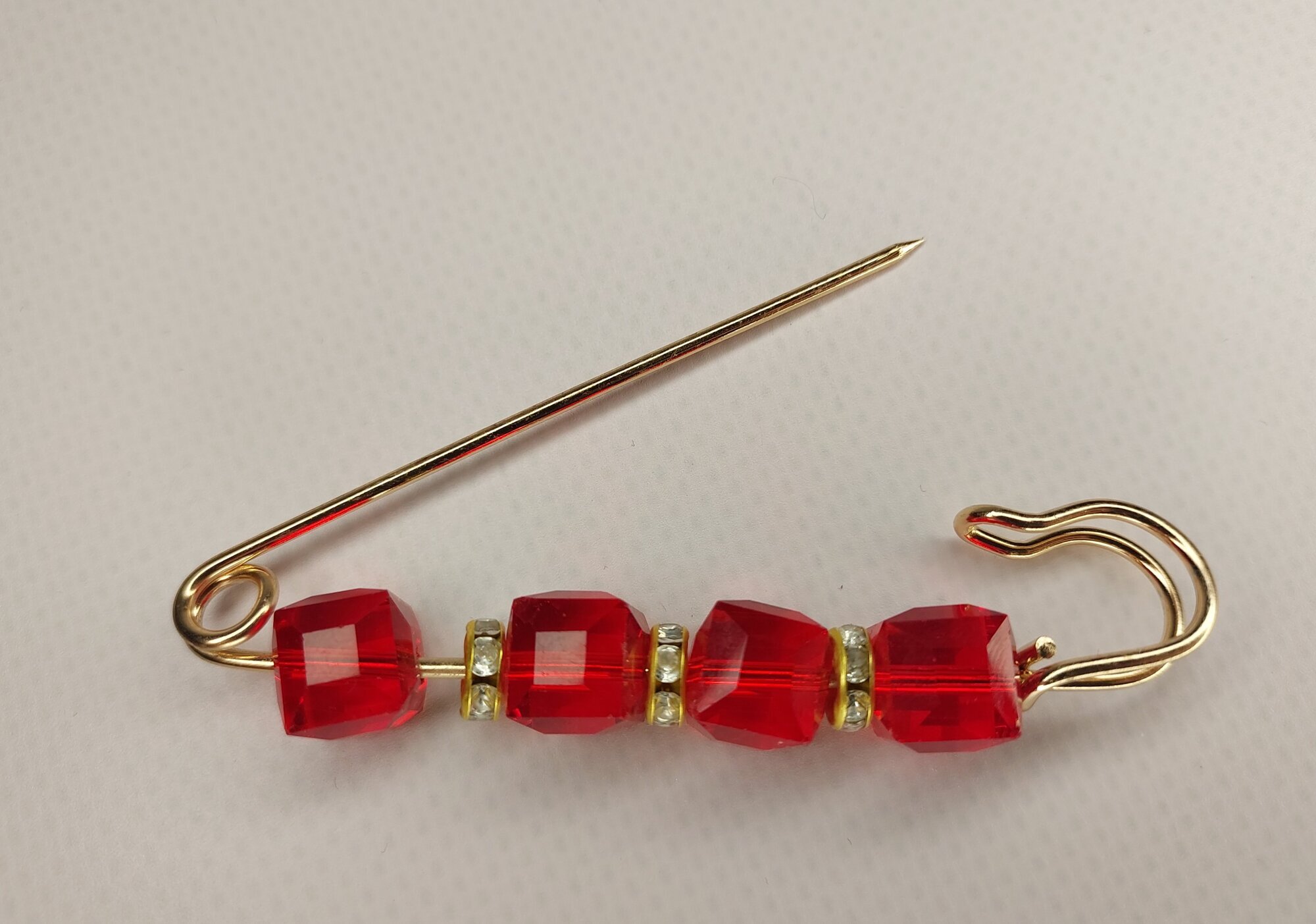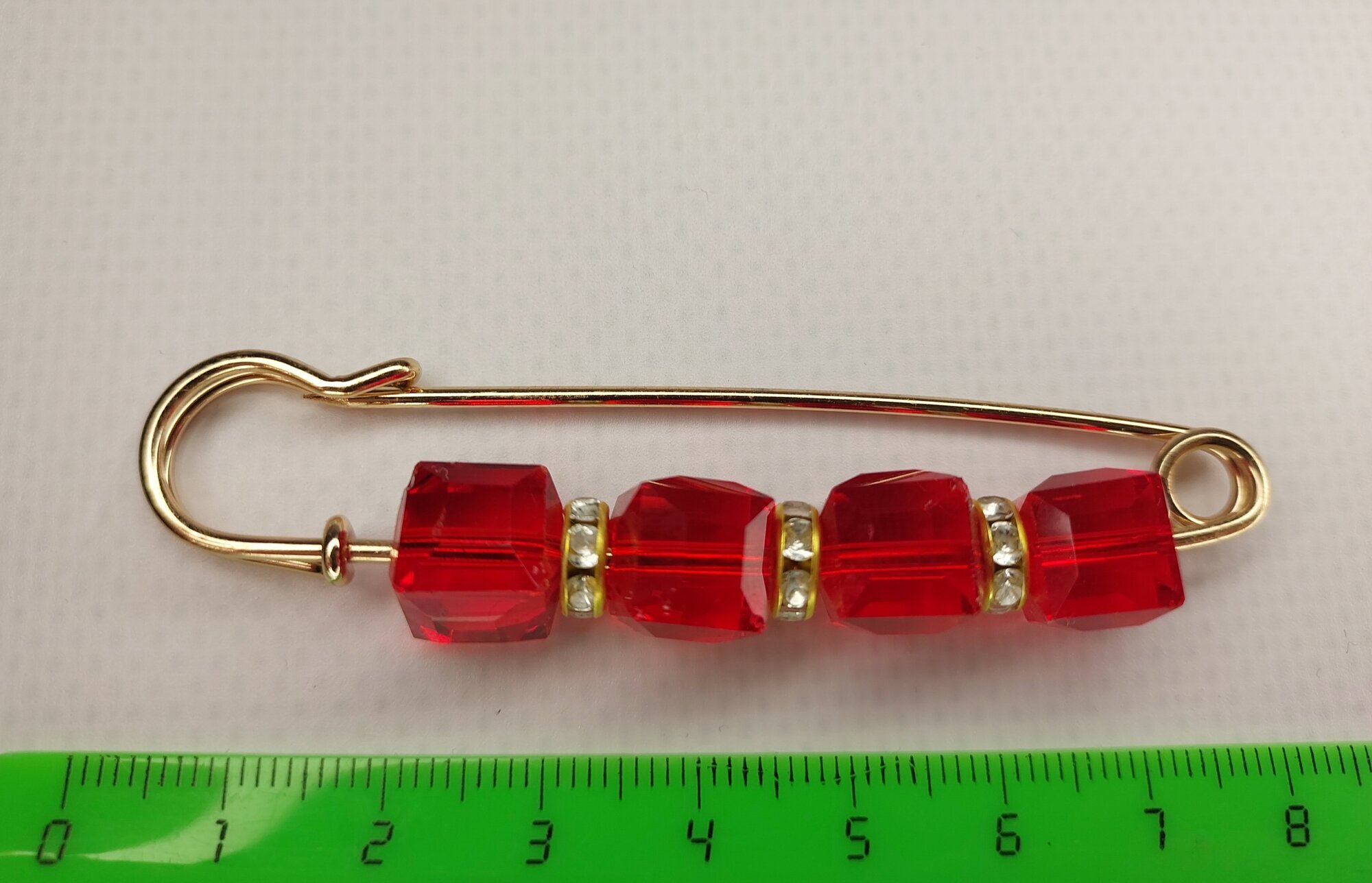 Брошь-булавка "Красные камешки" - это не только стильный аксессуар, но и практичный инструмент для закрепления платков, шарфов и другой одежды.