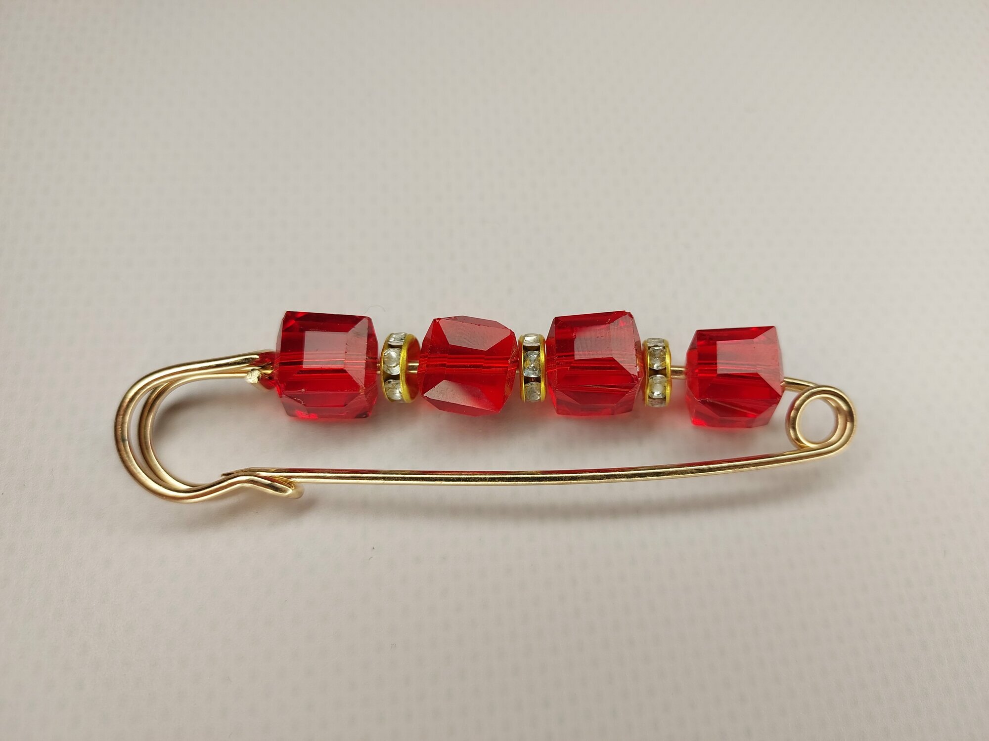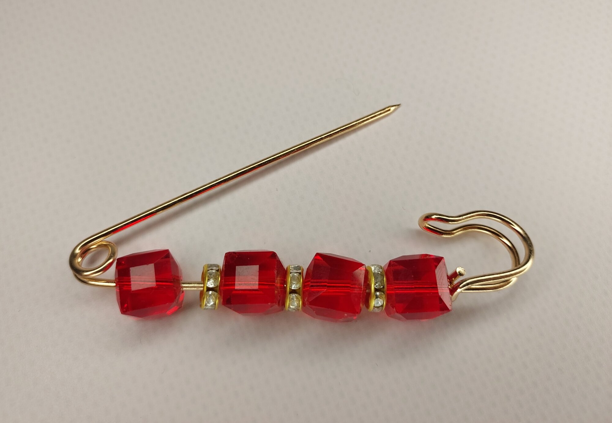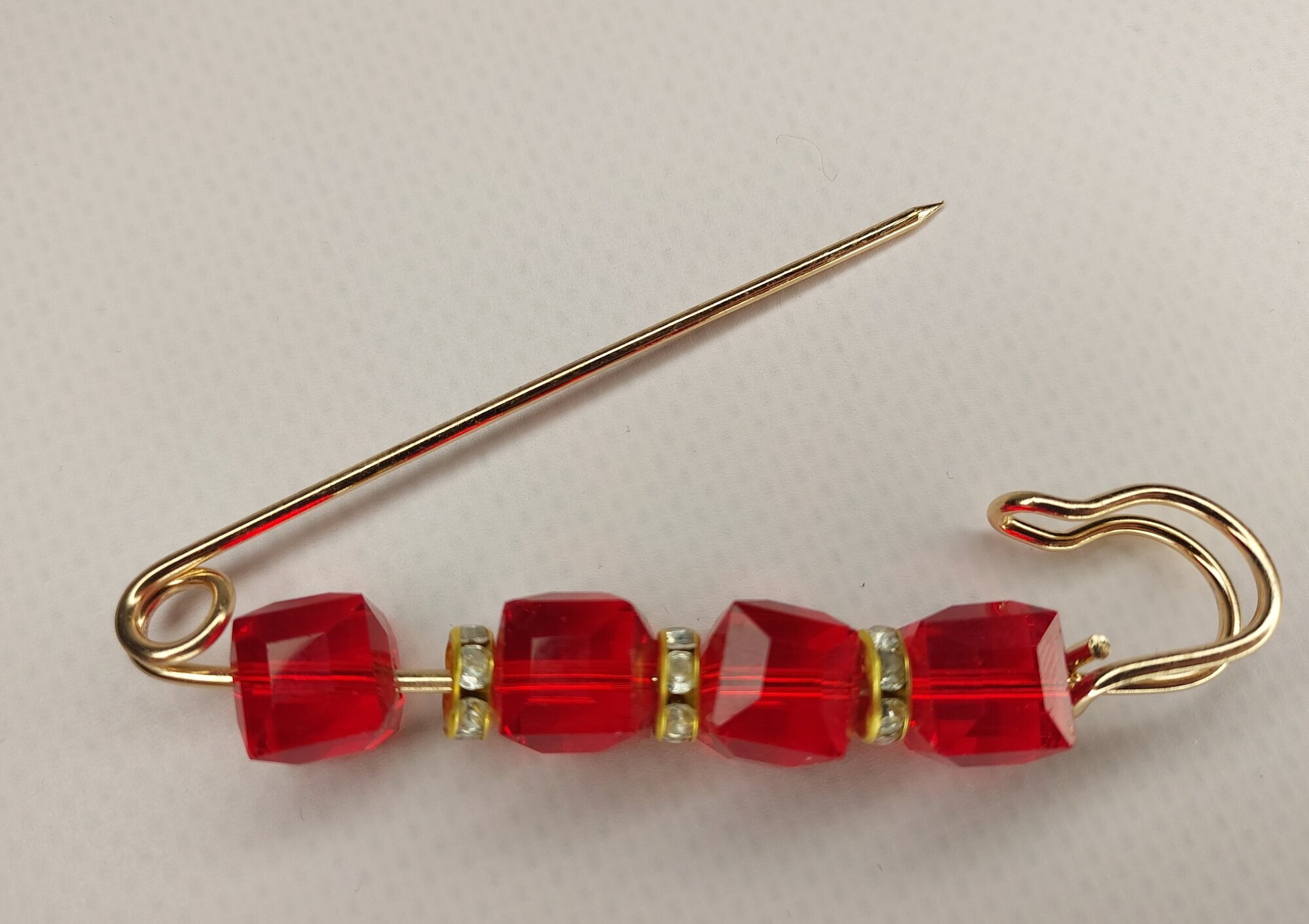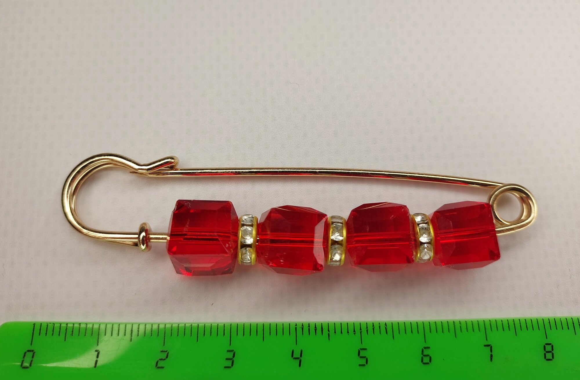 Брошь-булавка "Красные камешки" - это не только стильный аксессуар, но и практичный инструмент для закрепления платков, шарфов и другой одежды.