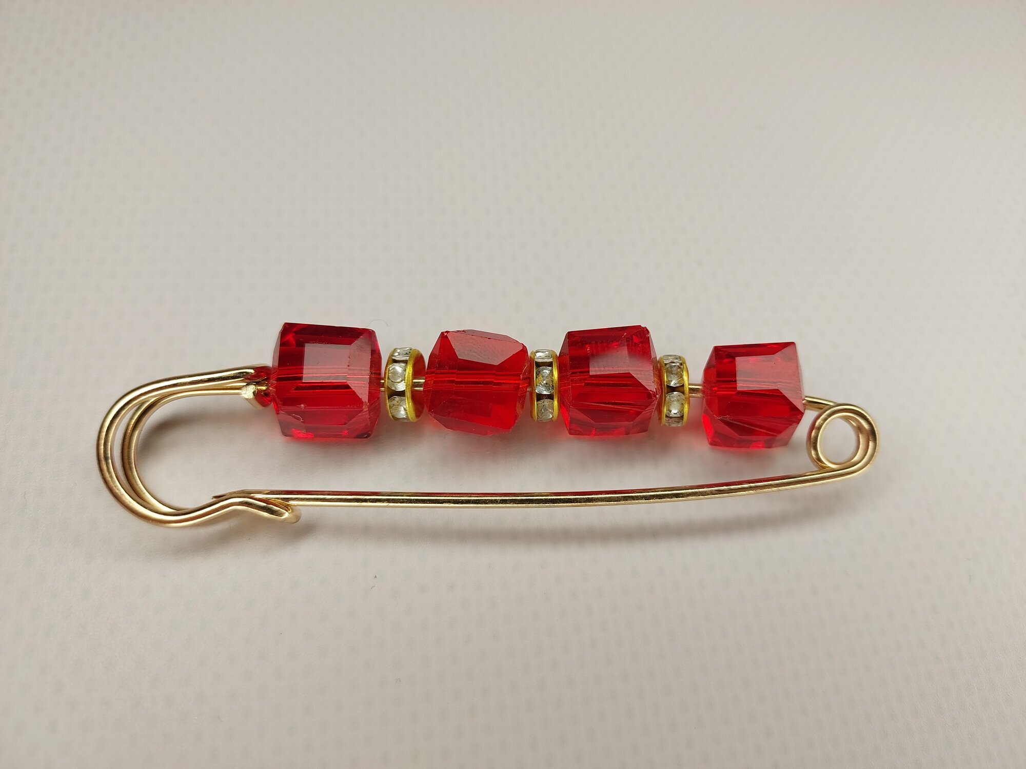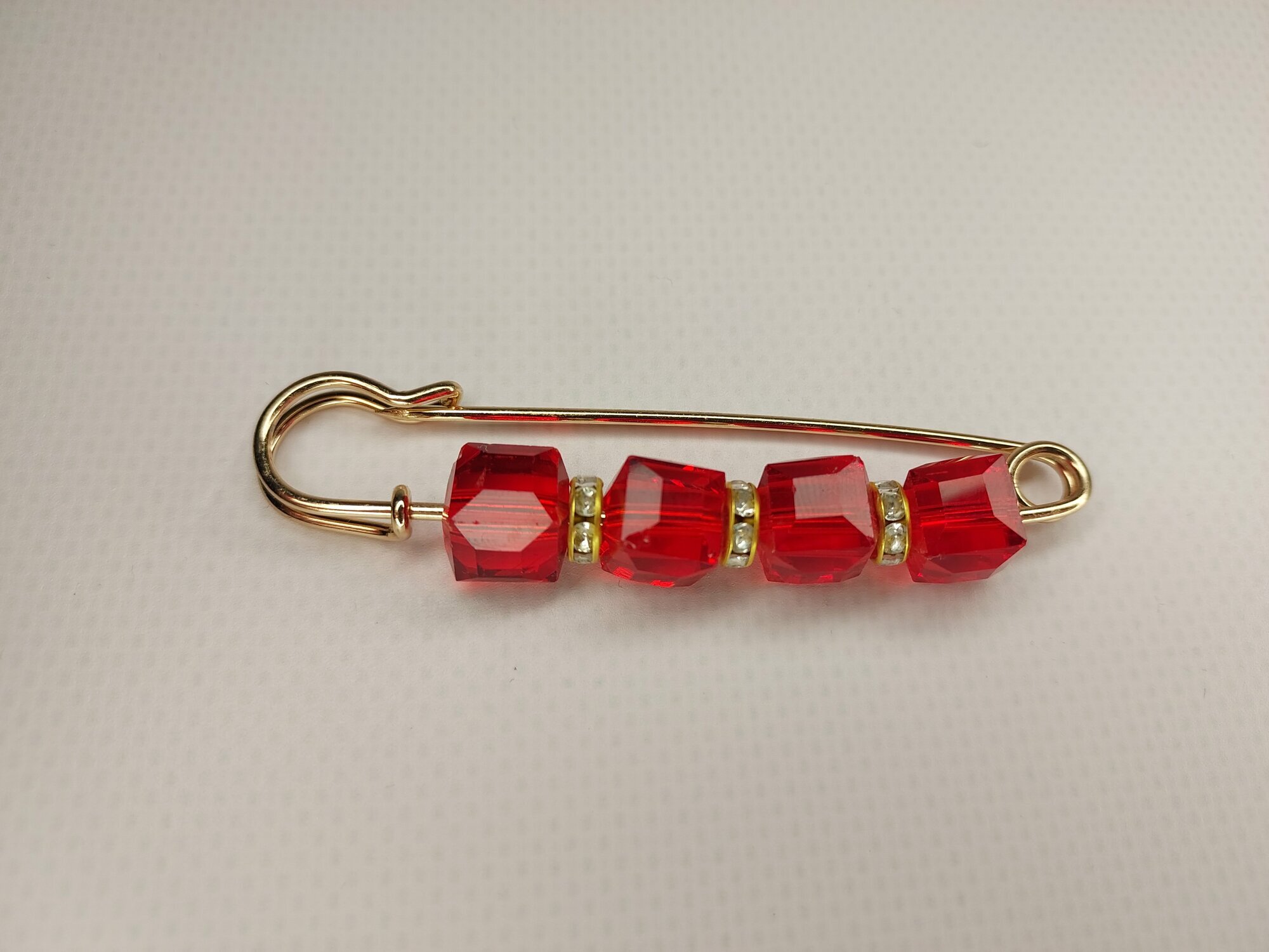 Брошь-булавка "Красные камешки" - это стильное и функциональное украшение, которое подойдет для кардиганов, платков, шарфов, одежды, сумок, рубашек, шляпок, жакетов и галстуков.