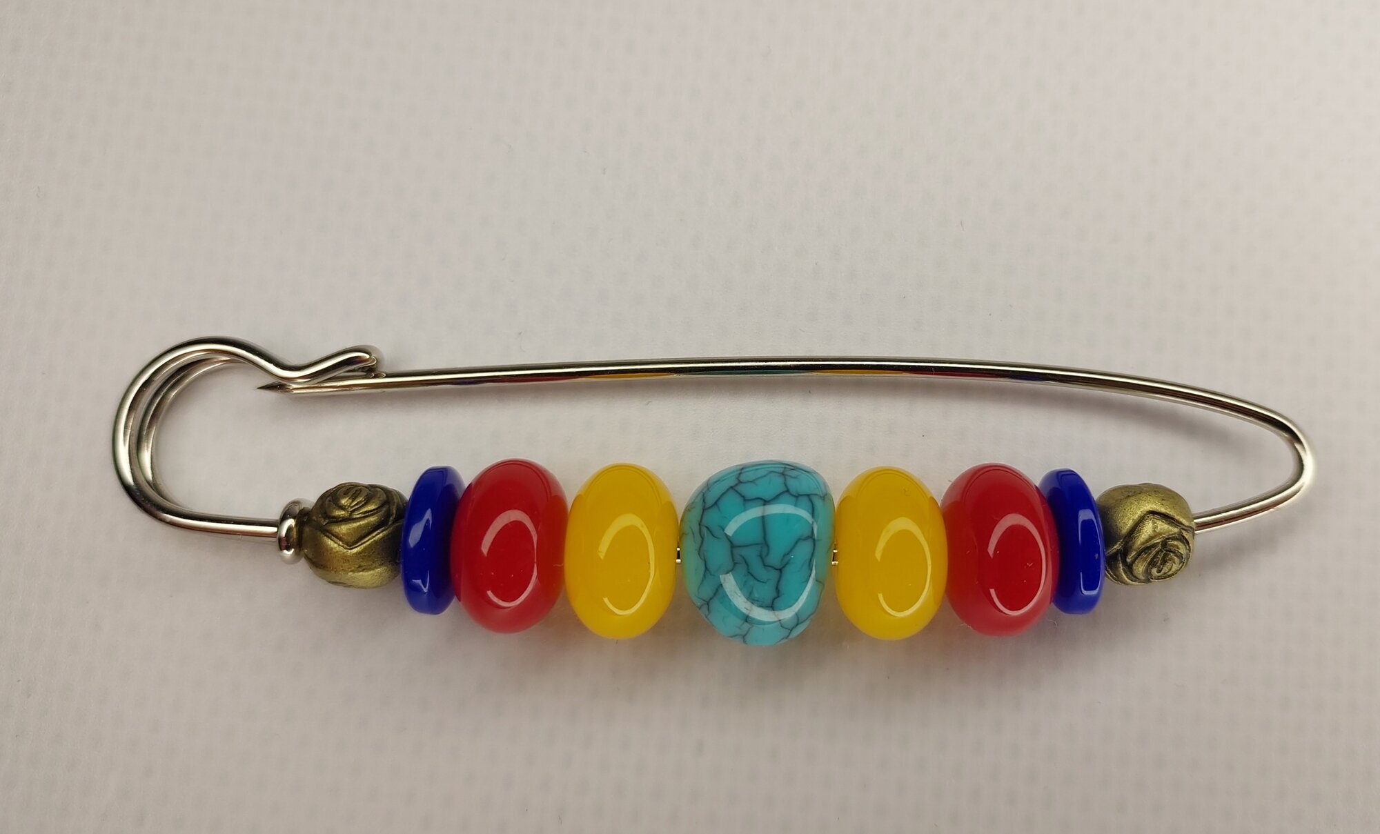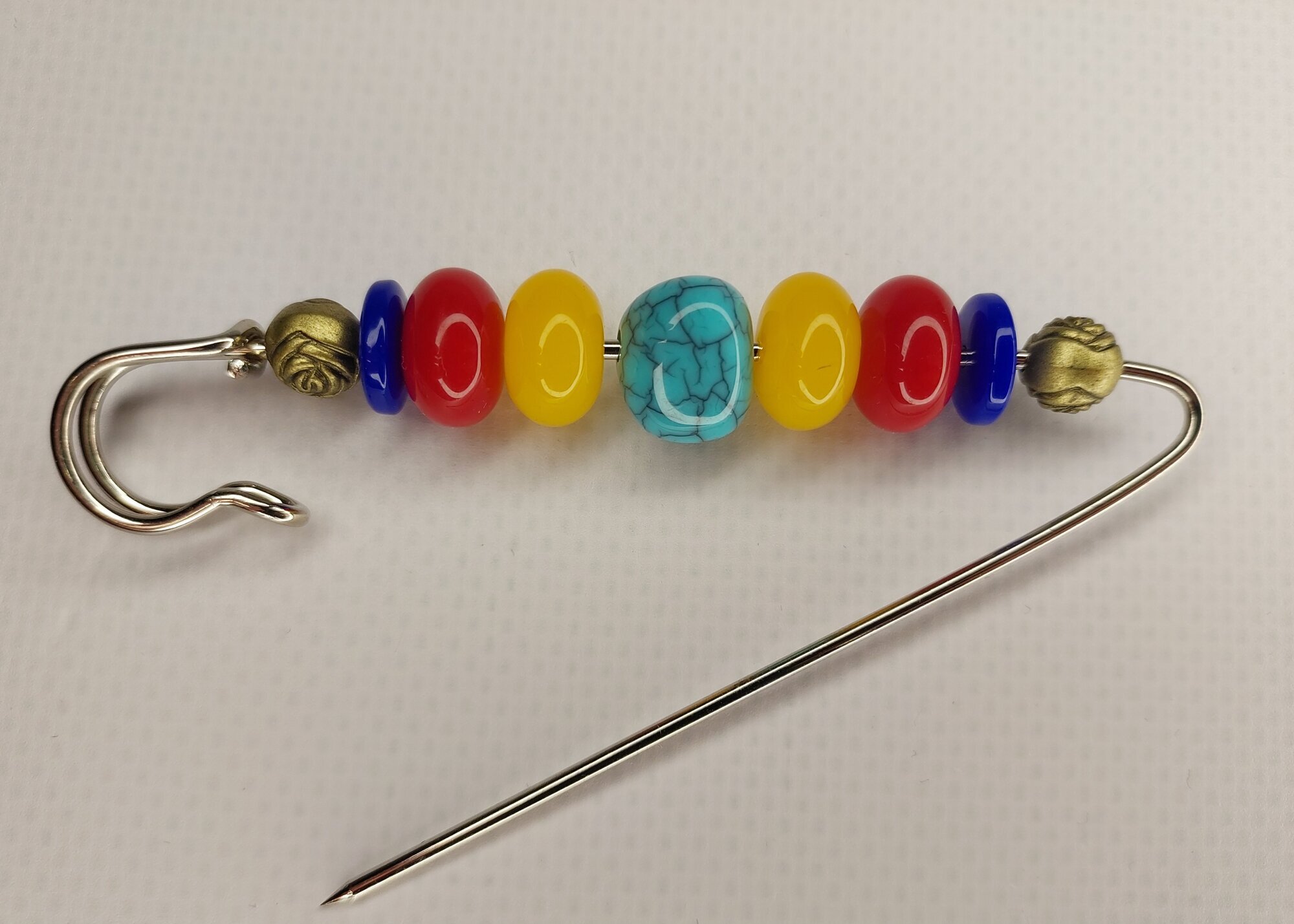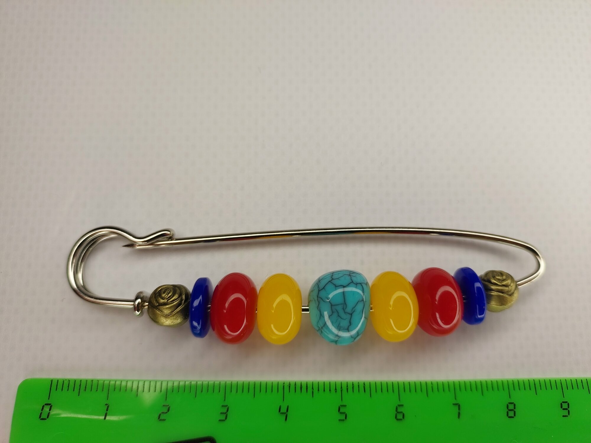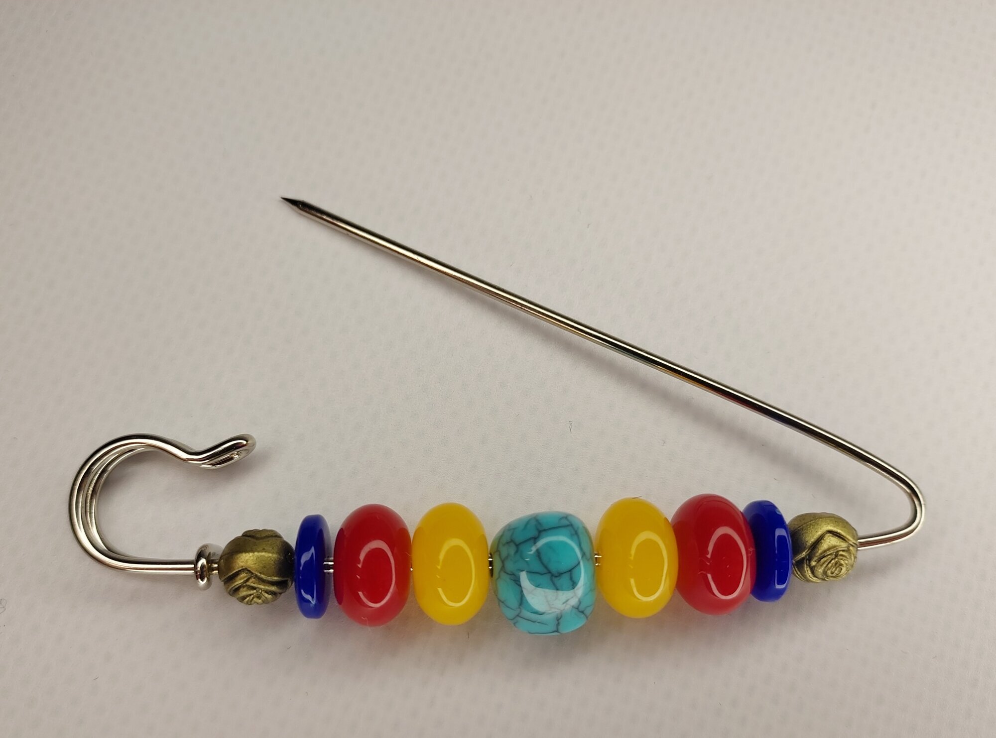 Цвет булавки-броши разноцветный что позволяет ей гармонично сочетаться с различными цветами одежды и аксессуаров.