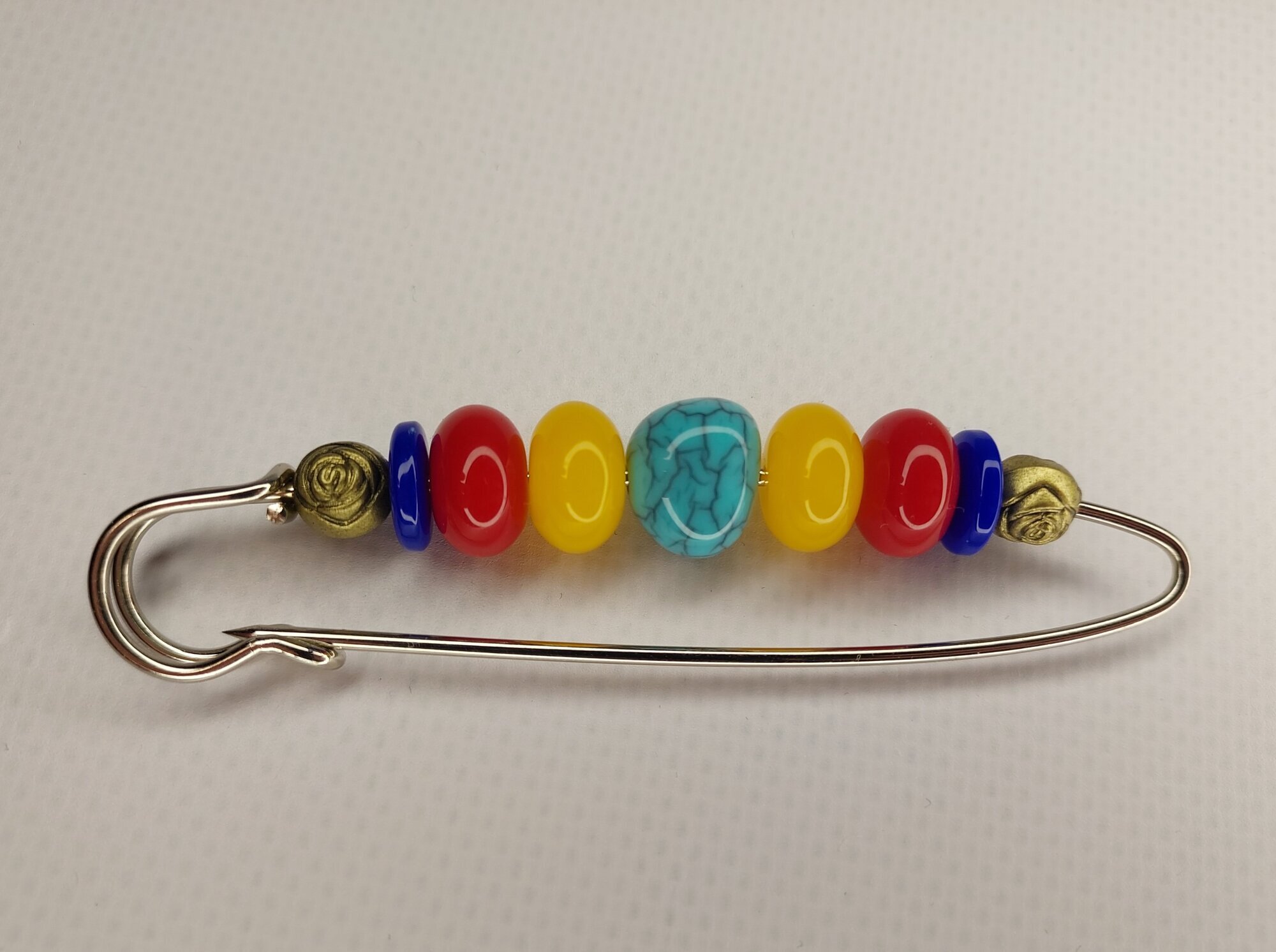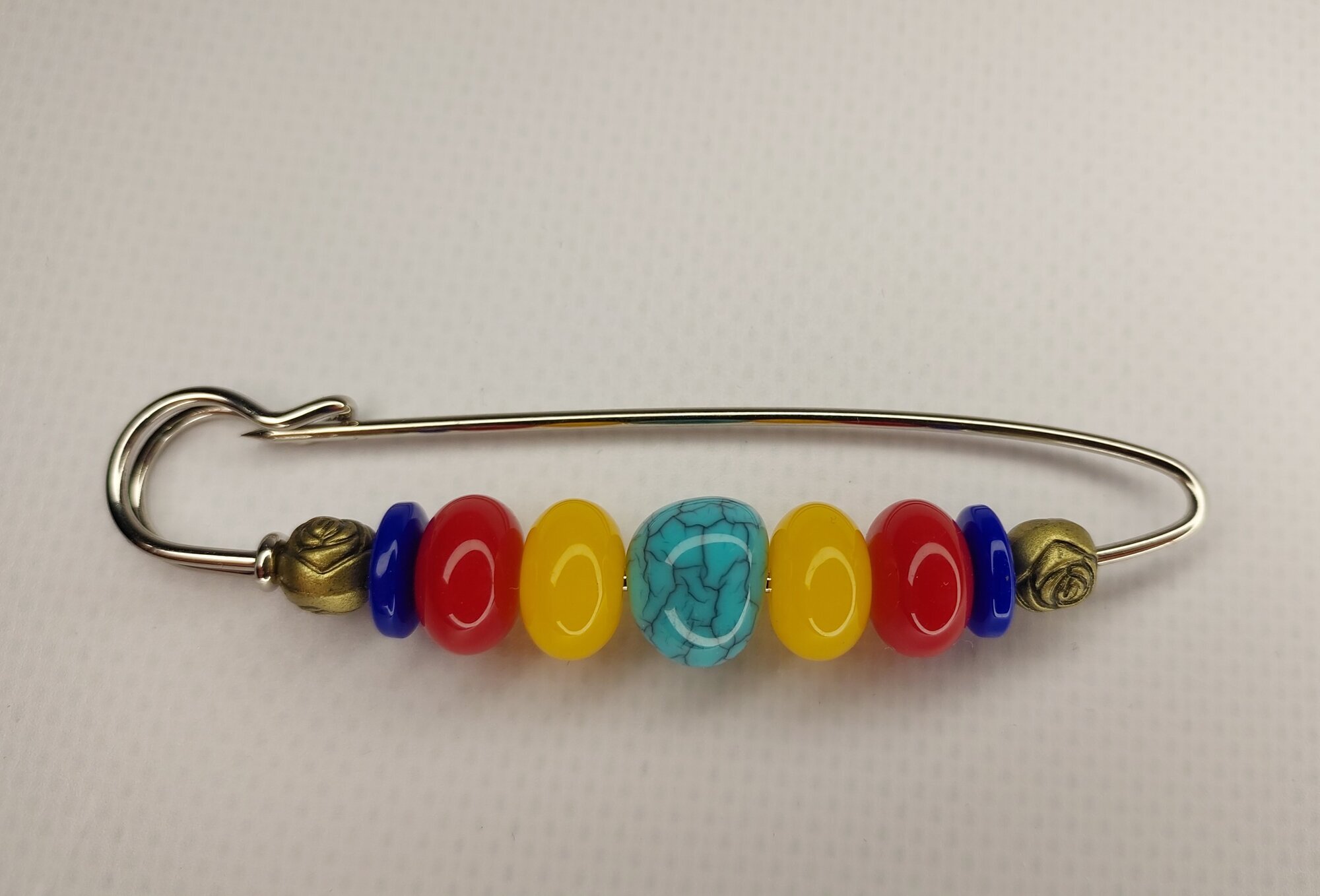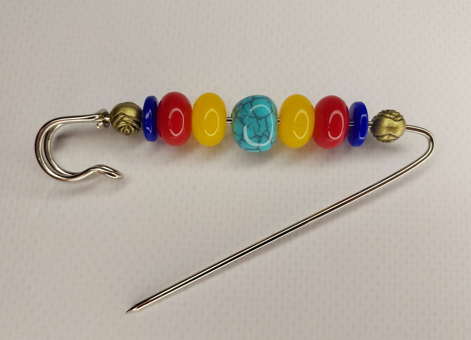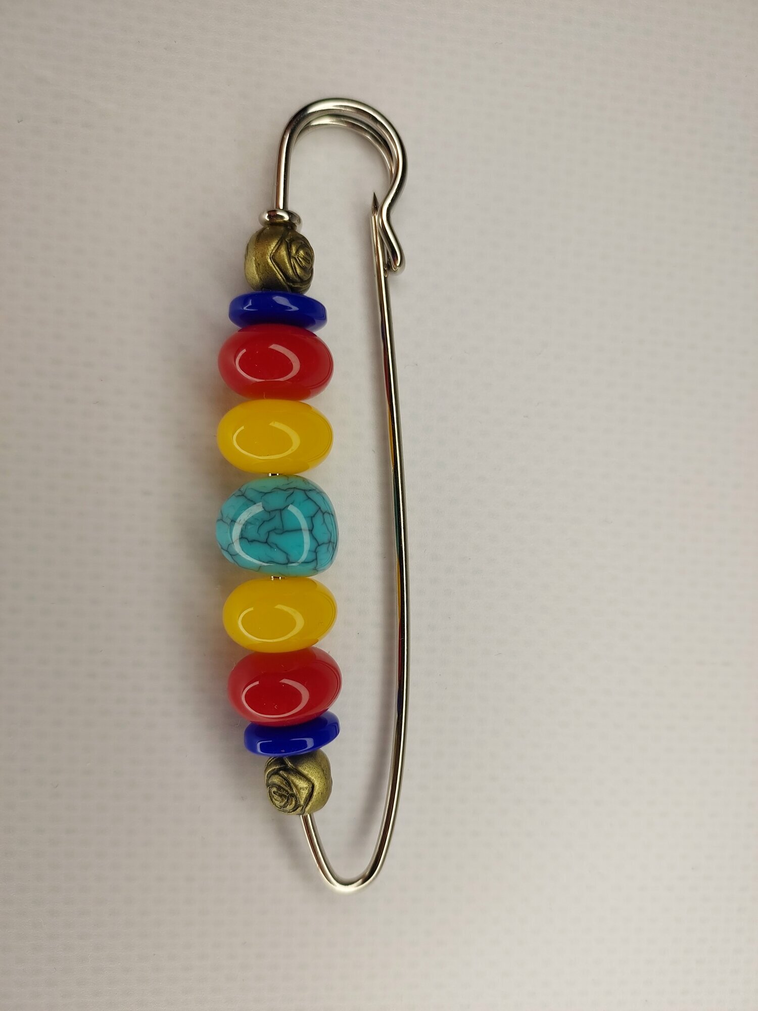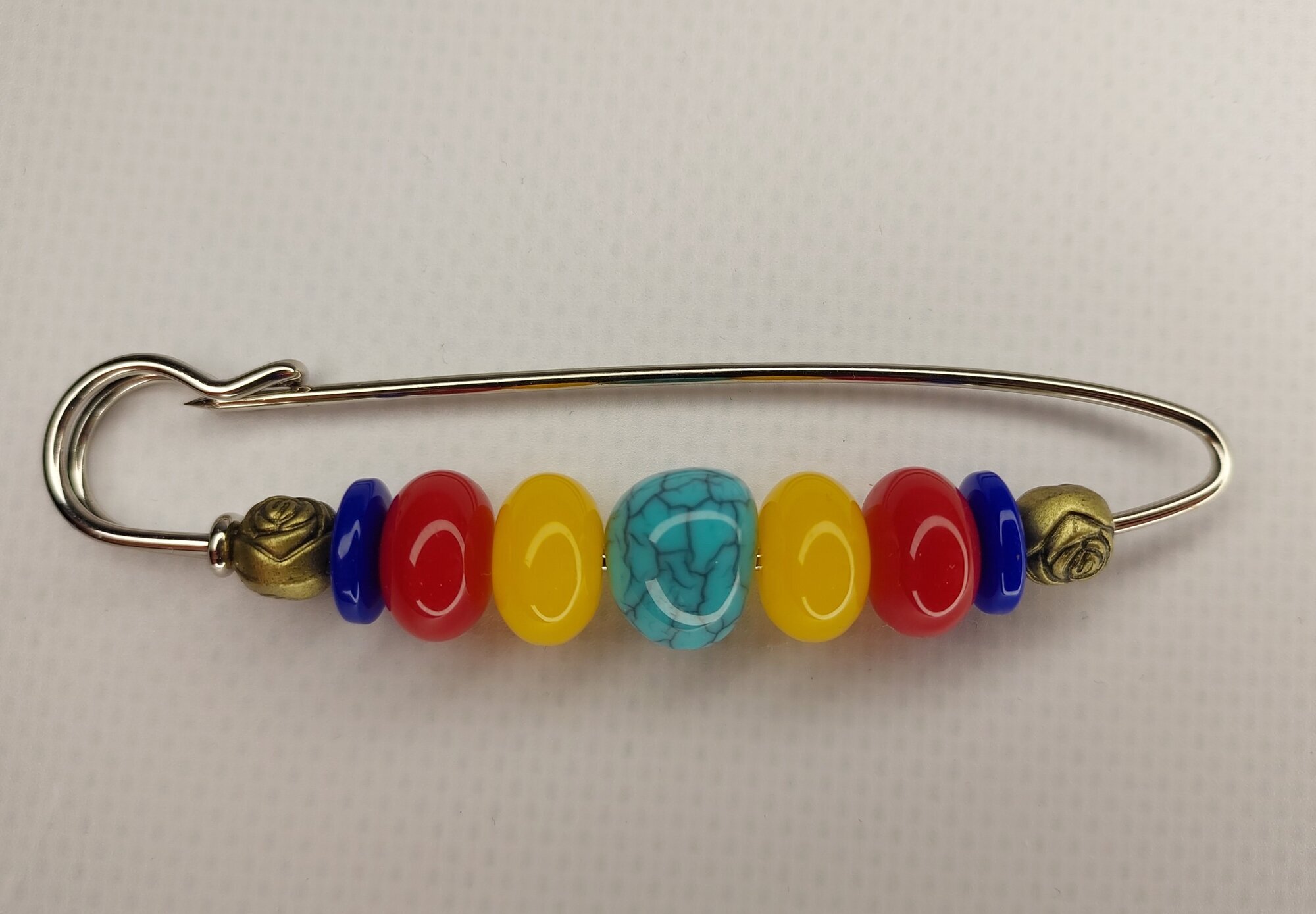 Цвет булавки-броши разноцветный что позволяет ей гармонично сочетаться с различными цветами одежды и аксессуаров.
