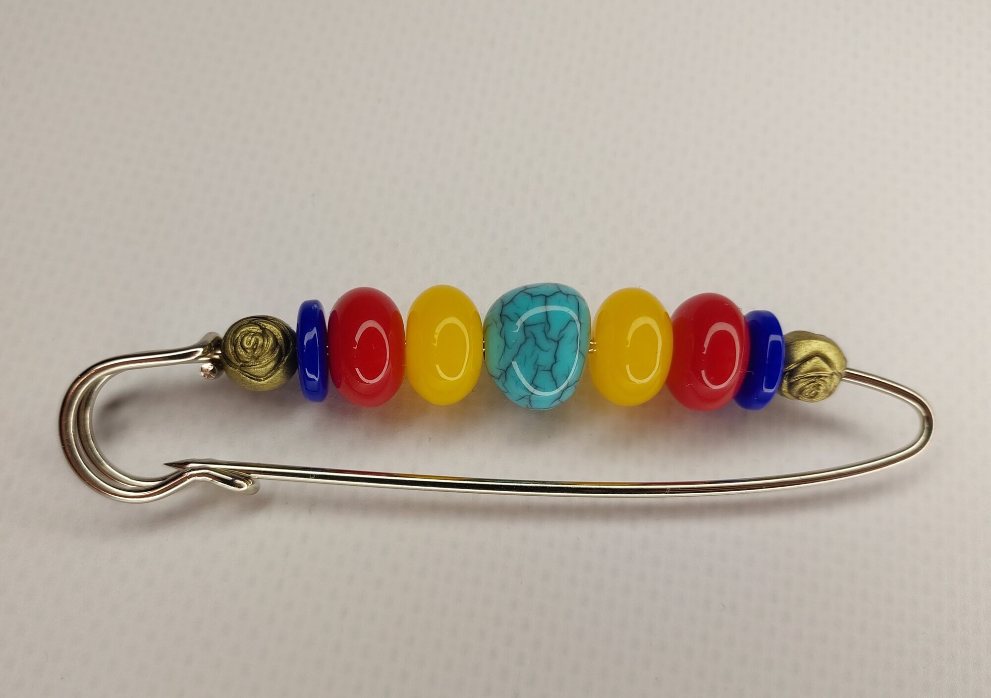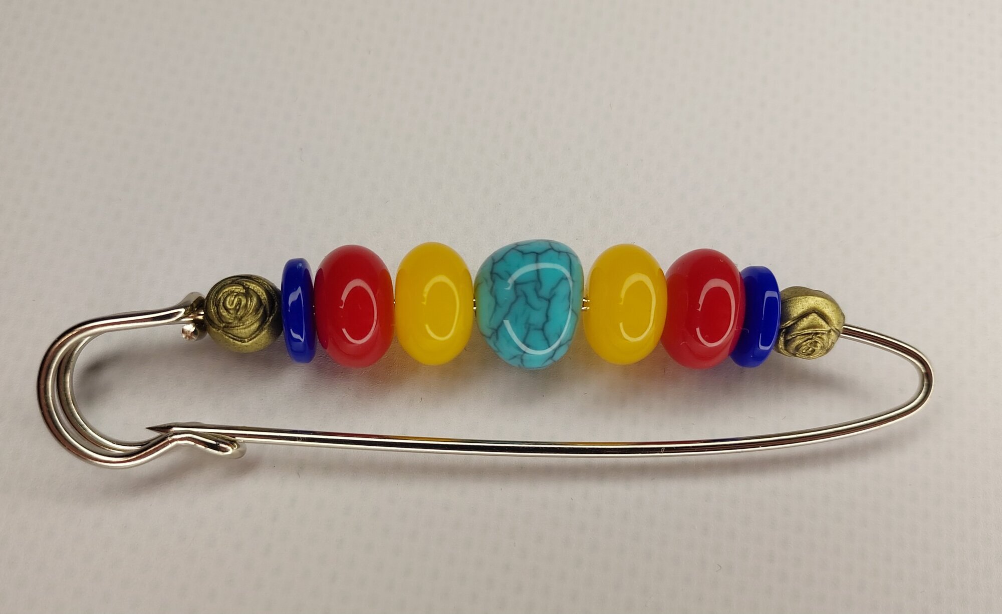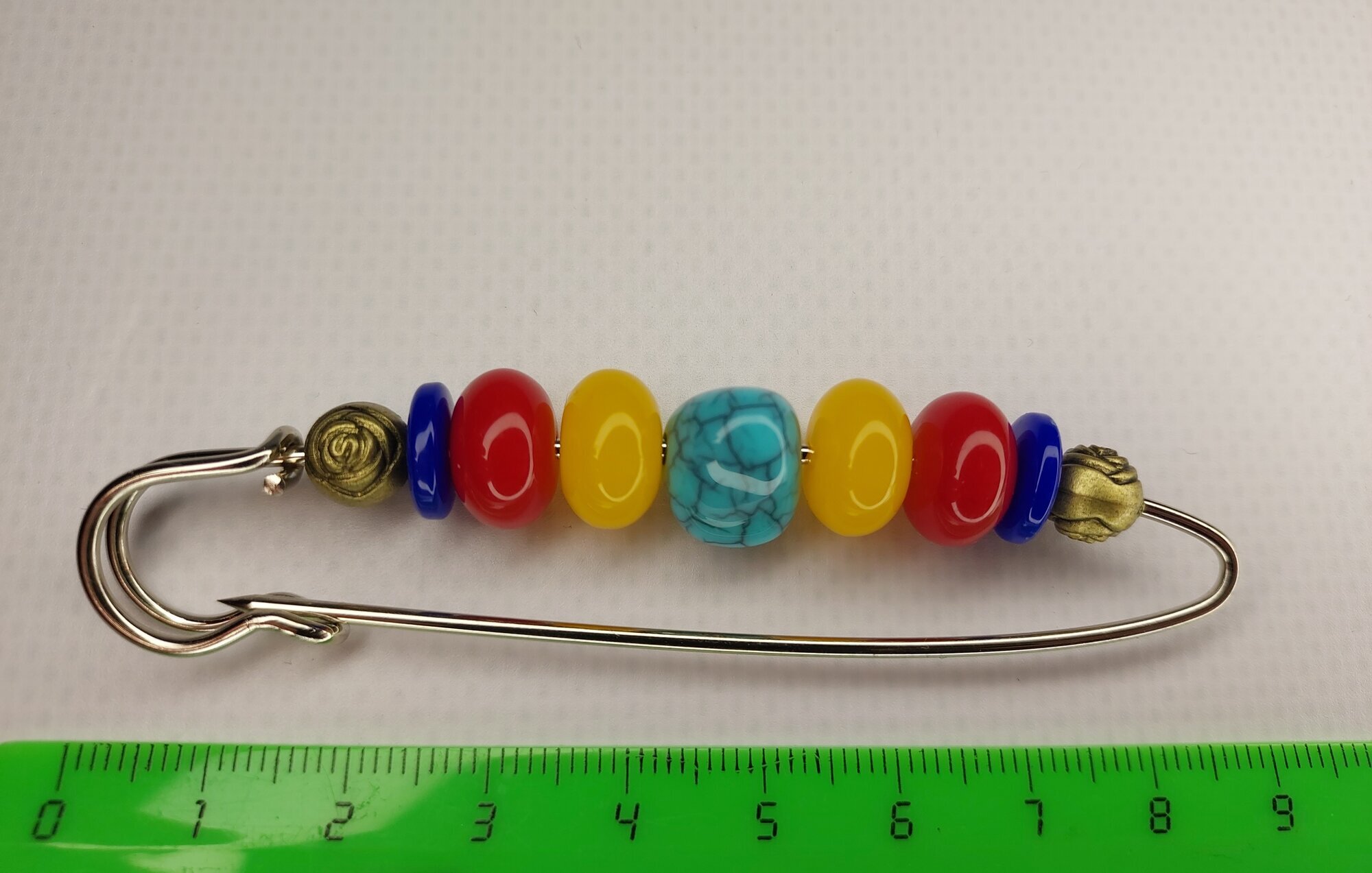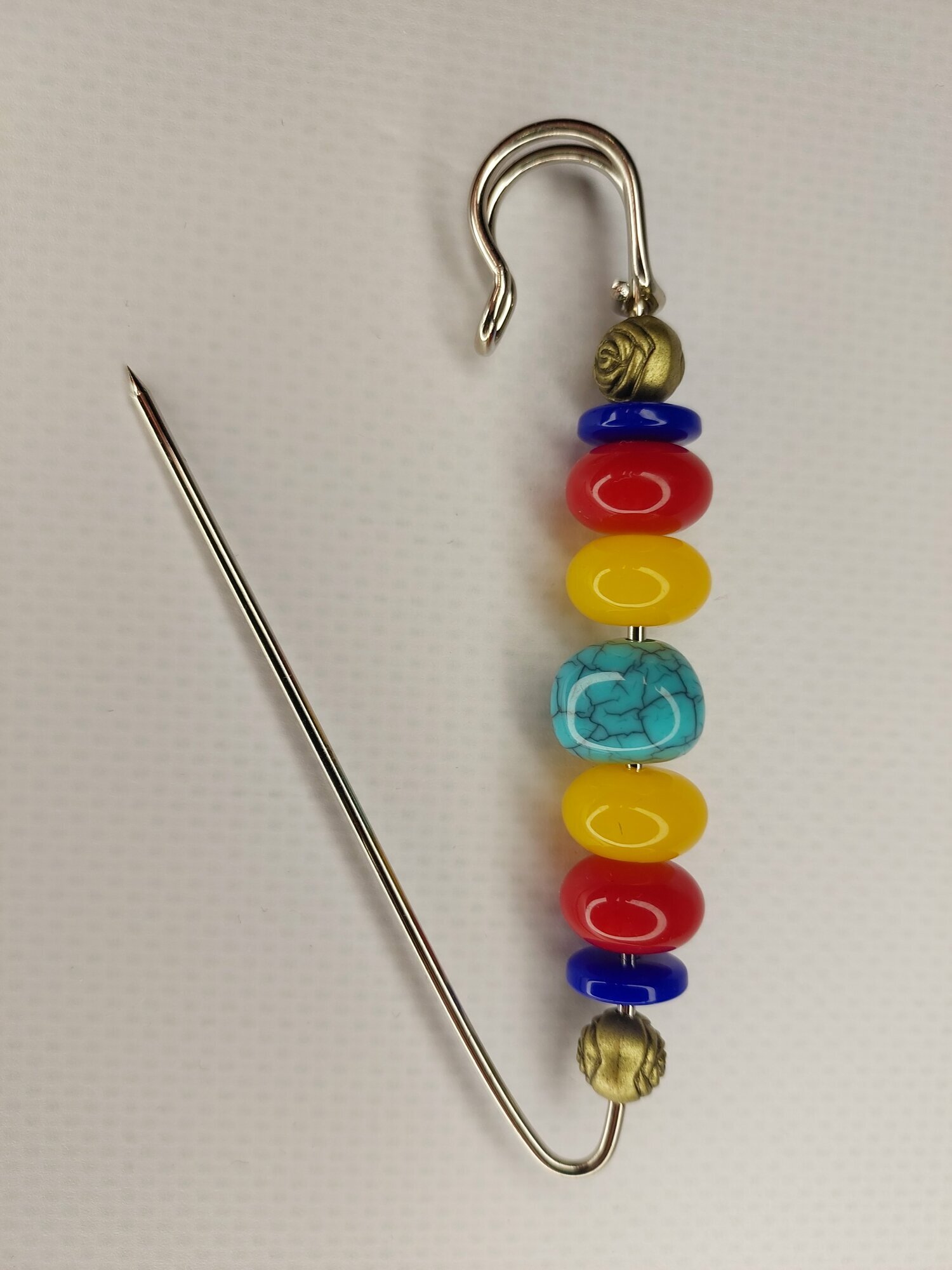 Цвет булавки-броши разноцветный что позволяет ей гармонично сочетаться с различными цветами одежды и аксессуаров.