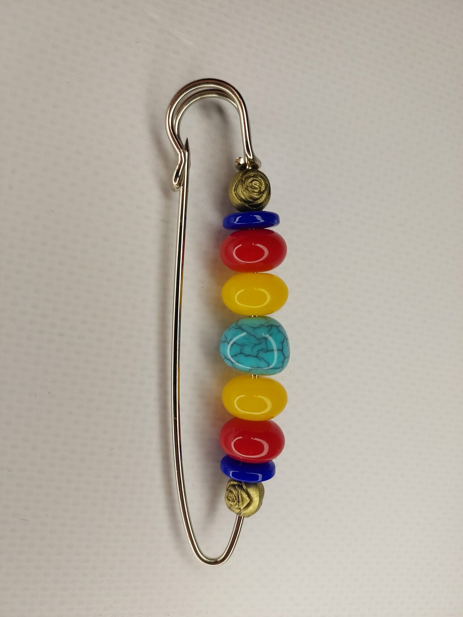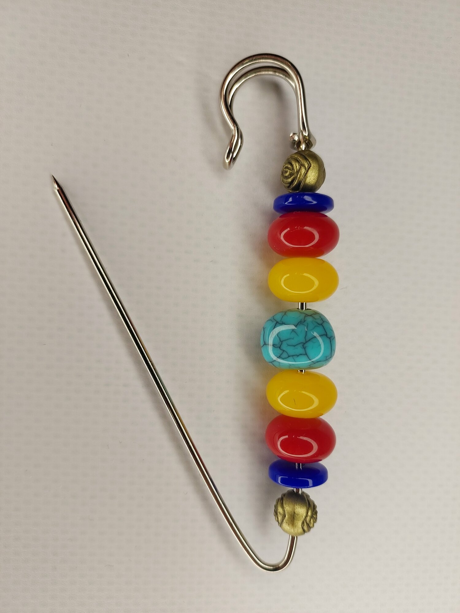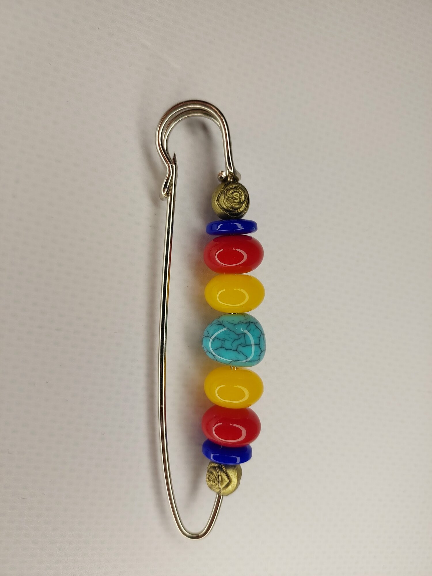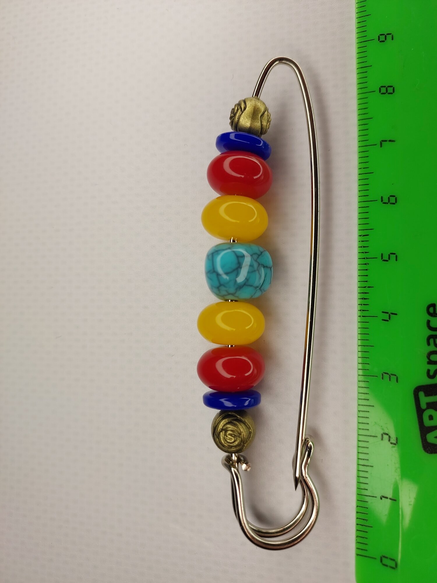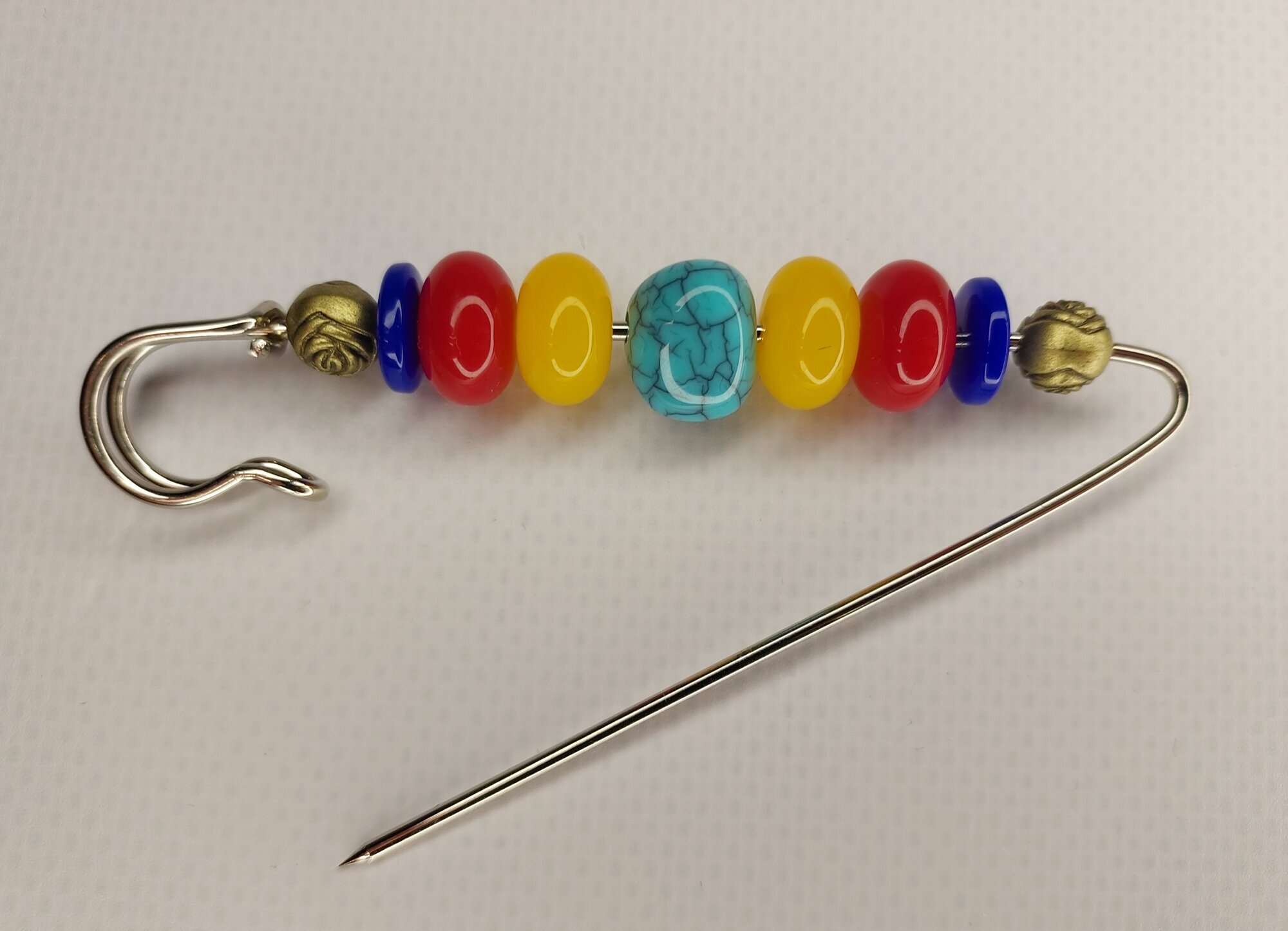 Цвет булавки-броши разноцветный что позволяет ей гармонично сочетаться с различными цветами одежды и аксессуаров.
