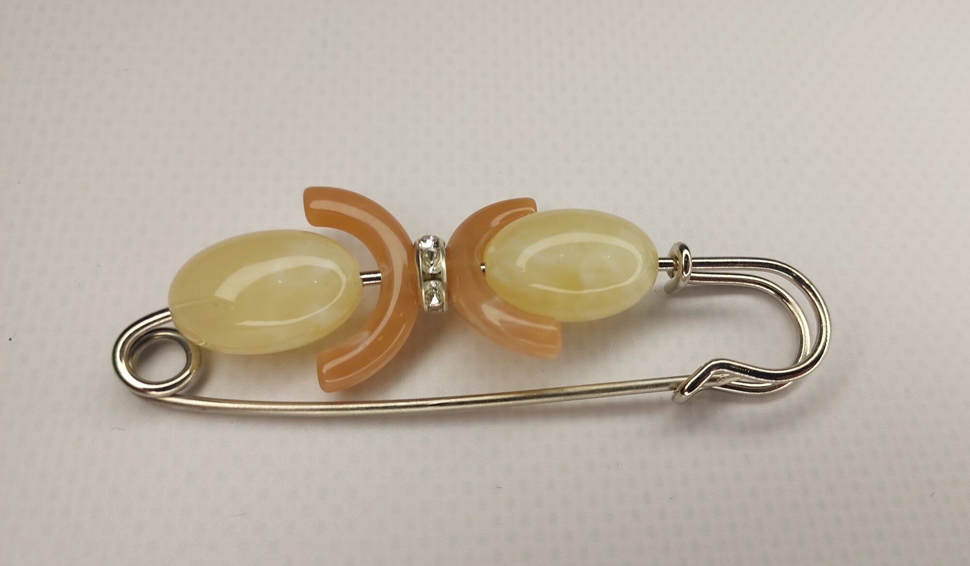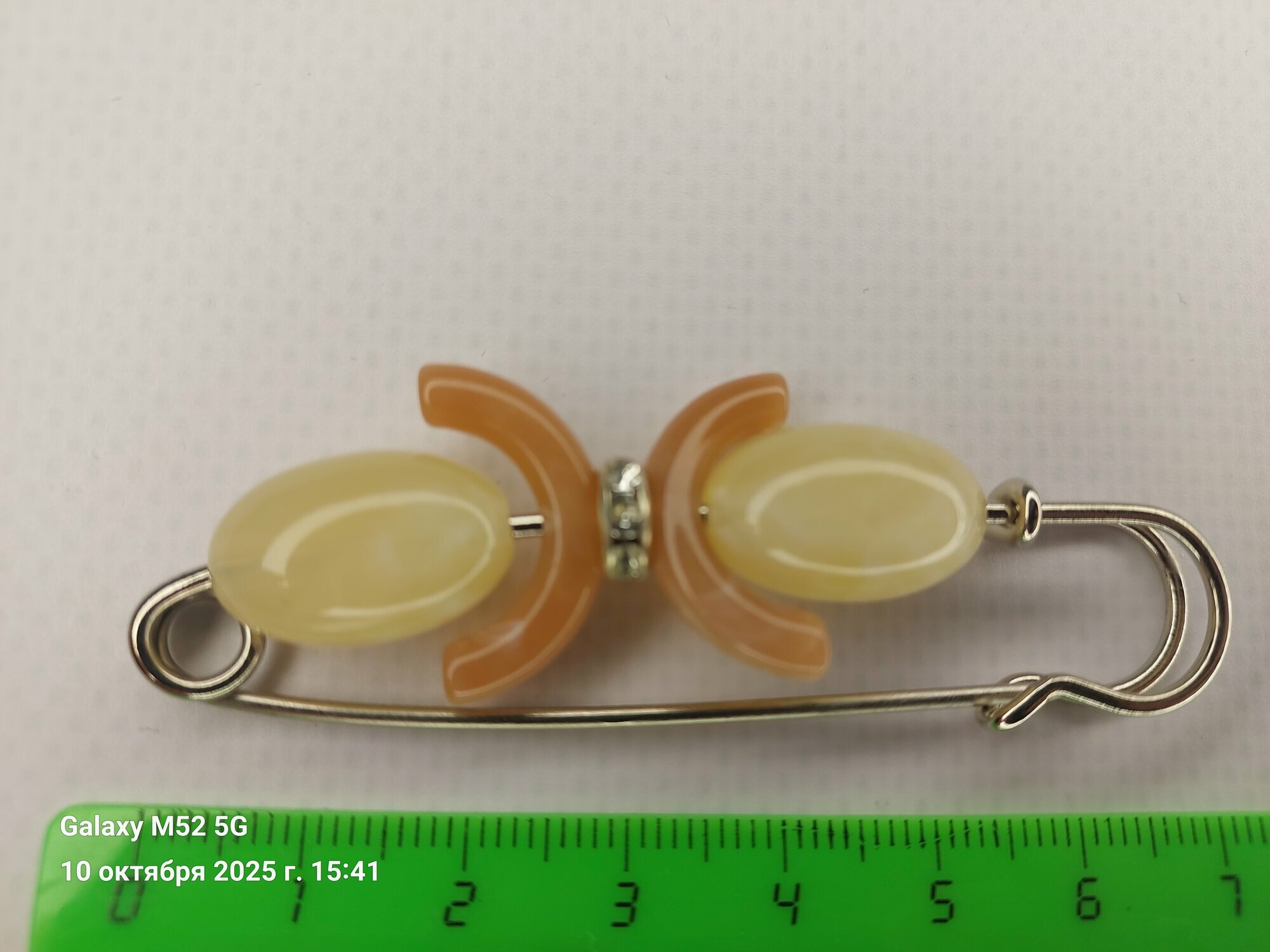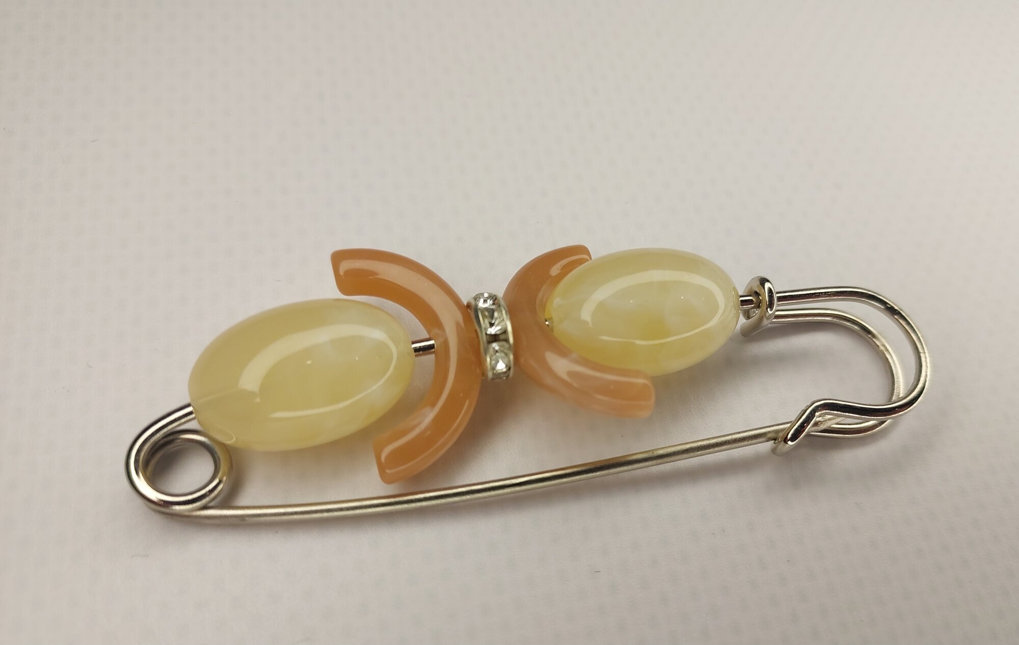 Брошь-булавка "Славутич" выполнена из бижутерного сплава, что гарантирует ее долговечность и сохранность внешнего вида на протяжении долгого времени. Вставка из синтетического агата придает украшению особый шарм и блеск.