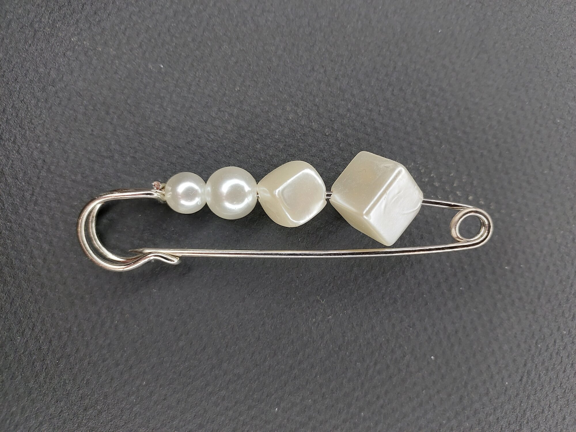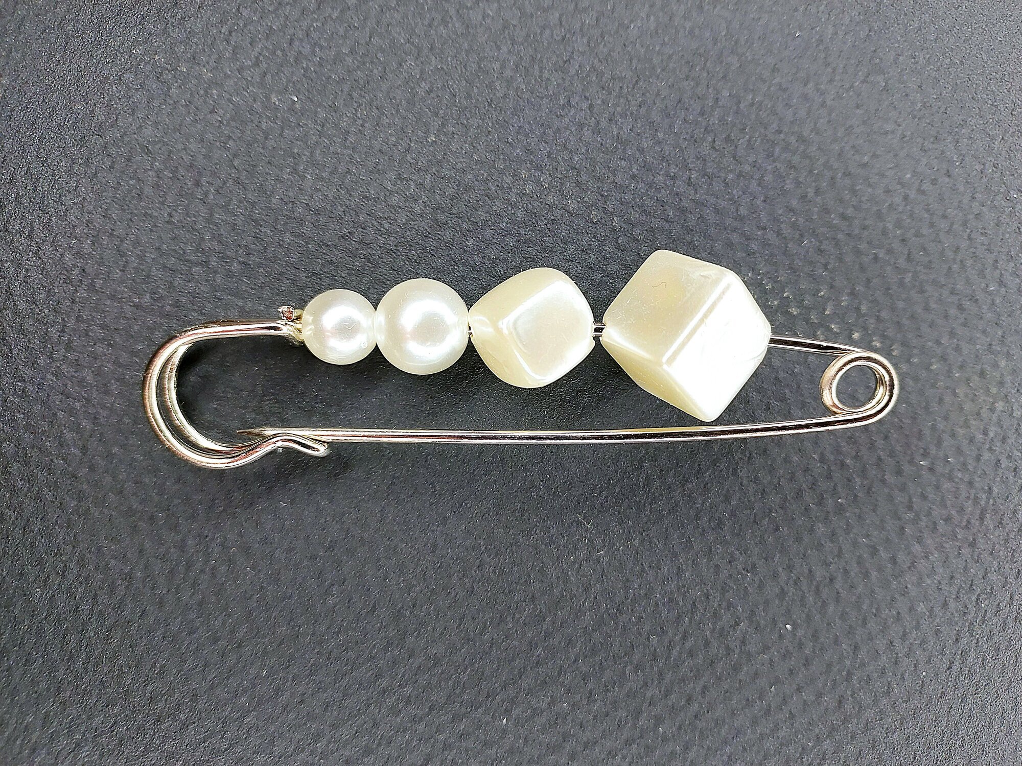 Брошь-булавка "Жемчужная роскошь" доступна в различных цветах, включая черно-белый, белый, бесцветный, серебряный и черный.