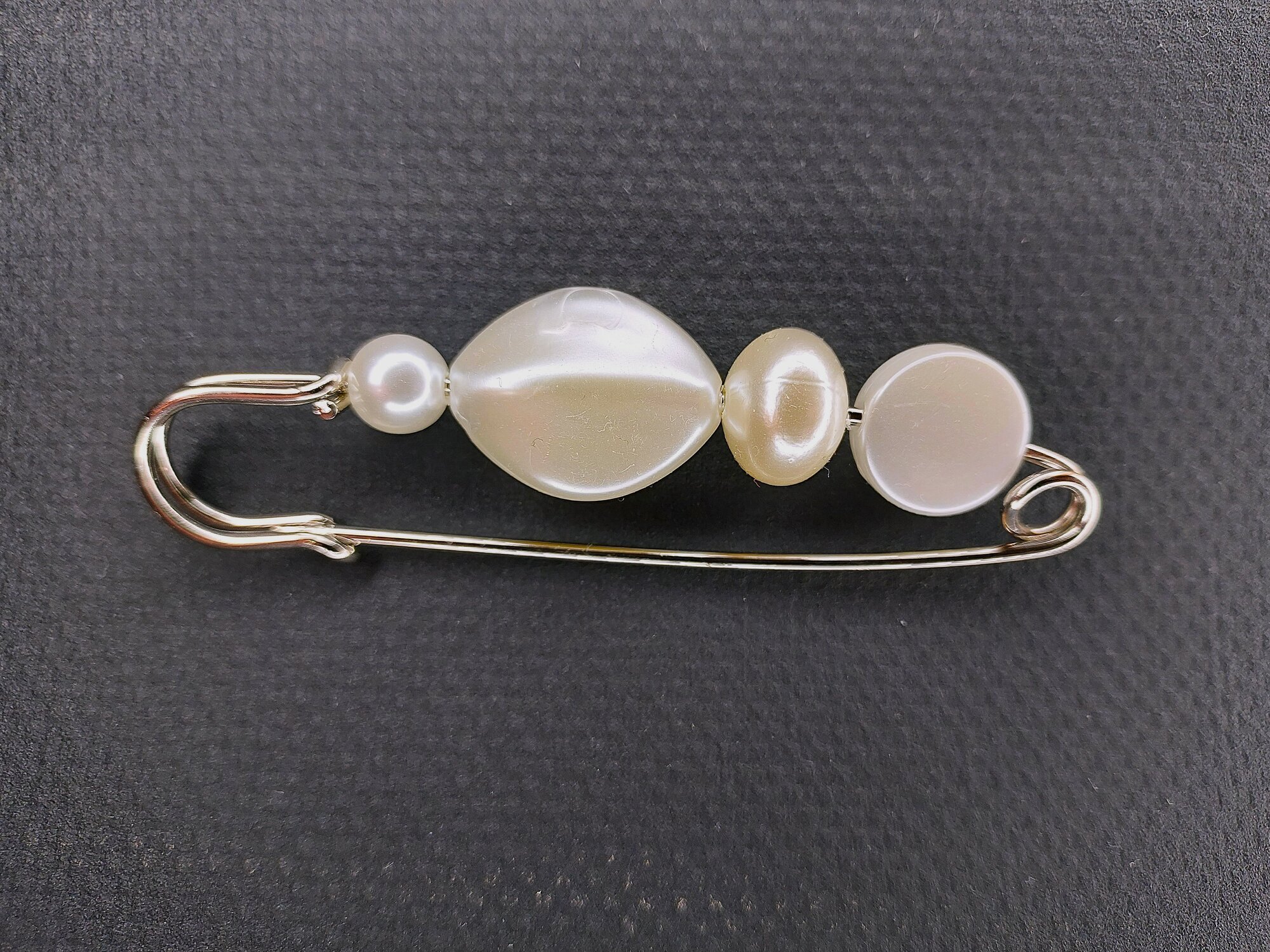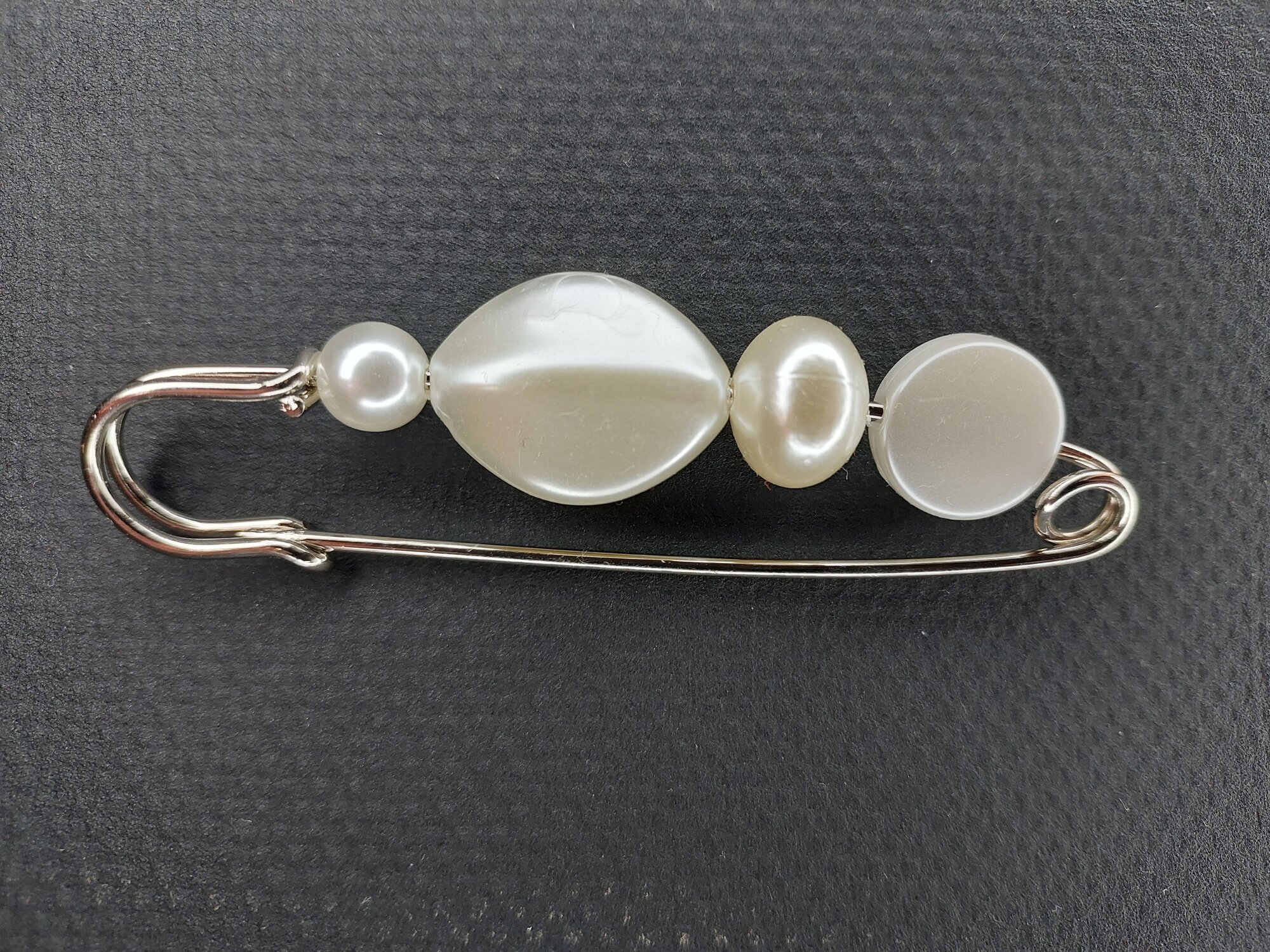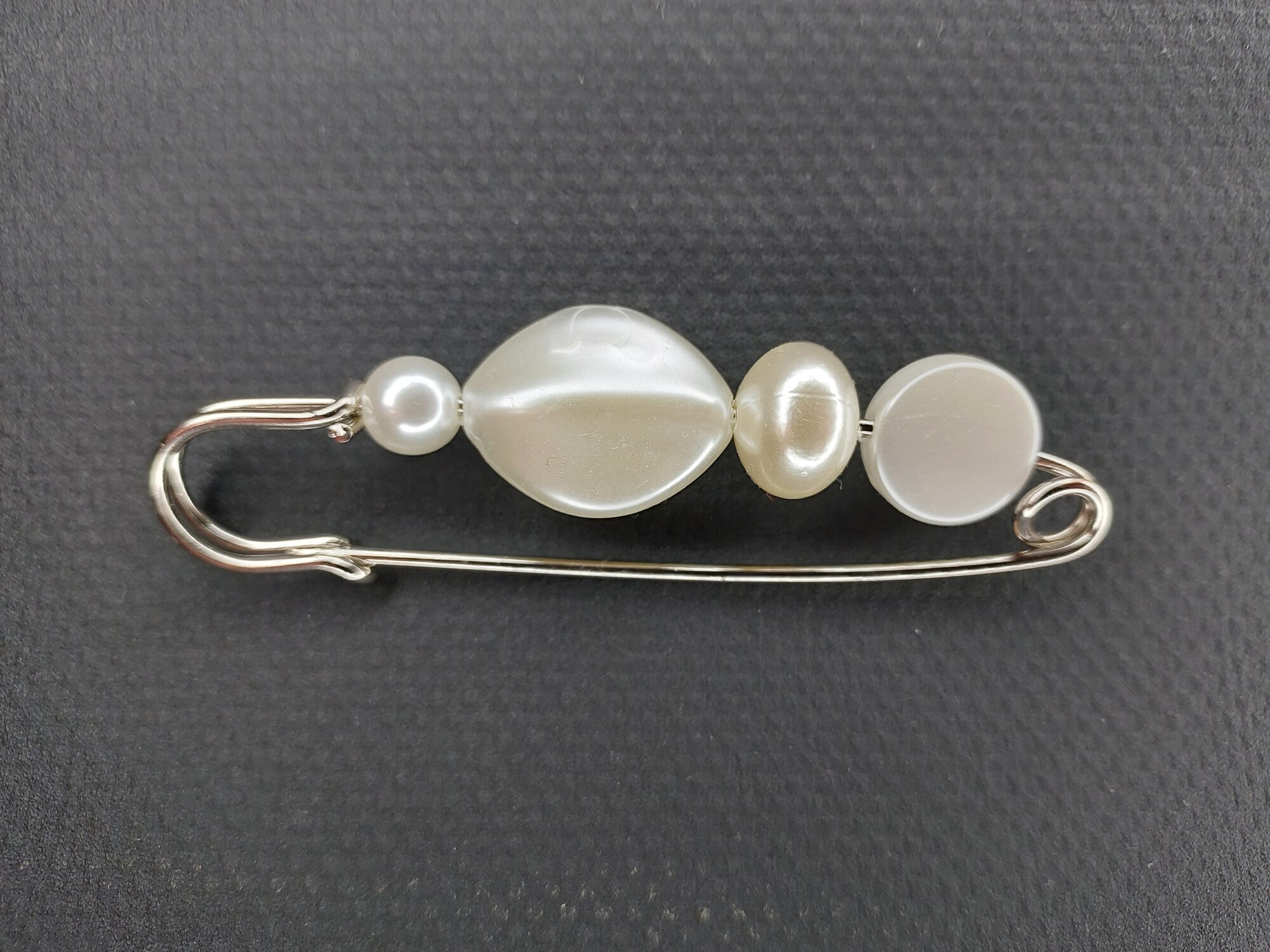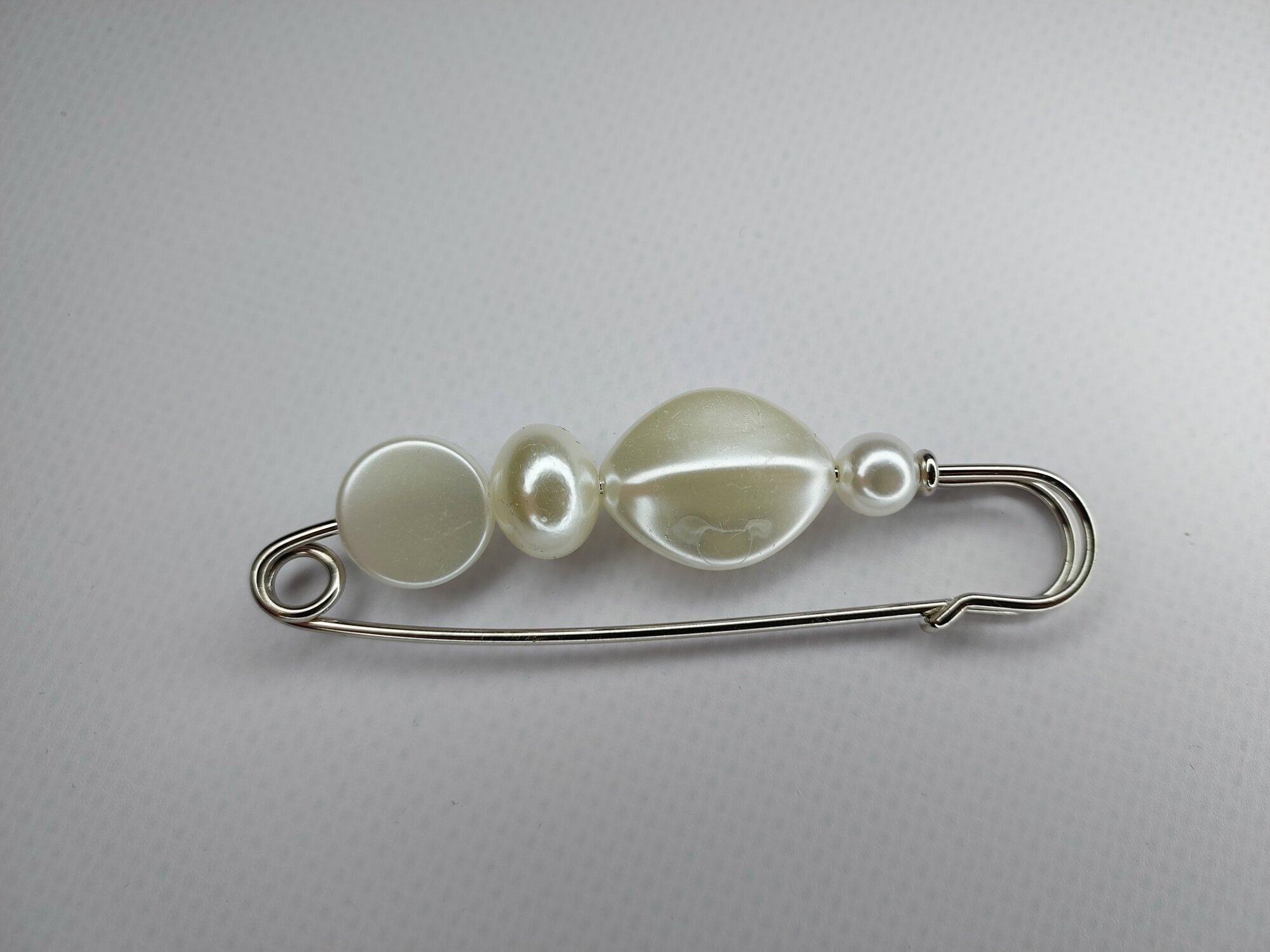 Брошь-булавка доступна в различных цветах, включая черно-белый, белый, бесцветный, серебряный и черный.