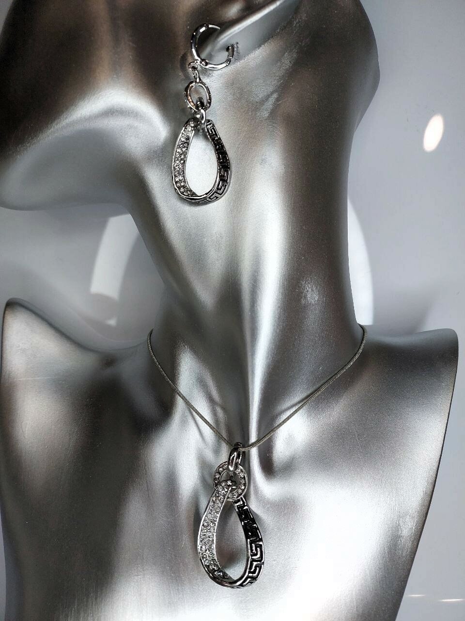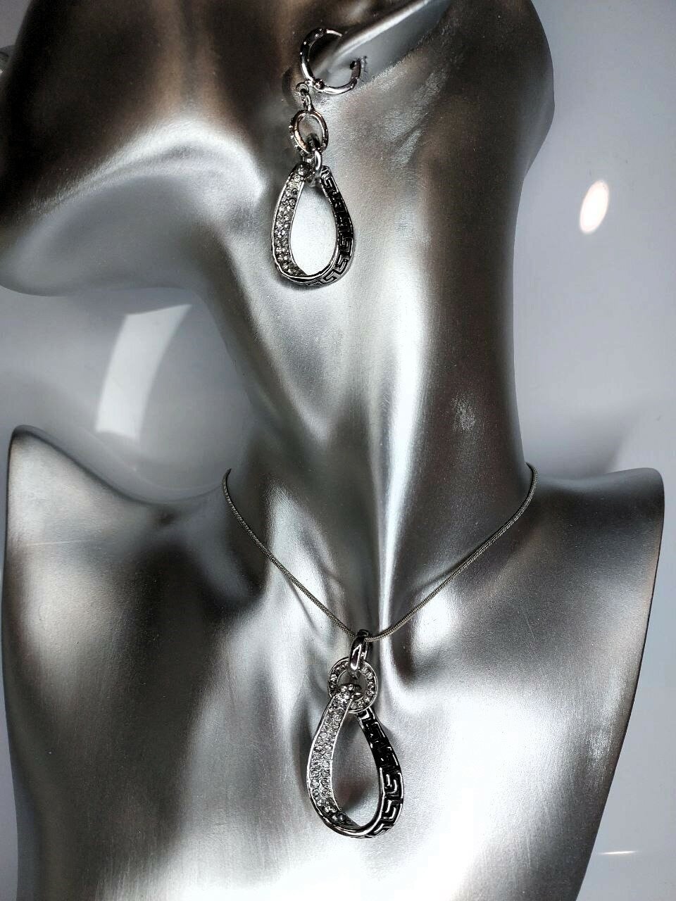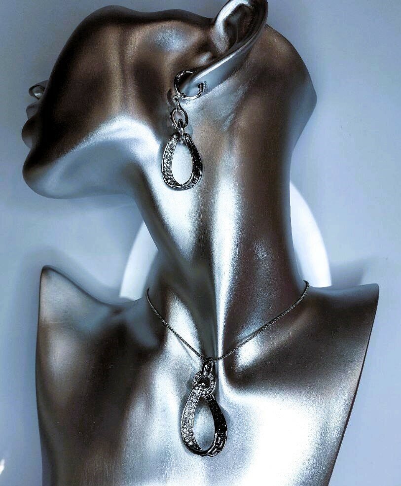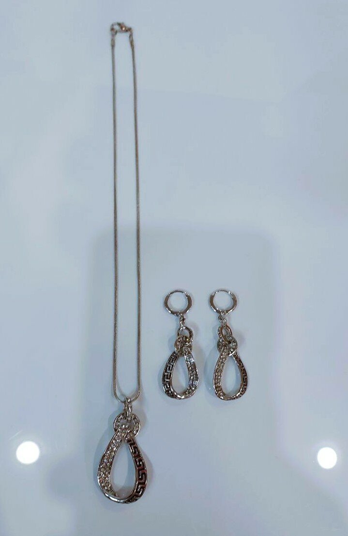 Цвет комплекта - белый, серебристый и серый, что позволяет сочетать его с различными нарядами и аксессуарами.
