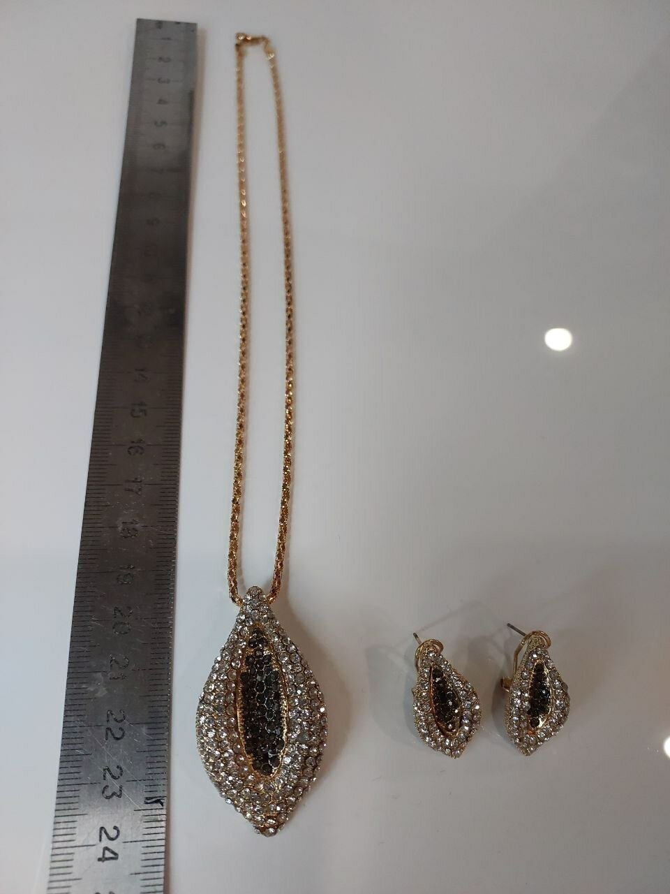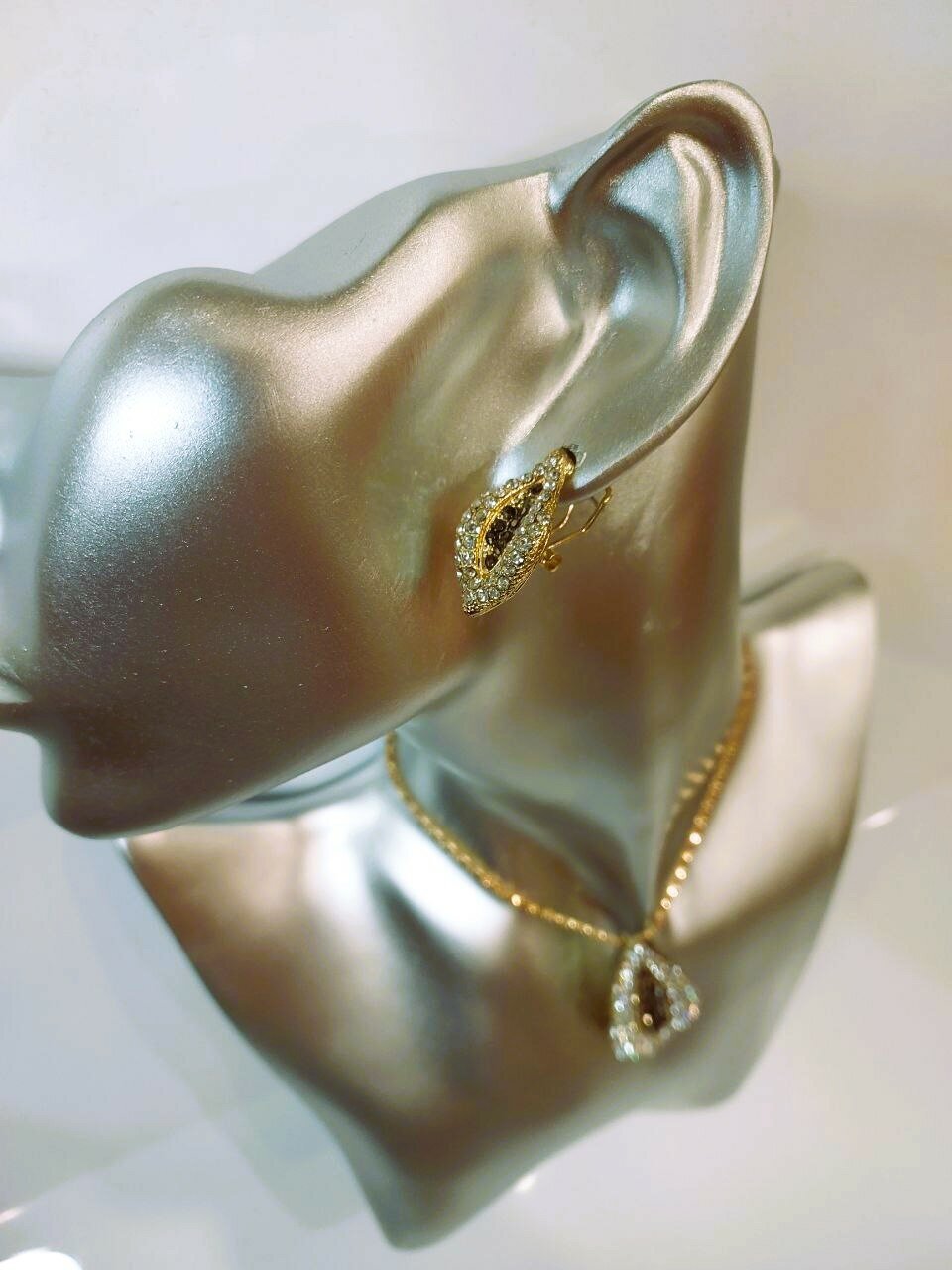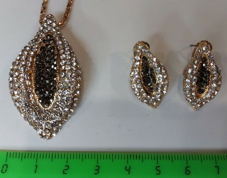 Серьги и подвеска украшены стразами, что придает изделиям особый блеск и шик.