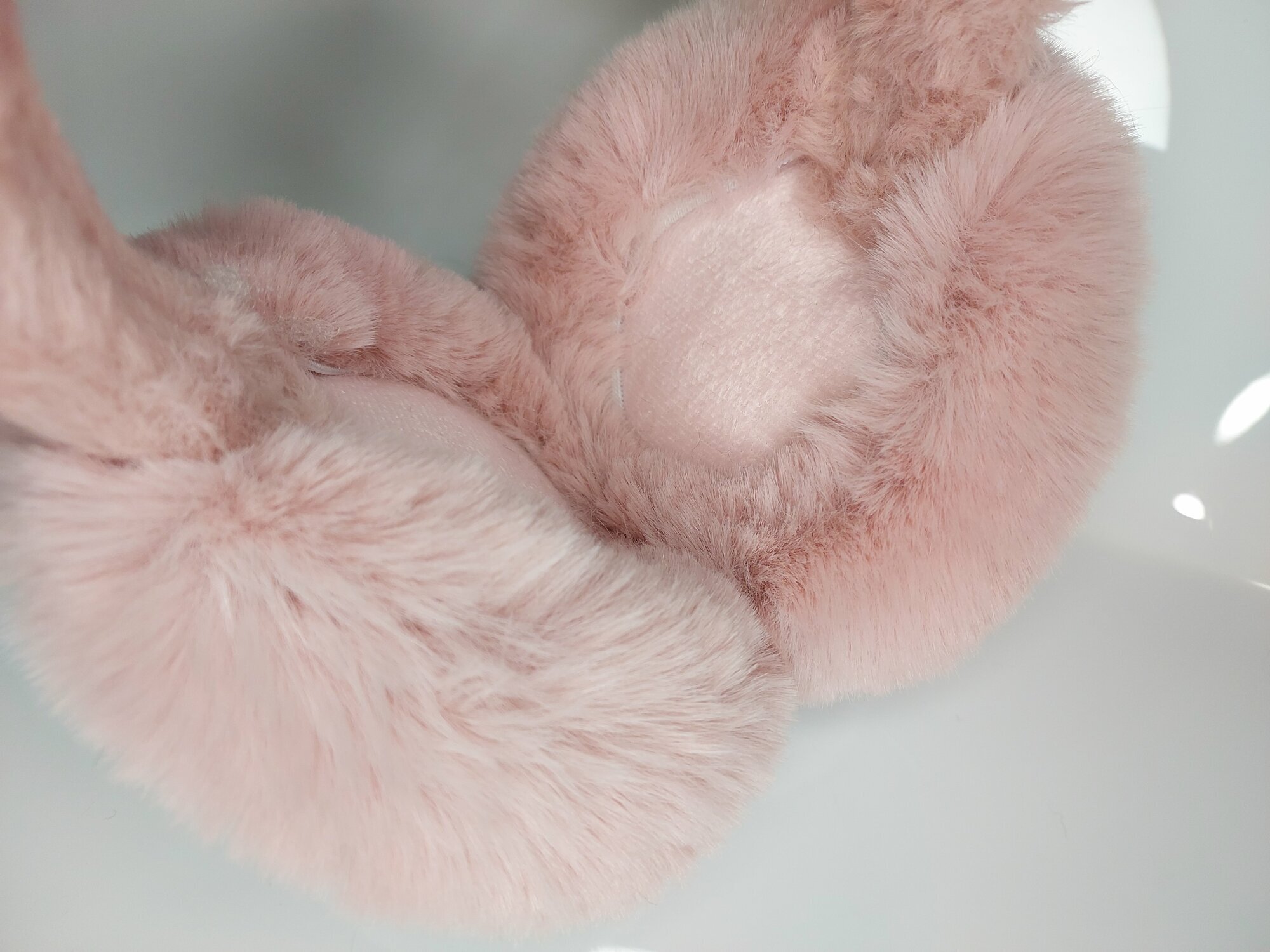 Наушники для занятия спортом. Меховые теплые уютные пастельно-розовые наушники, демисезон/зима, мультиколор