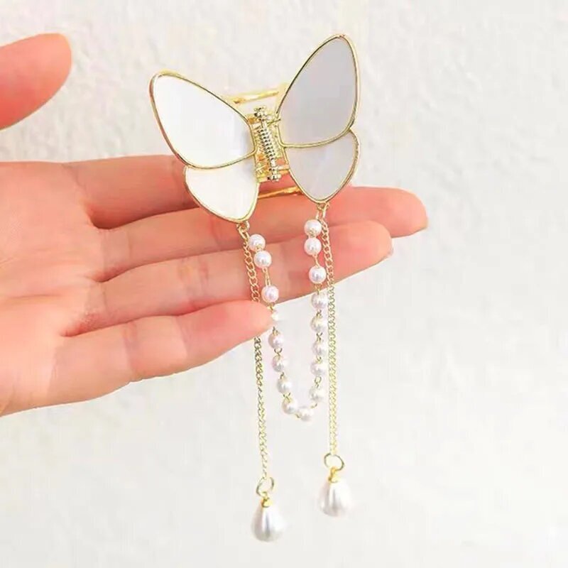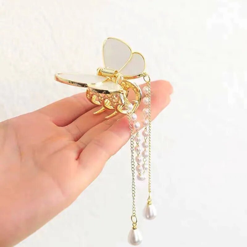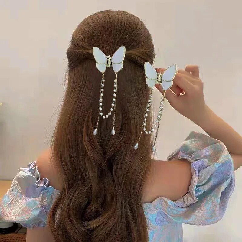 Перламутровый краб-бабочка для волос с кисточками: стильный аксессуар.