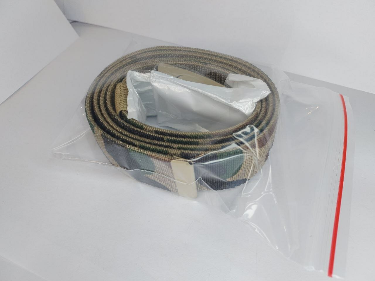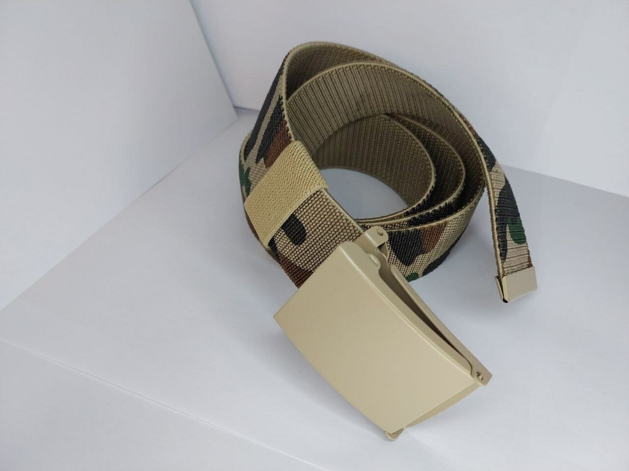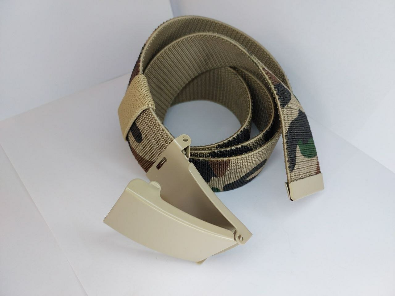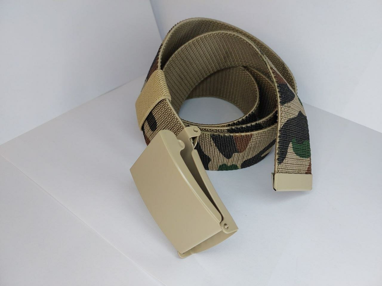 Ремень имеет светлый камуфляжный цвет, который подойдет как для мужчин, так и для женщин.