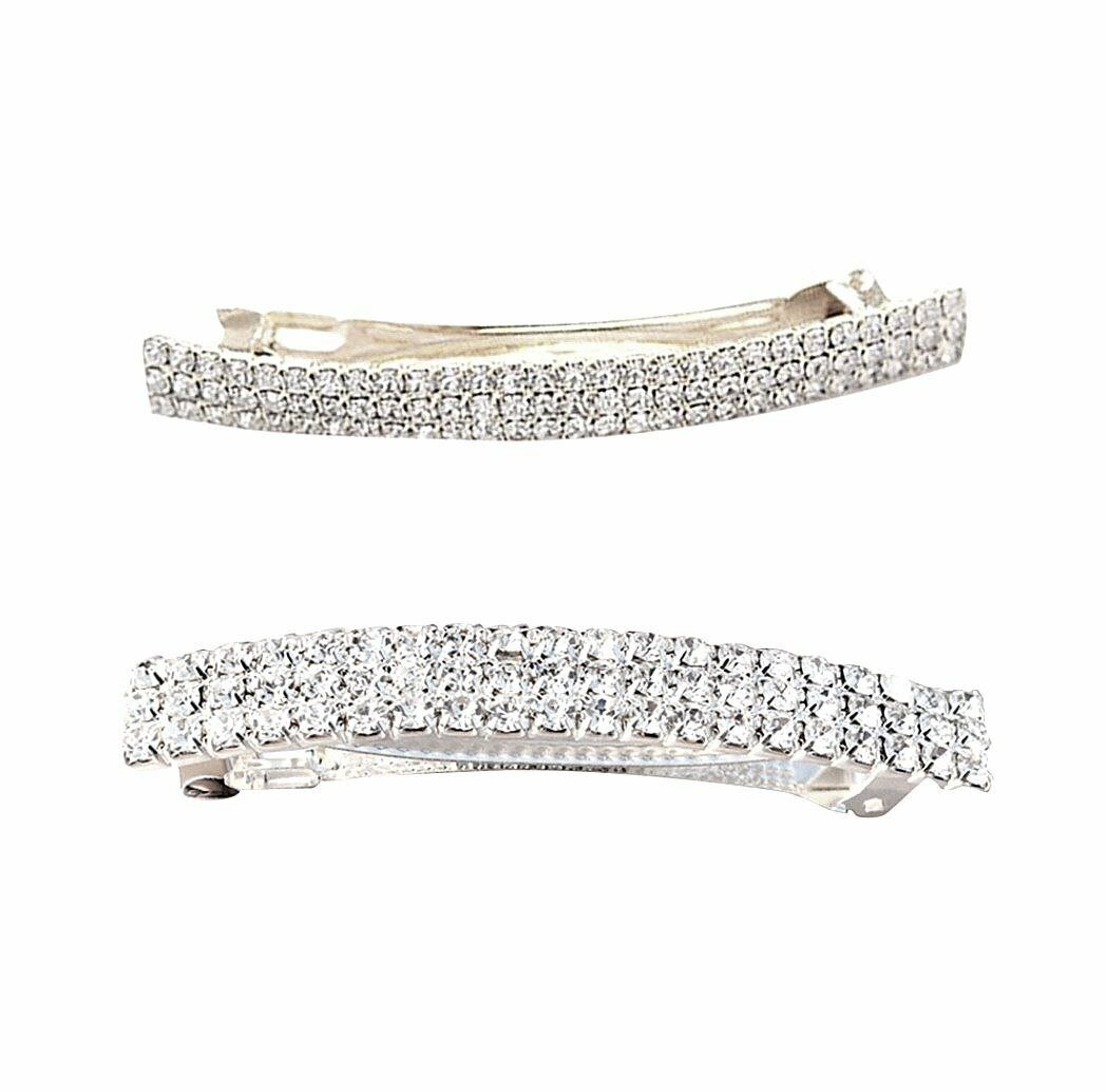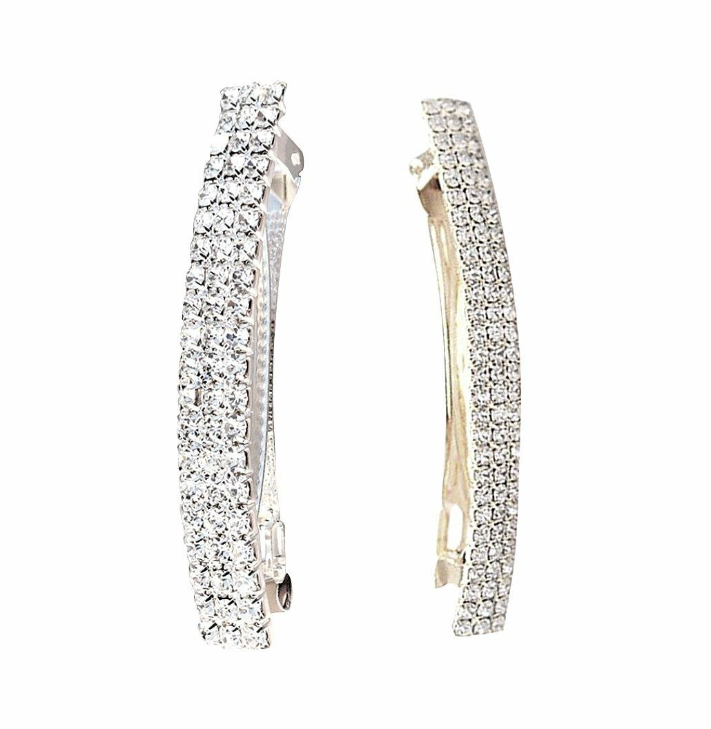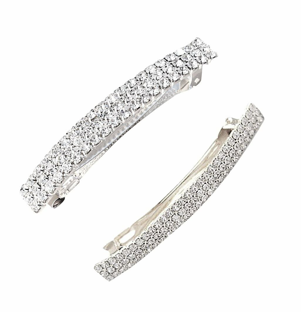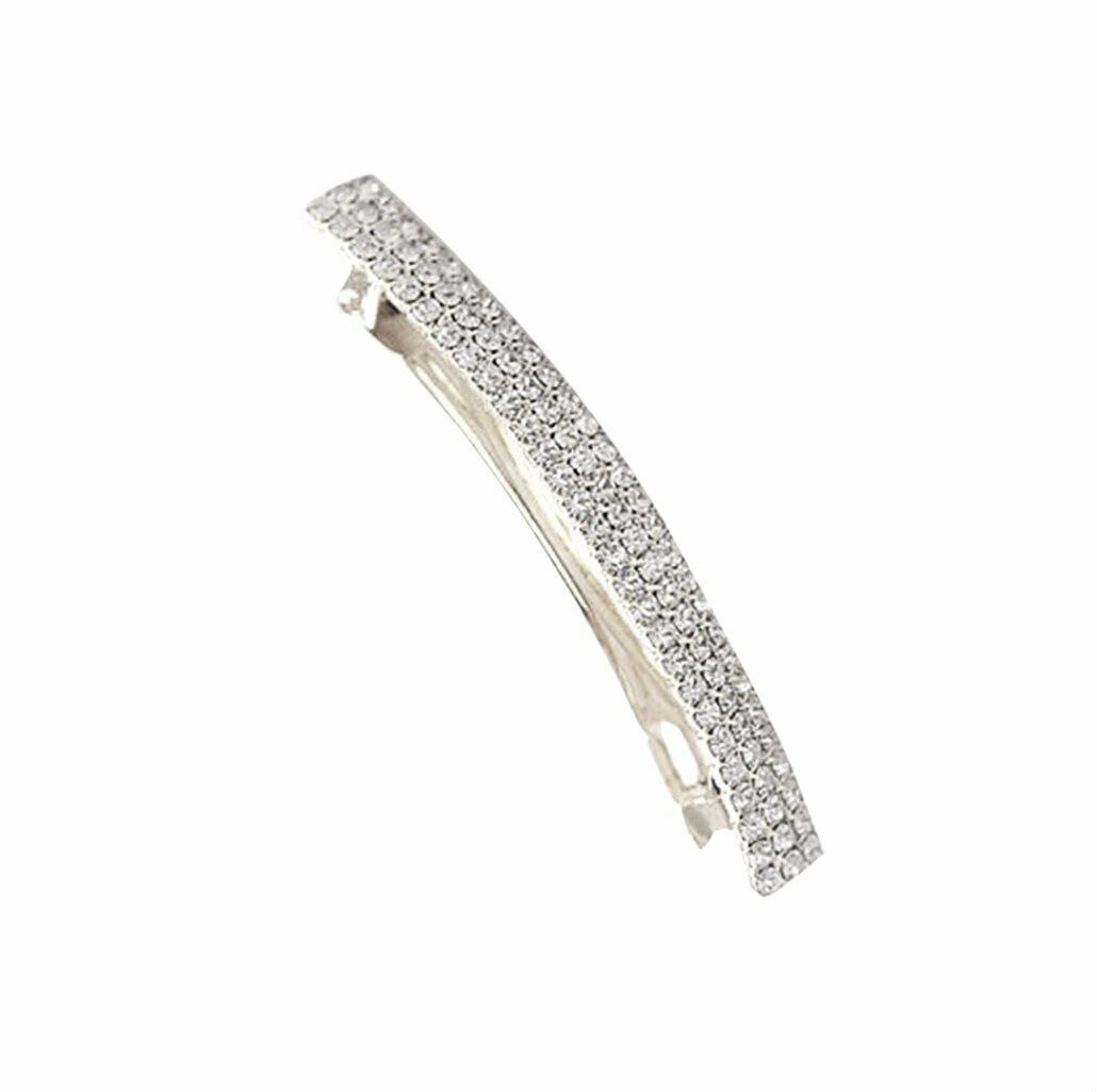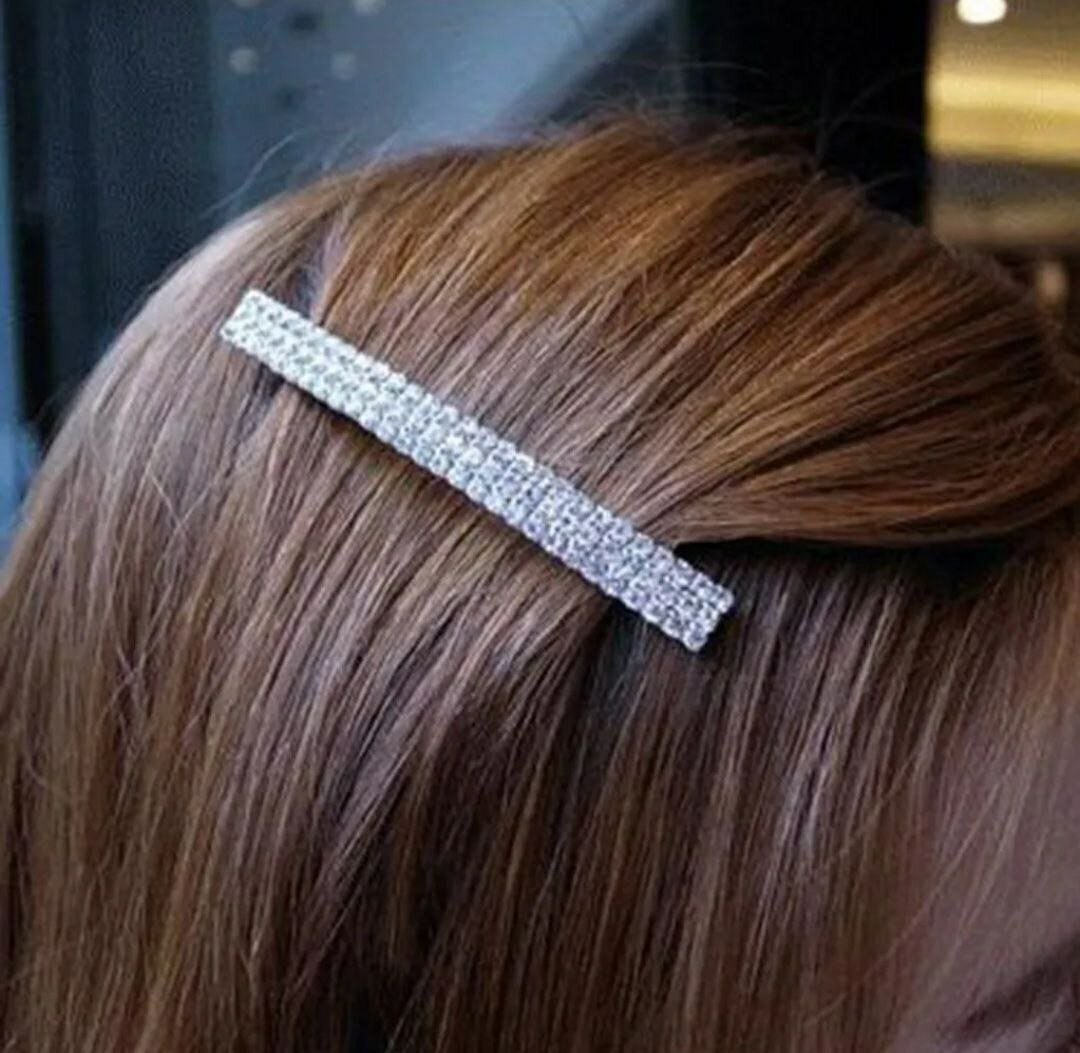 Заколка украшена стразами в три ряда, что придает ей роскошный и стильный вид. Цвет заколки – серебристый, что делает ее подходящей для любого образа и цвета волос.