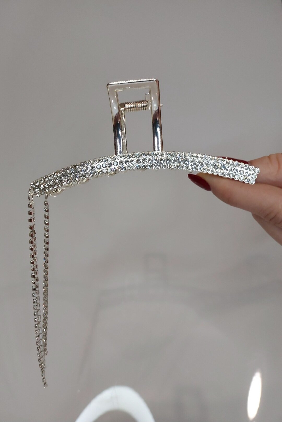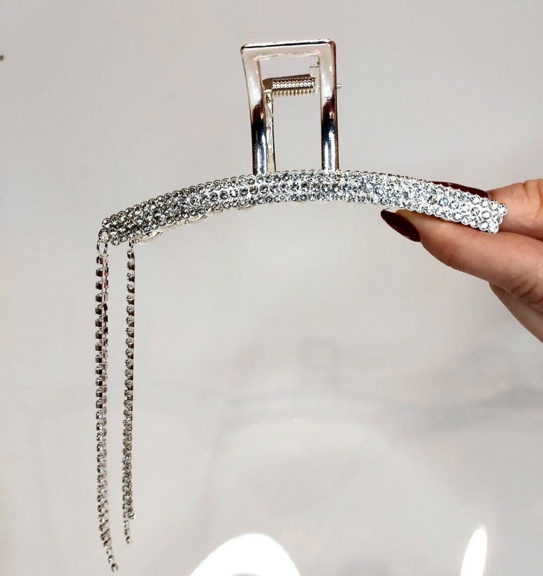 Заколка украшена стразами, которые придают ей роскошный и элегантный вид. Стразы расположены на "цыпочке" аксессуара, что делает его еще более привлекательным и заметным.