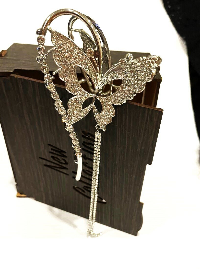 Бабочка петля с кристаллами - это не только украшение для волос, но и стильный аксессуар. Заколка легко крепится к волосам и не вызывает дискомфорта при ношении. Благодаря своей форме, она подходит для любого типа волос.