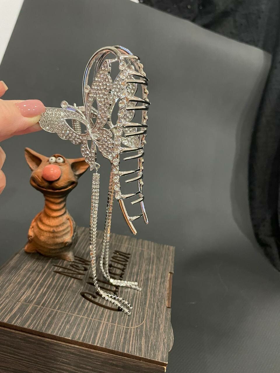 Преимущества этой заколки очевидны. Она прочная, надежная и легко крепится к волосам. Кроме того, она имеет красивый дизайн. Если вы хотите выглядеть стильно и уверенно, то эта заколка-краб с бабочкой и стразами - отличный выбор для вас.