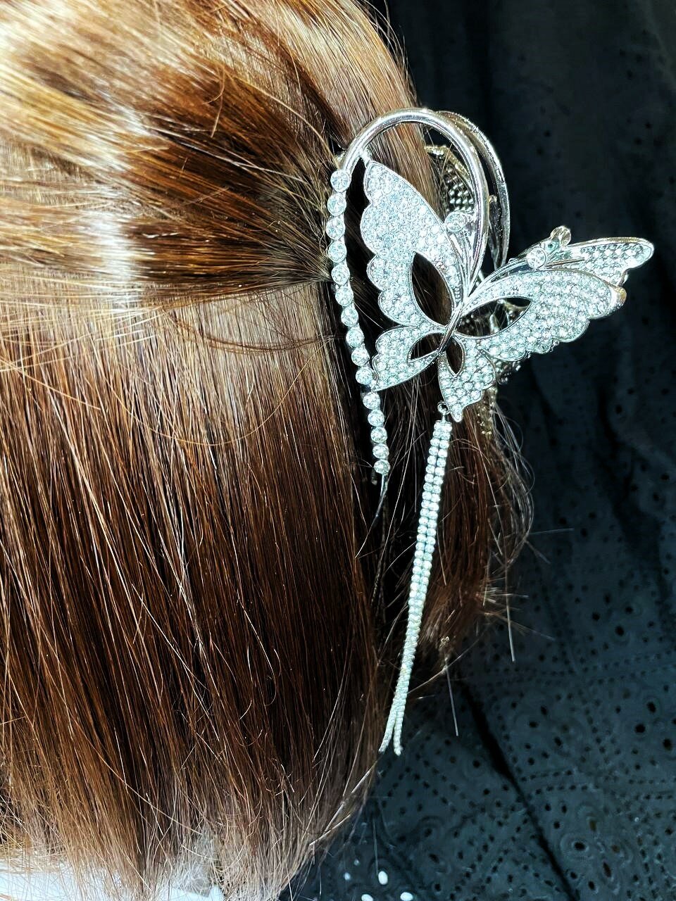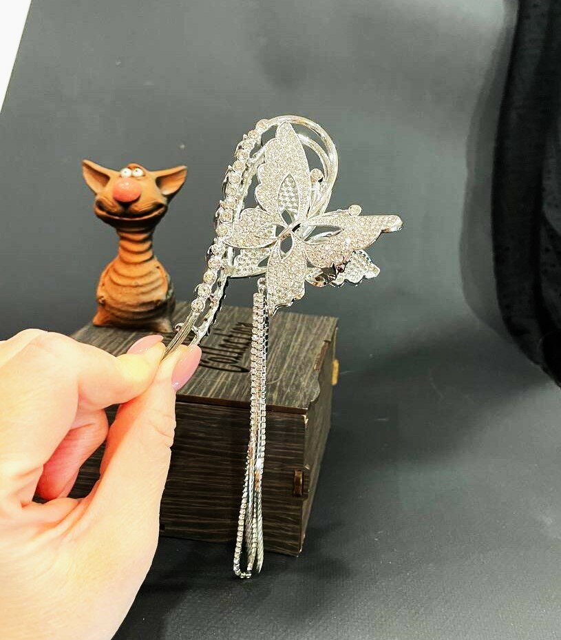 Заколка - краб с бабочкой петлей и стразами - это идеальное решение , обеспечивает прочность и надежность в использовании. Выполнена из высококачественных материалов, которые не только выглядят красиво, но и обеспечивают долговечность.