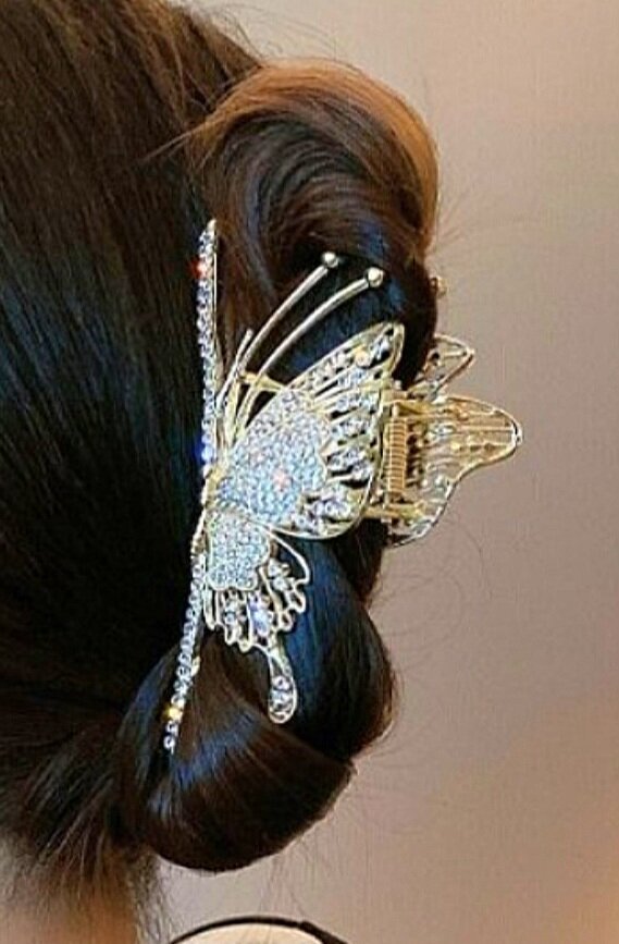 Заколка краб "Бабочка" со стразами: элегантная и надежная