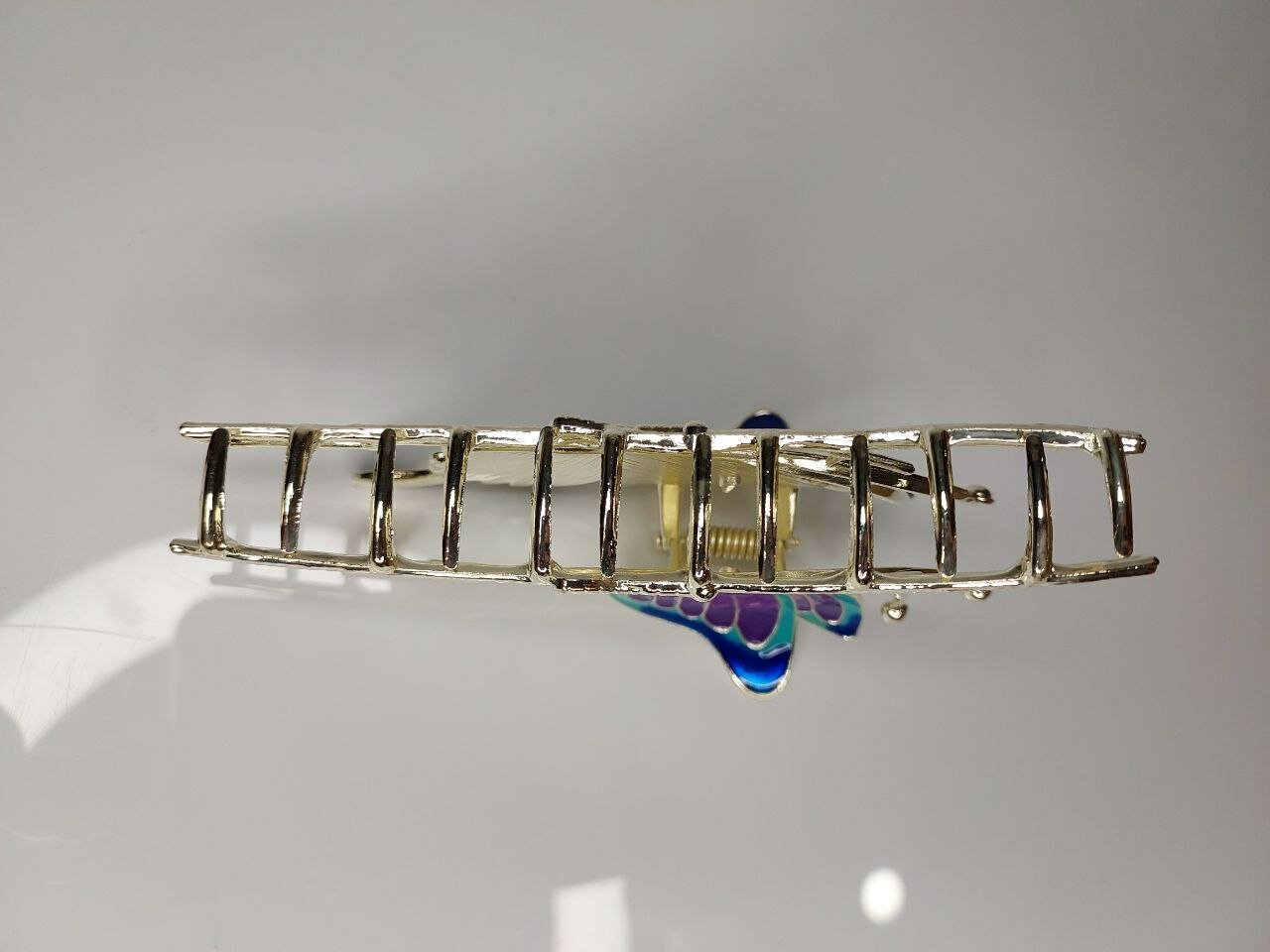 Заколка выполнена из металла, что обеспечивает ее прочность и долговечность. Она надежно держит даже самые тяжелые волосы, не позволяя им распадаться и создавая аккуратную прическу.