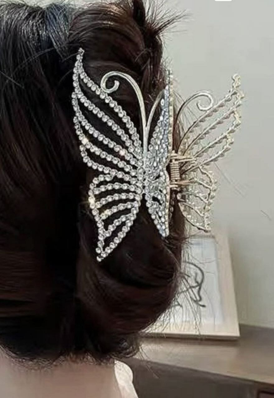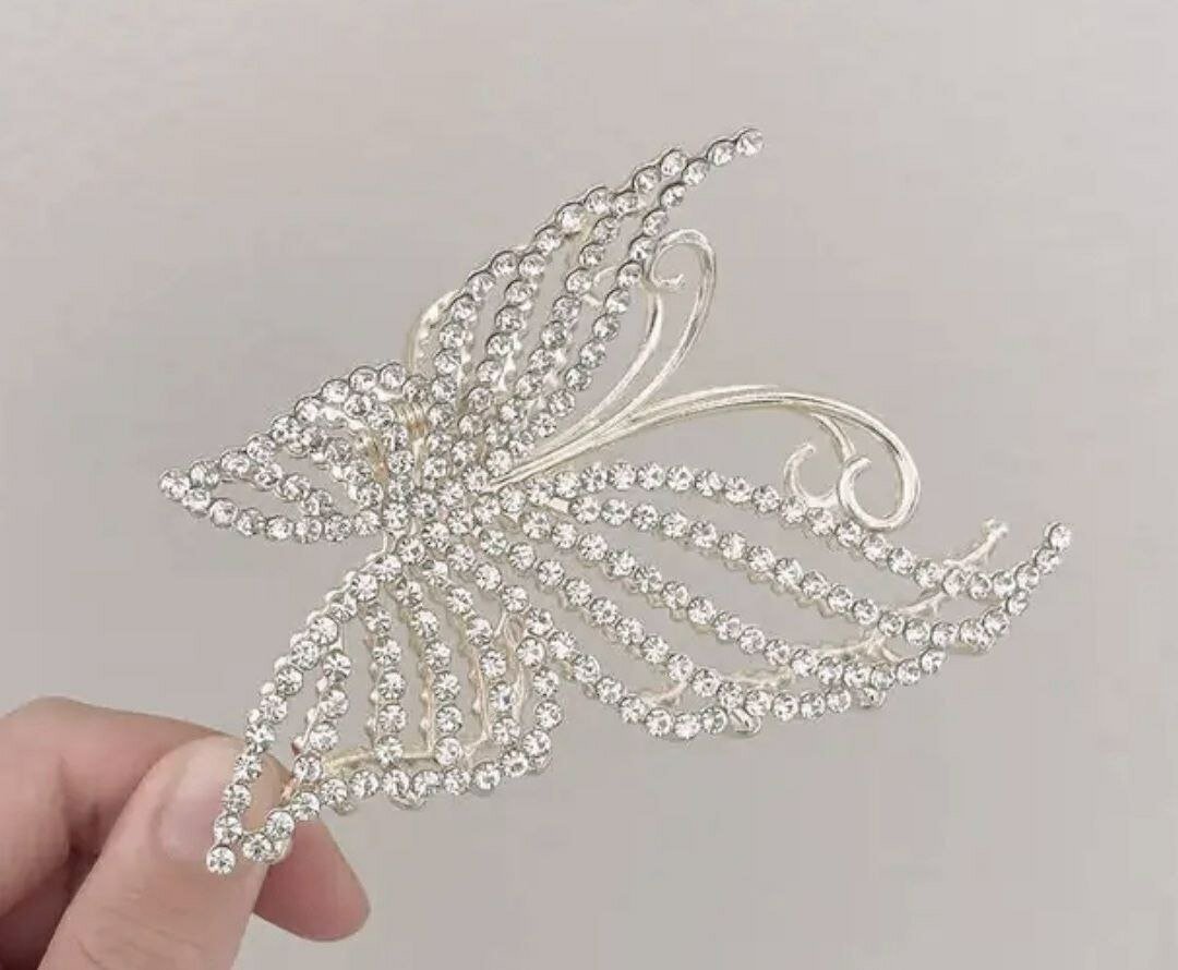 Заколка-краб "бабочка" инкрустированная стразами: стильный аксессуар для волос
