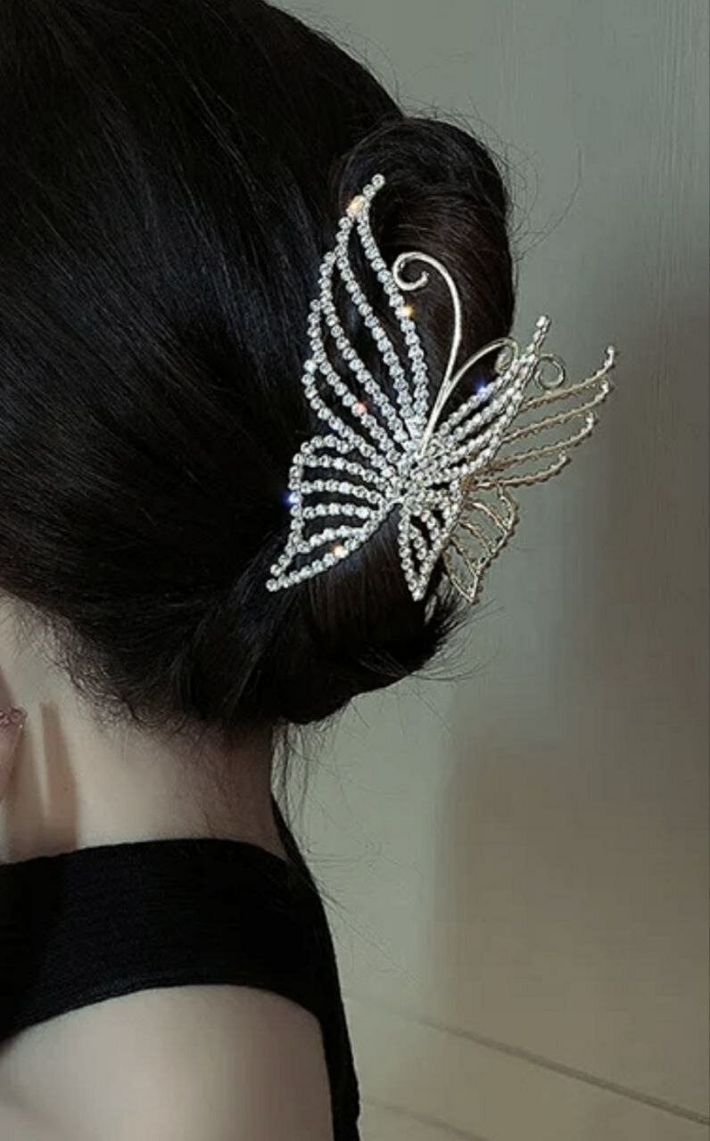 Выбирая заколку-краб "бабочка" инкрустированную стразами, вы получаете стильный аксессуар для волос, который поможет создать легкое, воздушное и блестящее настроение.