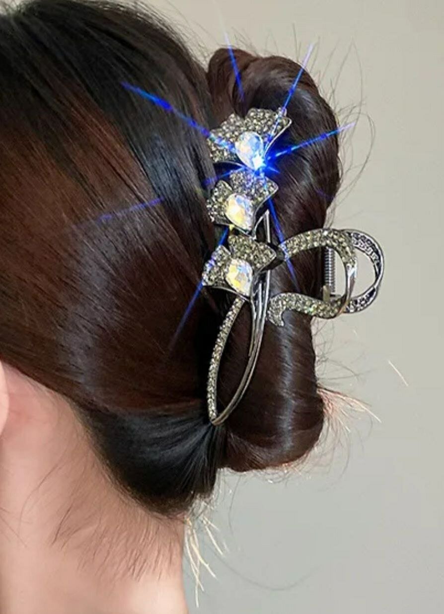 Заколка - краб. Букет цветов – это идеальный аксессуар для создания образа. Этот стильный и элегантный аксессуар выполнен из высококачественного металла черного цвета, что придает ему изысканность. Заколка украшена букетом из цветов и страз, которые добавляют ей неповторимый шарм.