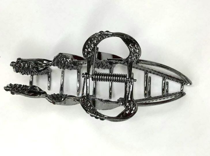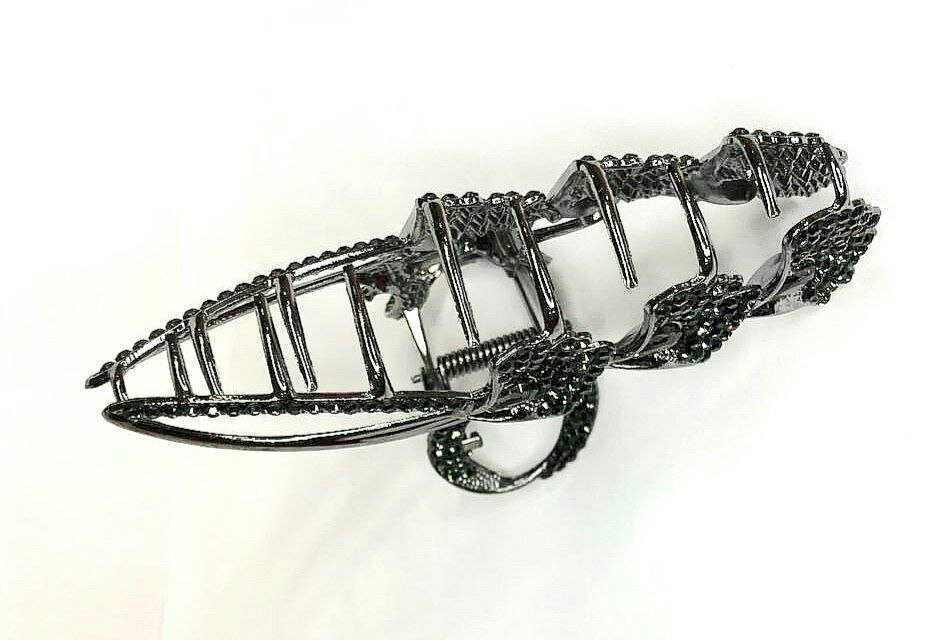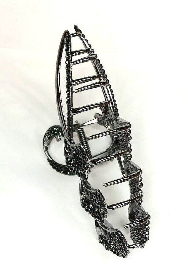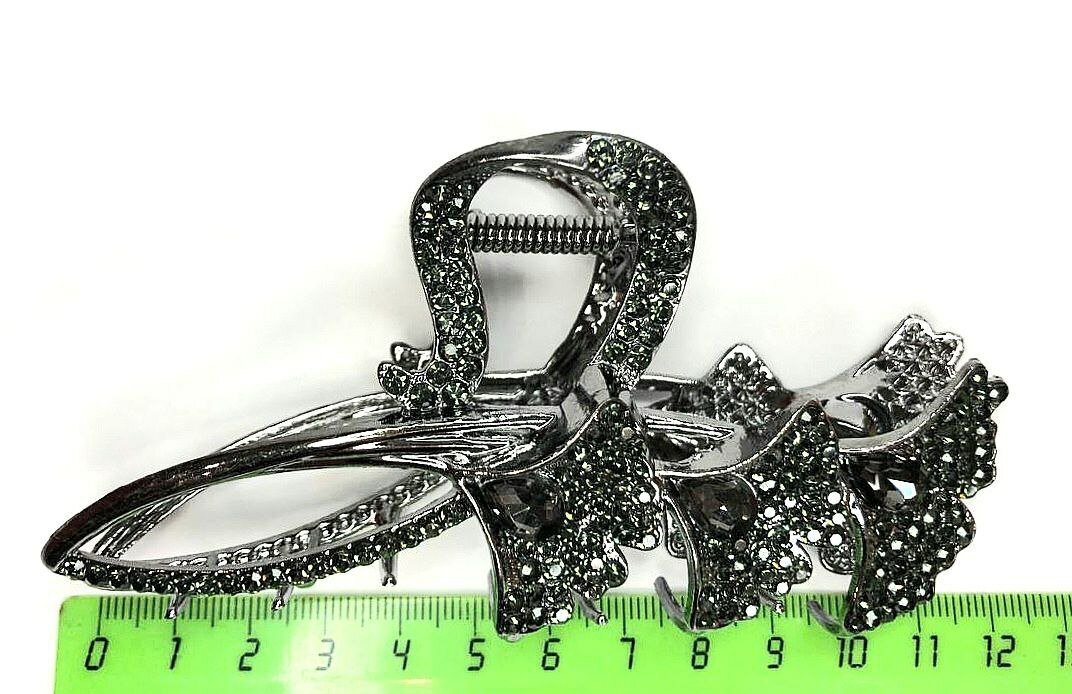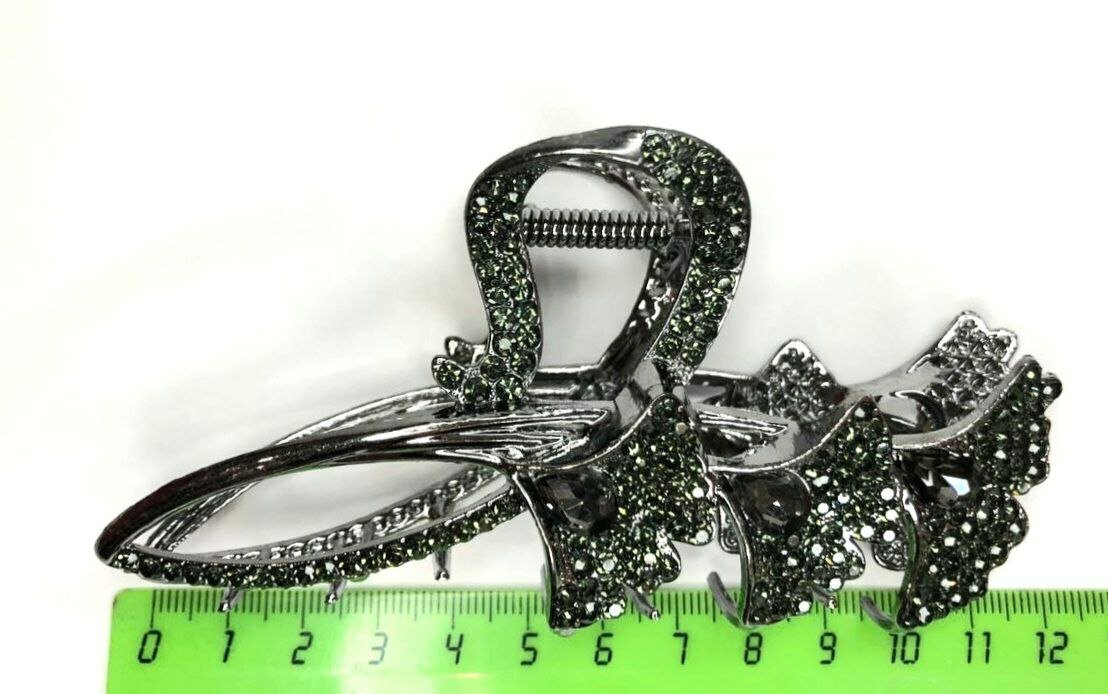 Заколка-краб. Букет из цветов со стразами. Металл. Усиленная. Цвет черный