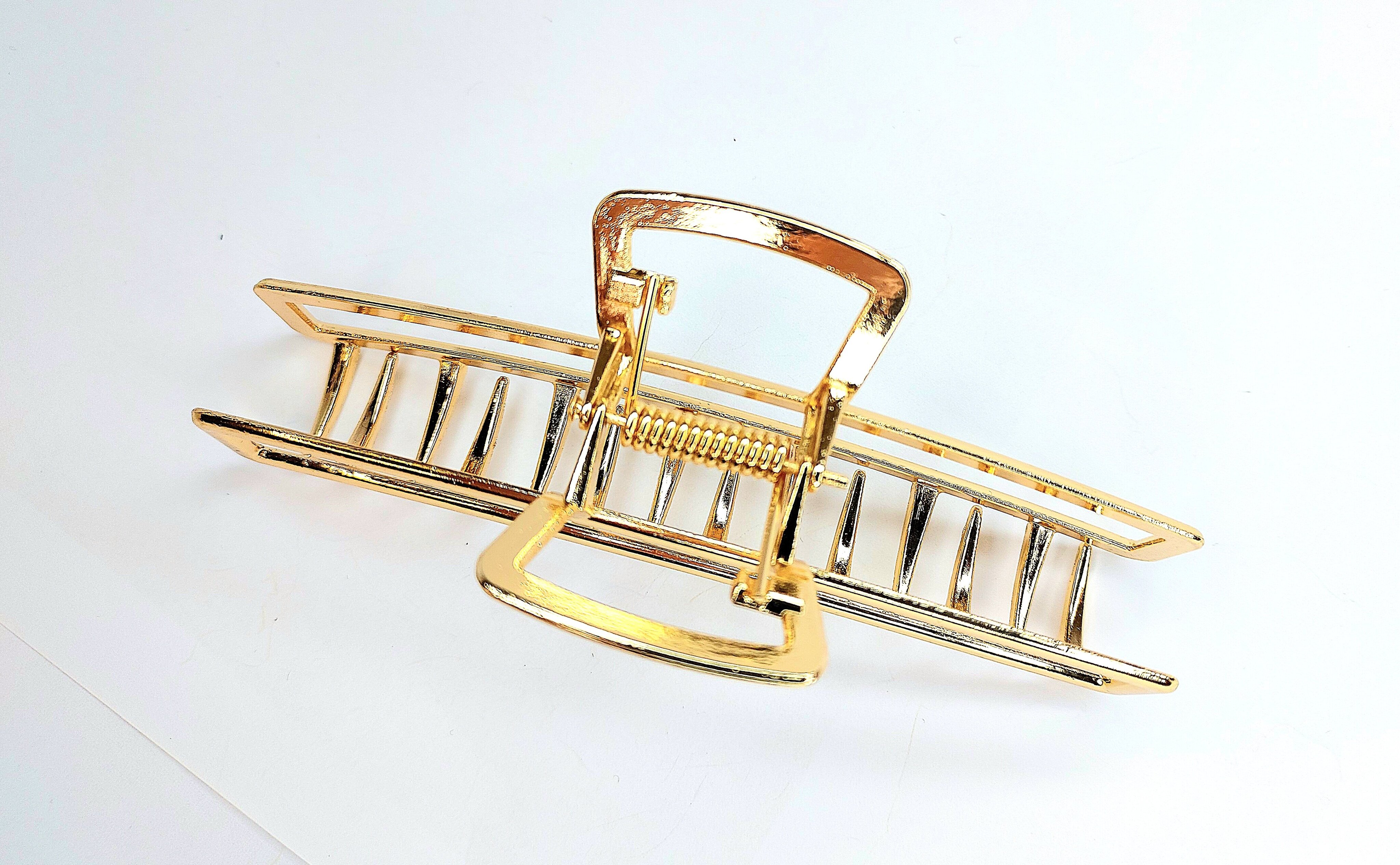 Заколка-краб для волос имеет золотистый цвет, который придаст вашему образу элегантности и шика.