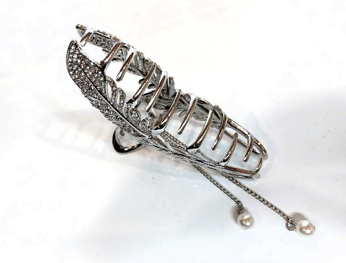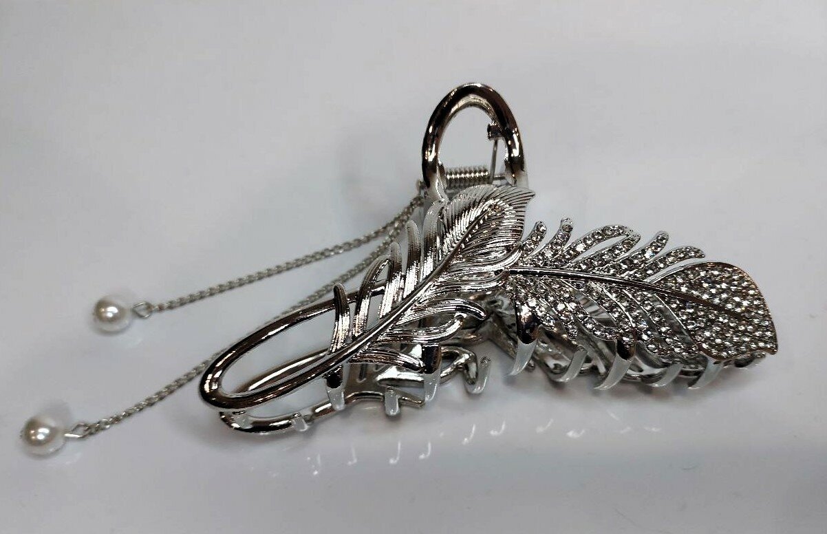 Заколка-краб для волос "Перо" - стильный аксессуар для создания разнообразных причесок. Выполнена в серебристом цвете, она станет ярким акцентом вашего образа и гармонично сочетается с любым нарядом.