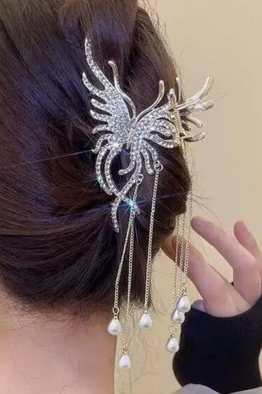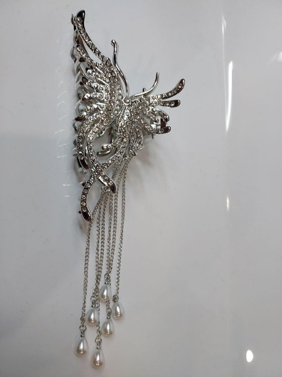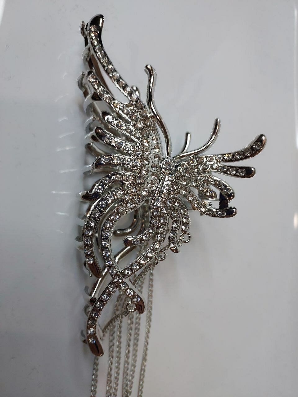 Заколка-краб для волос "Пушистая бабочка" со стразами - стильный аксессуар для создания неповторимого образа.