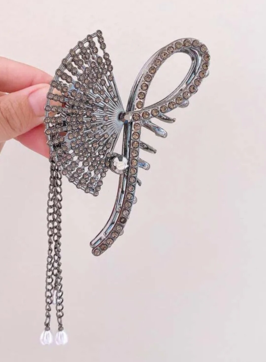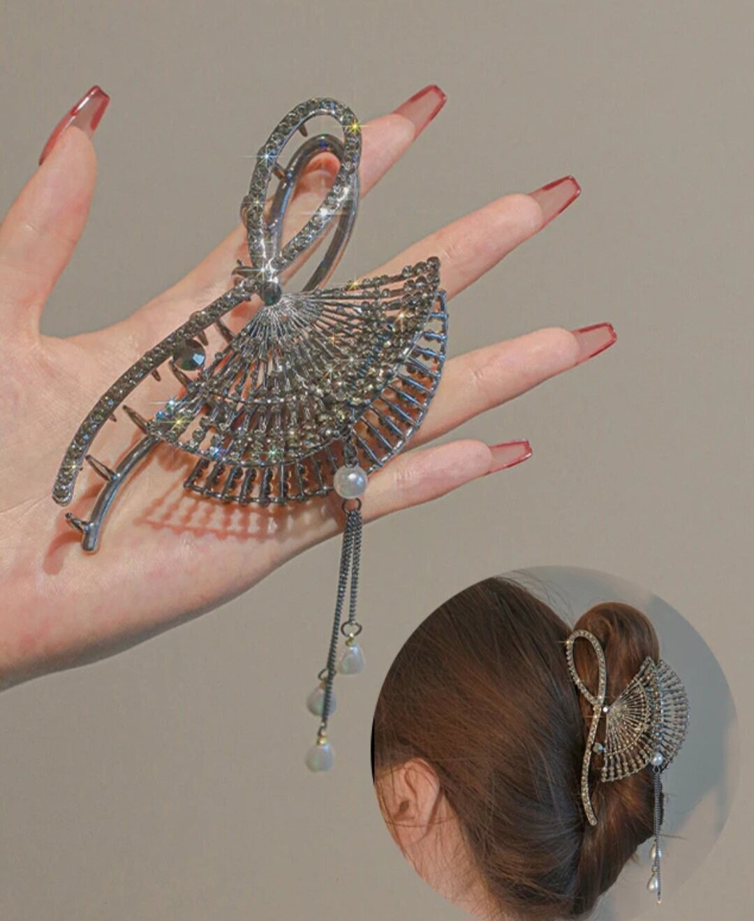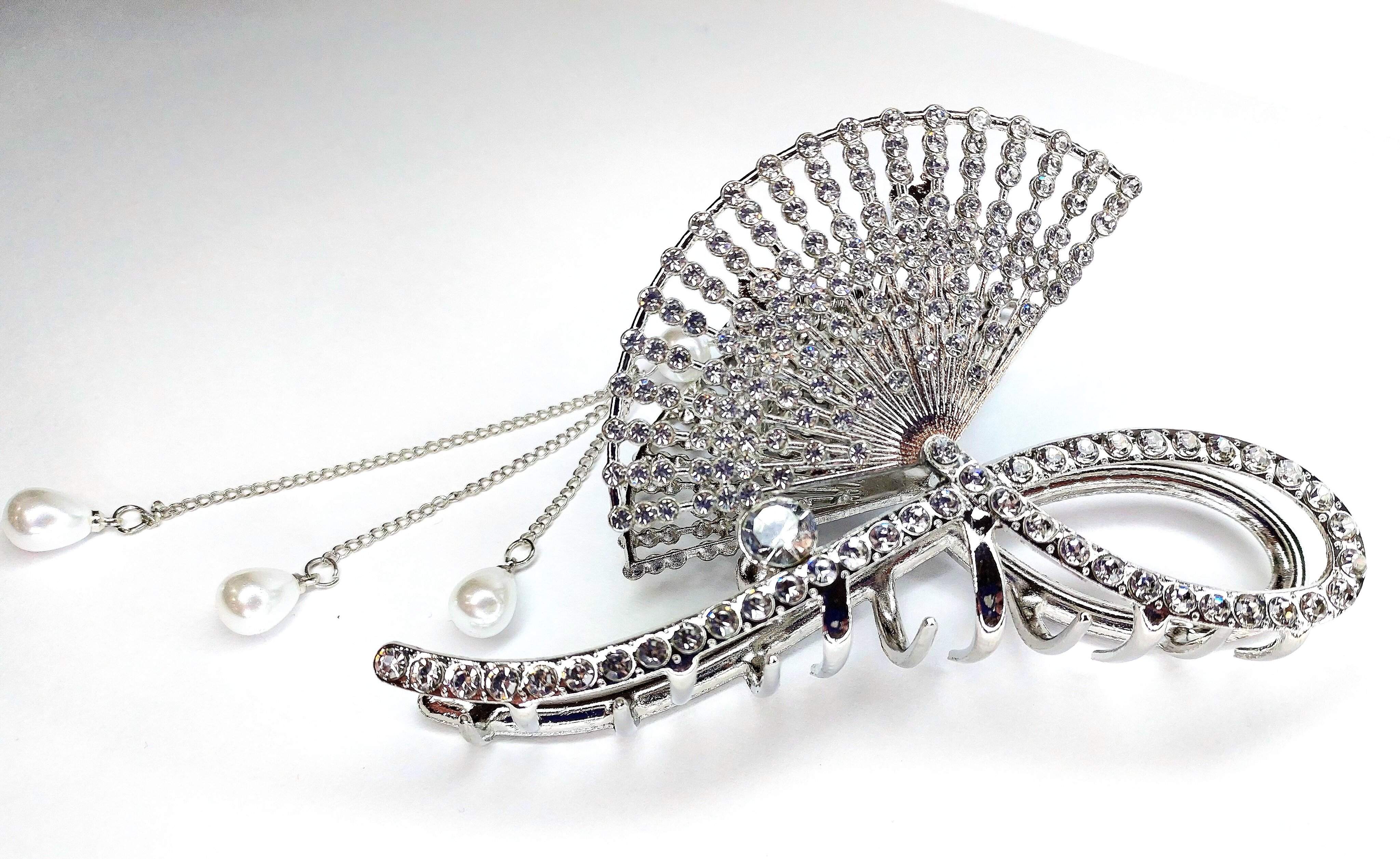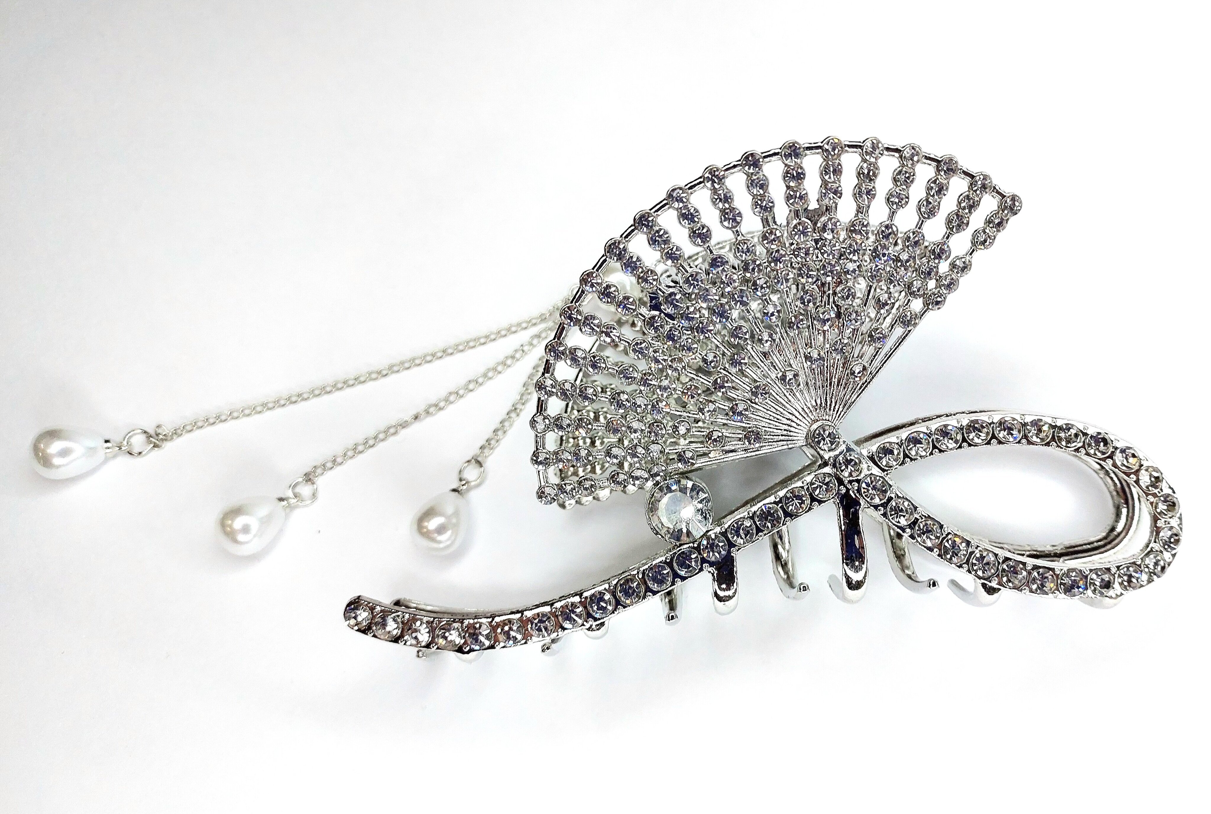 Заколка-краб для волос "Веер", инкрустированная стразами, металл усиленная, цвет - серебро. Изготовлена из высококачественного металла, что обеспечивает ее долговечность и прочность. Заколка имеет удобную форму, которая позволяет легко фиксировать волосы и создавать различные прически. Благодаря стразам, заколка-краб выглядит очень эффектно и стильно, что делает ее идеальным аксессуаром для вечерних и праздничных мероприятий. Она также может использоваться для повседневного использования и создания повседневных образов. Заколку можно использовать как самостоятельно, так и в сочетании с другими аксессуарами для волос.