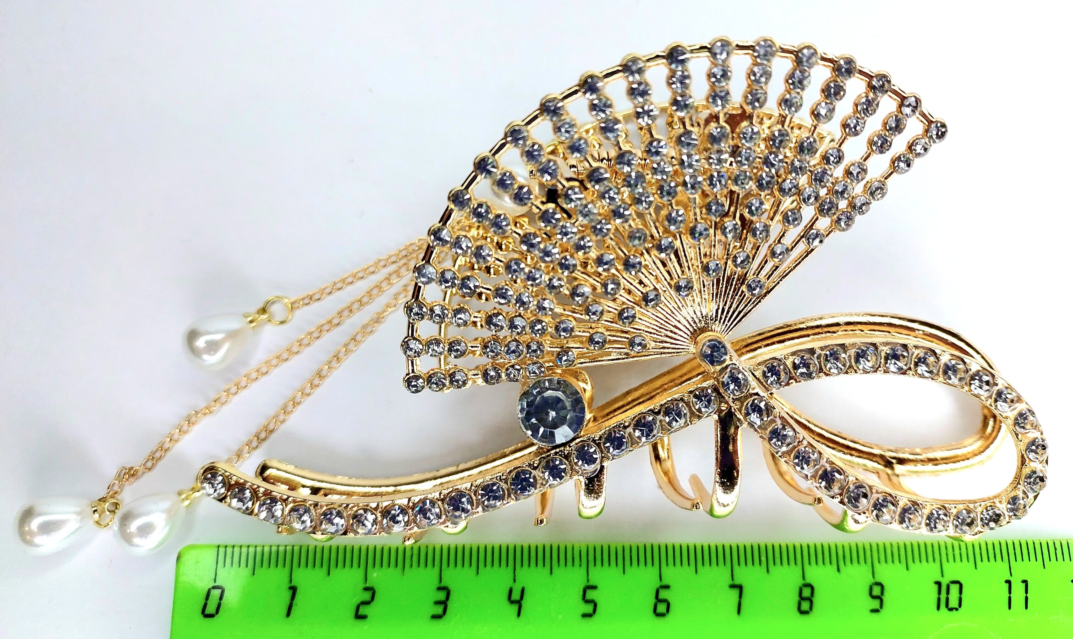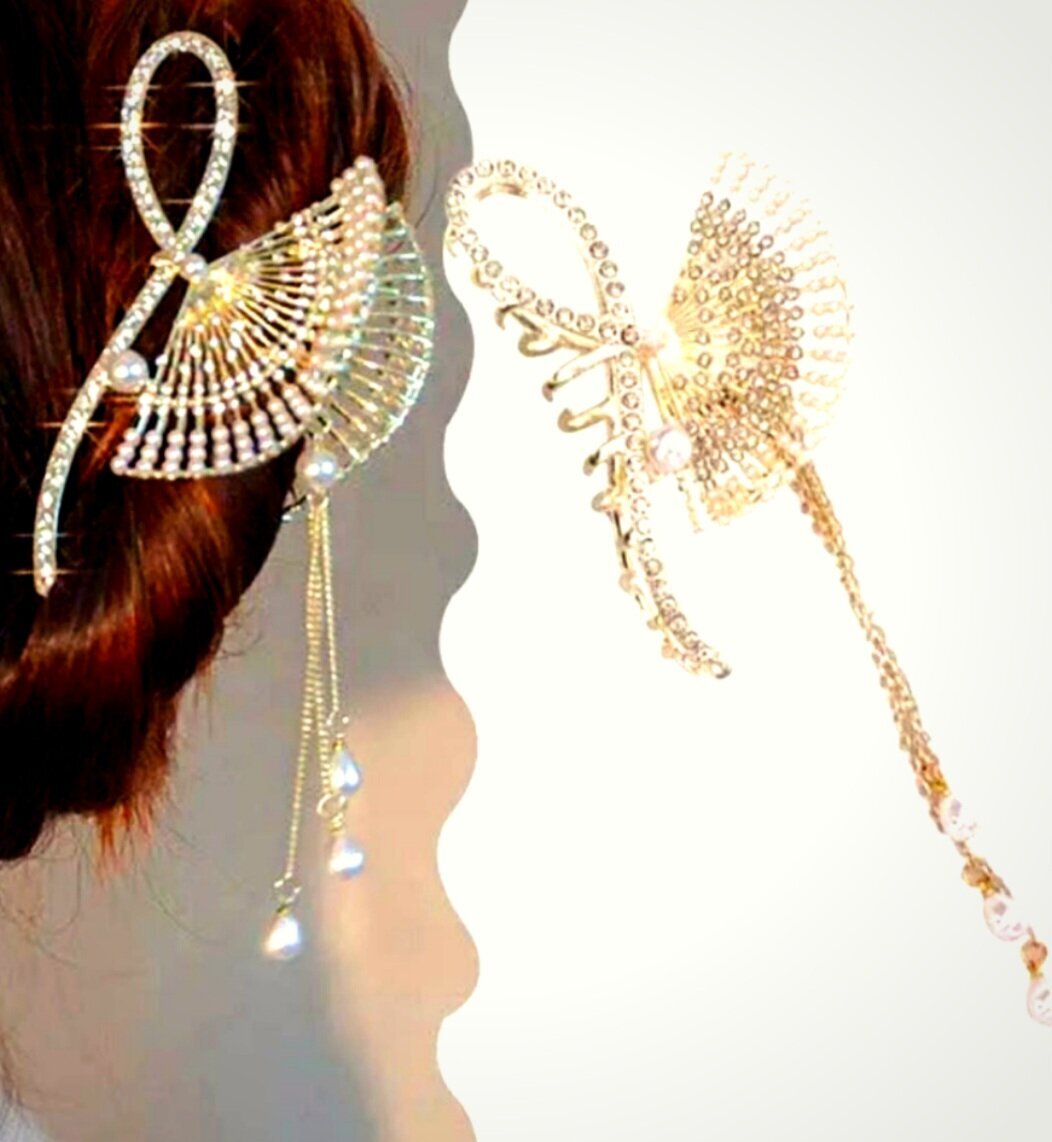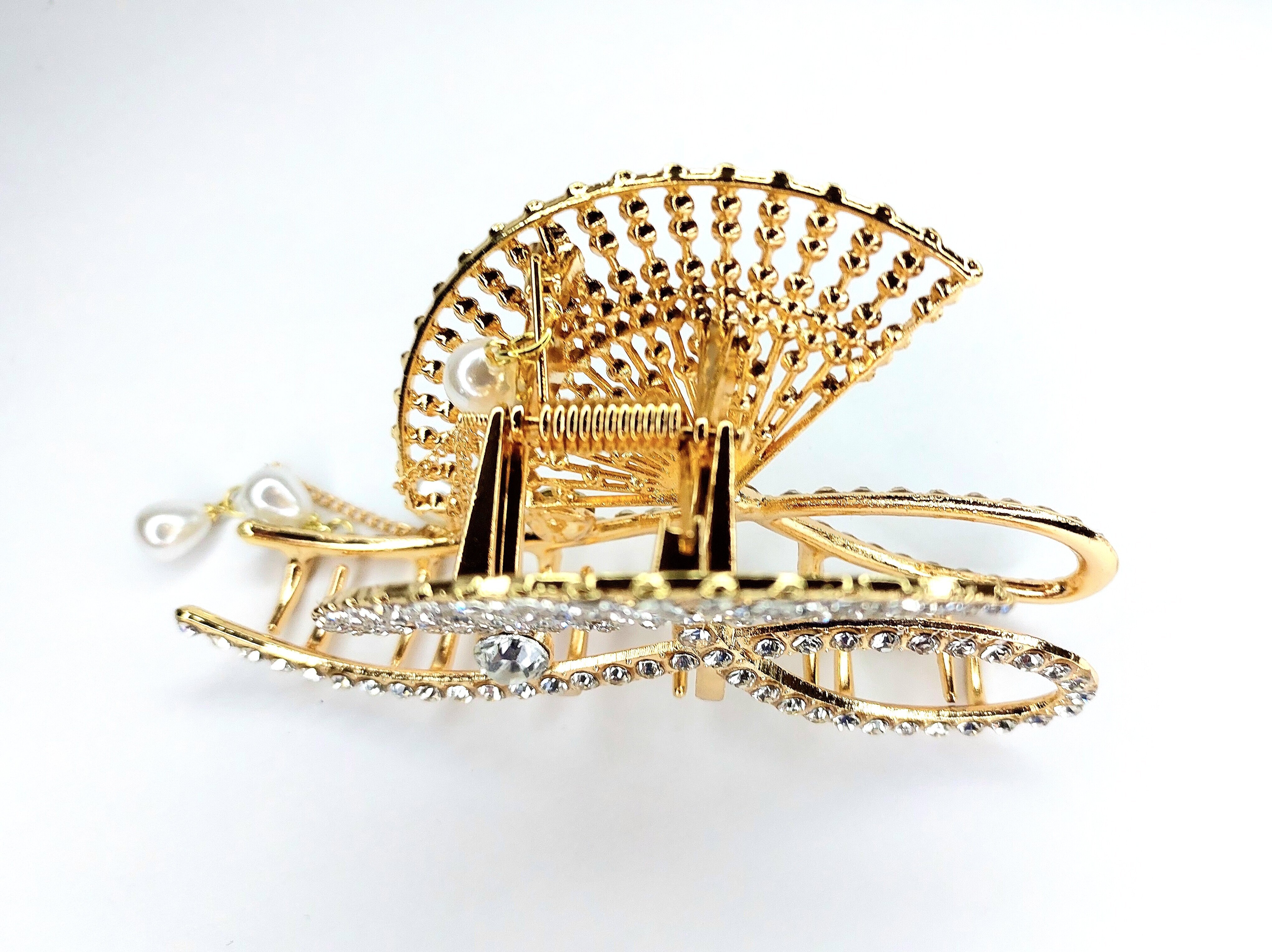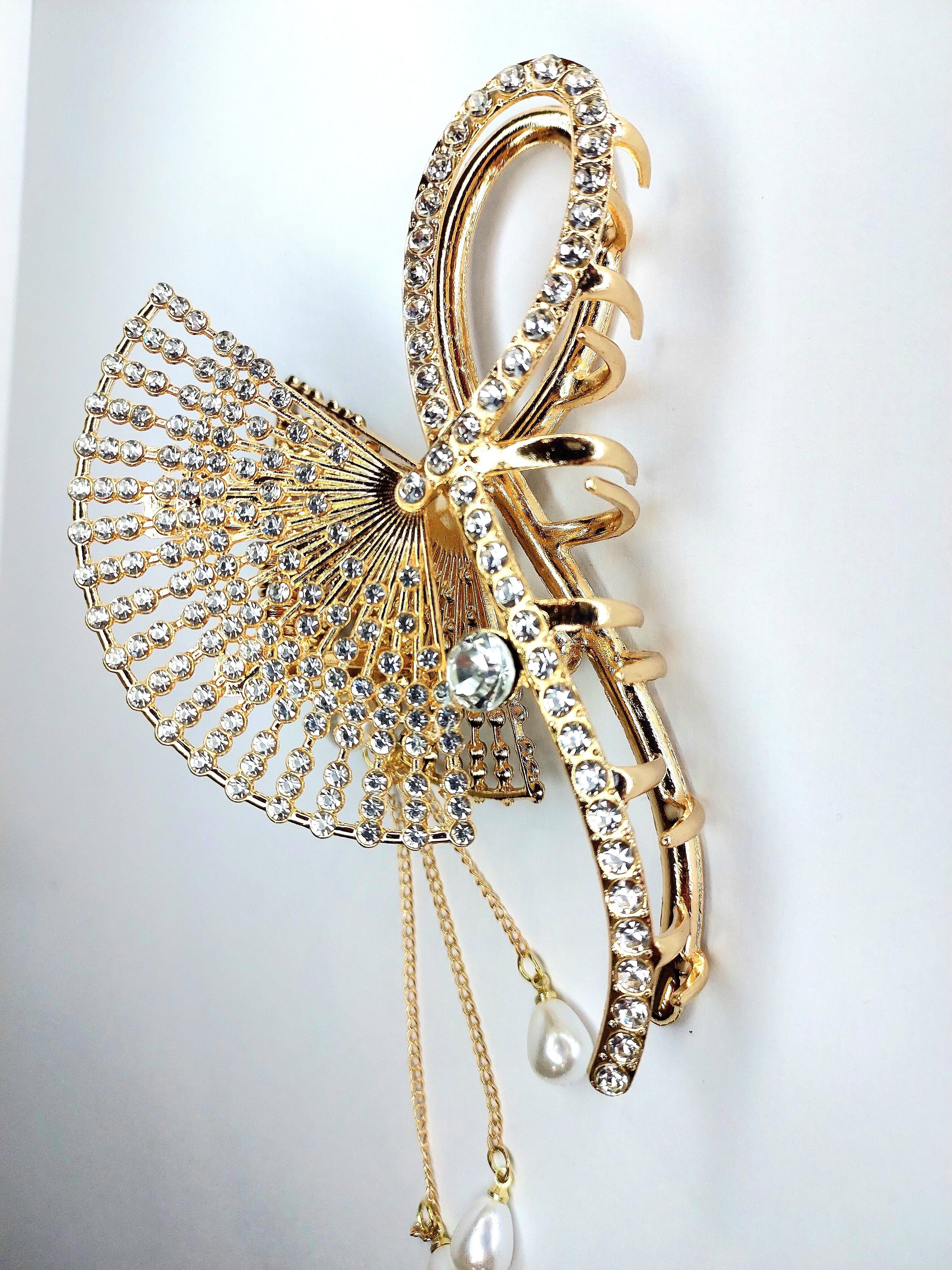 Заколка -краб для волос "Веер" инкрустированный стразами. Металл Усиленная. Цвет золото