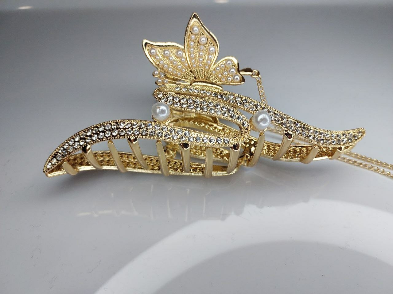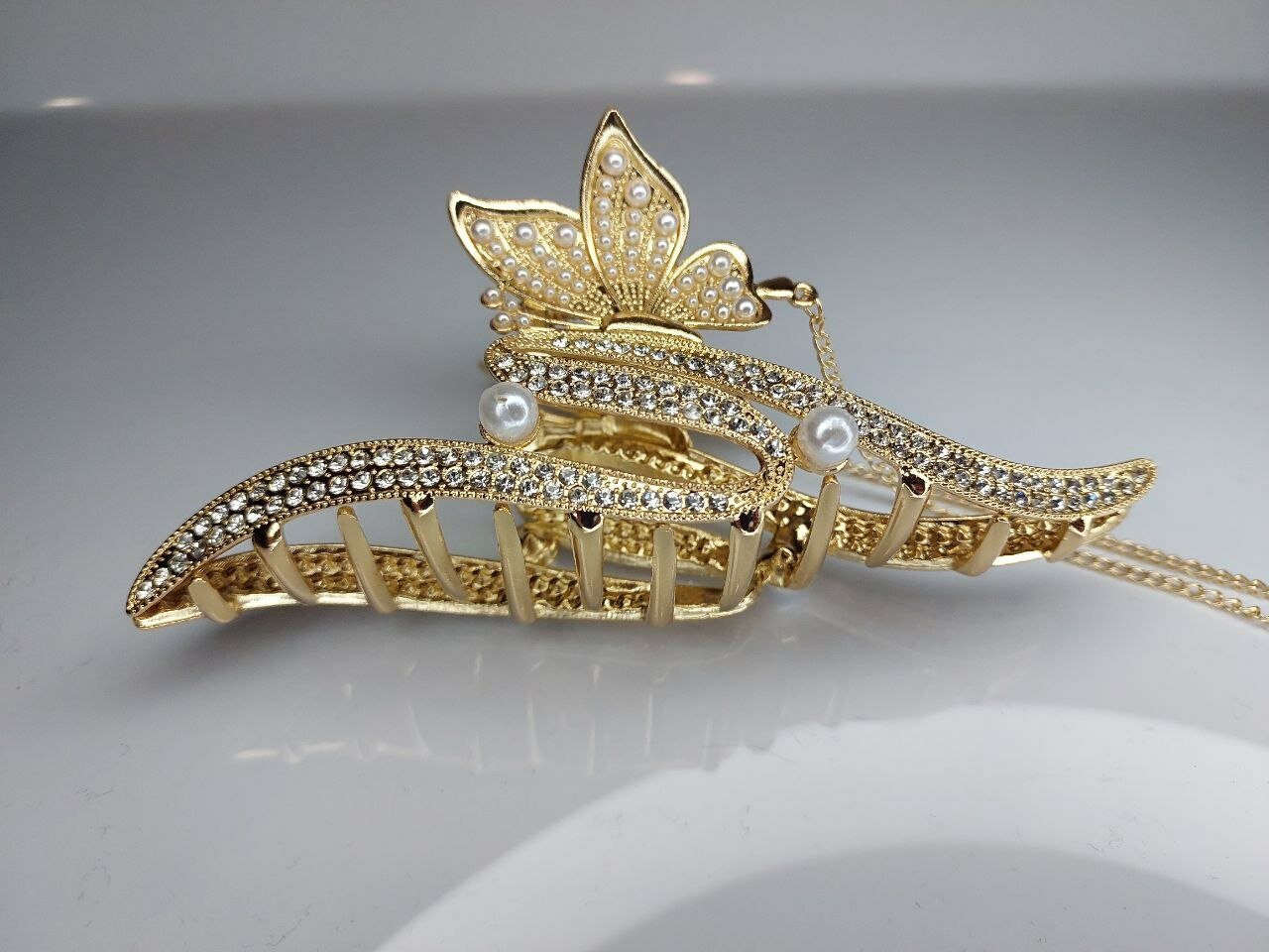 Заколка-краб для волос "Волшебный завиток" со стразами отлично держит волосы, обеспечивая надежную фиксацию и комфорт в течение всего дня.