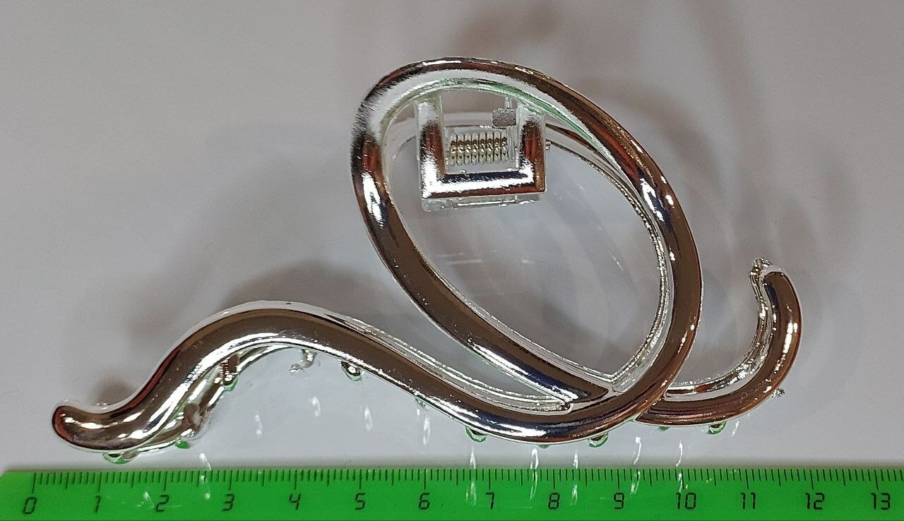 Длина заколки составляет 12 см, что позволяет использовать ее на волосах разной длины. Вес заколки составляет всего 50 грамм, что делает ее практически невесомой на волосах.