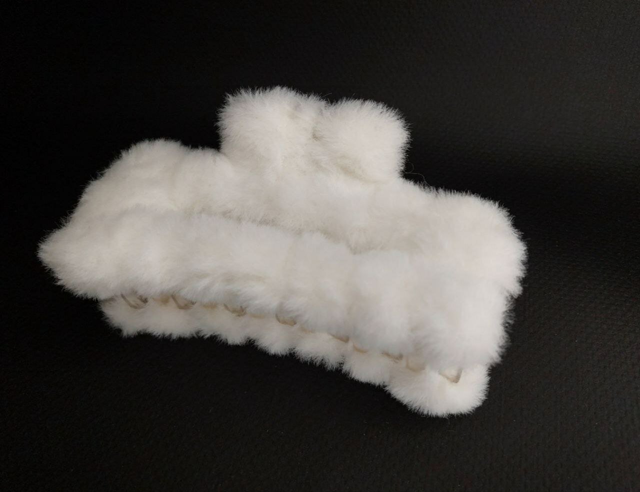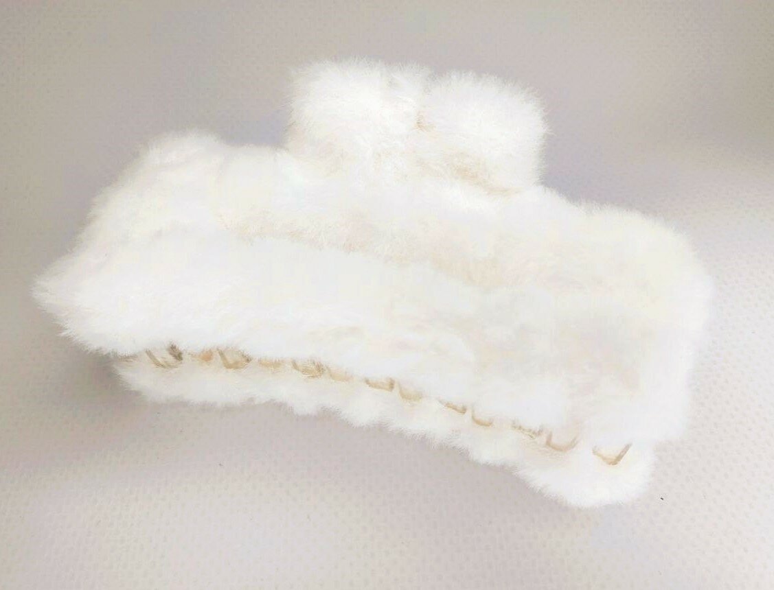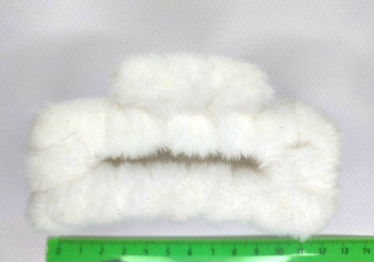 "Зимняя меховая заколка-краб". Цвет белый
