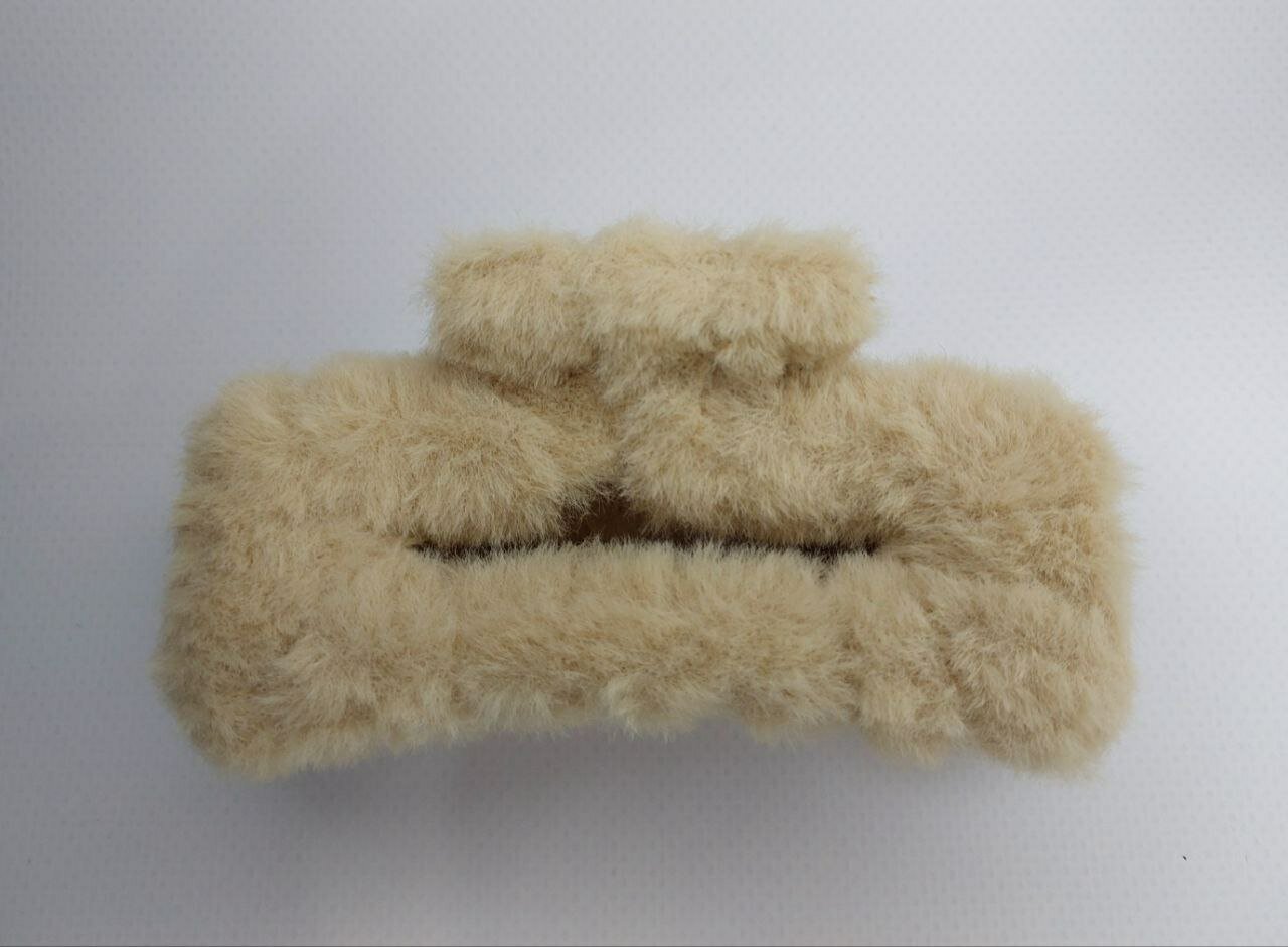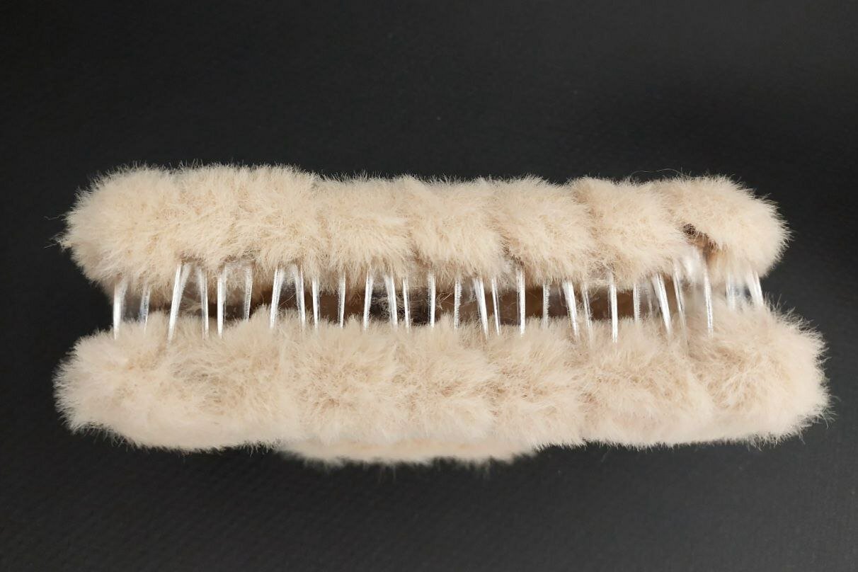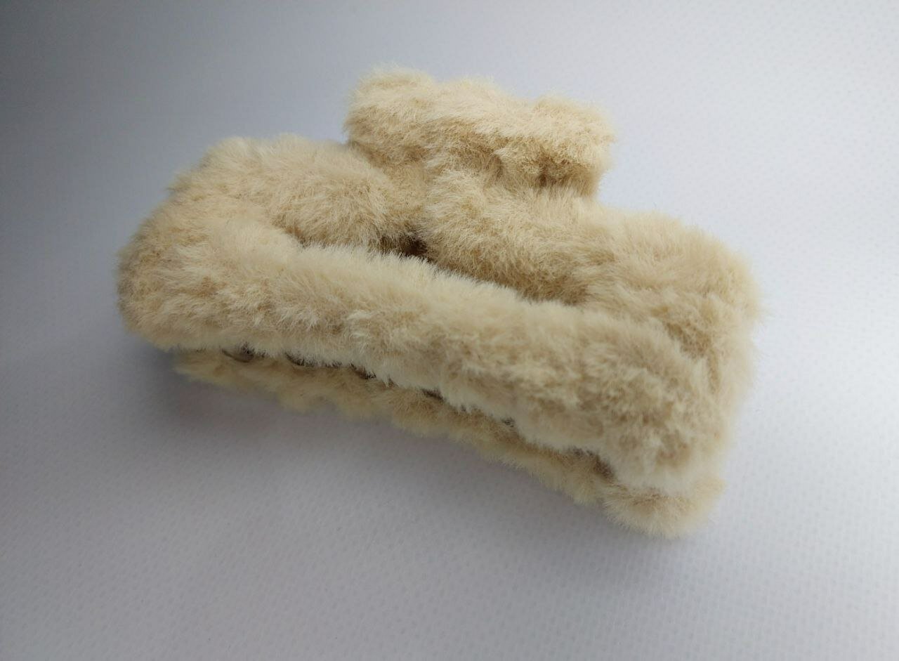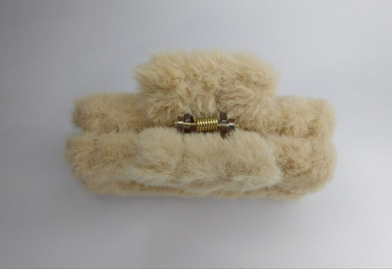 "Зимняя меховая заколка-краб". Цвет бежевый